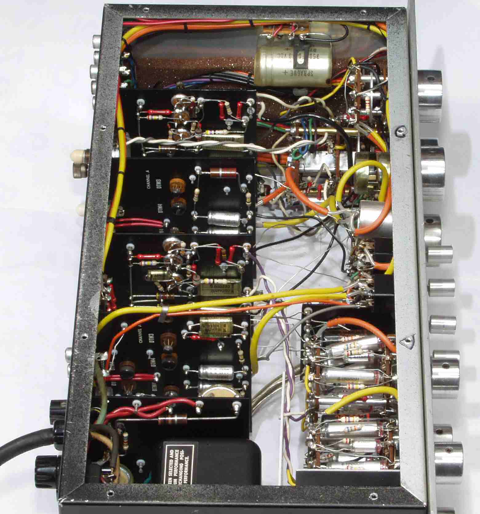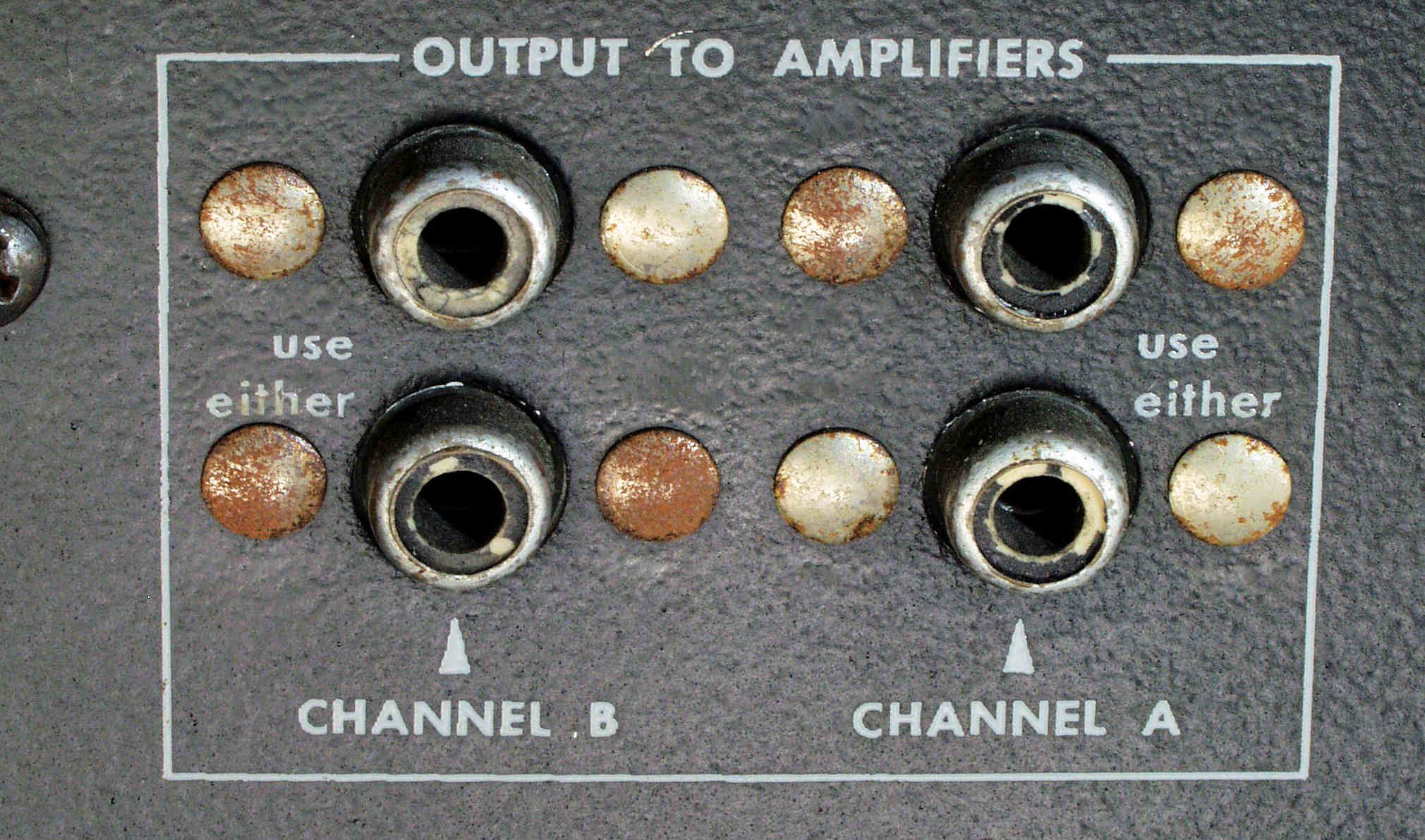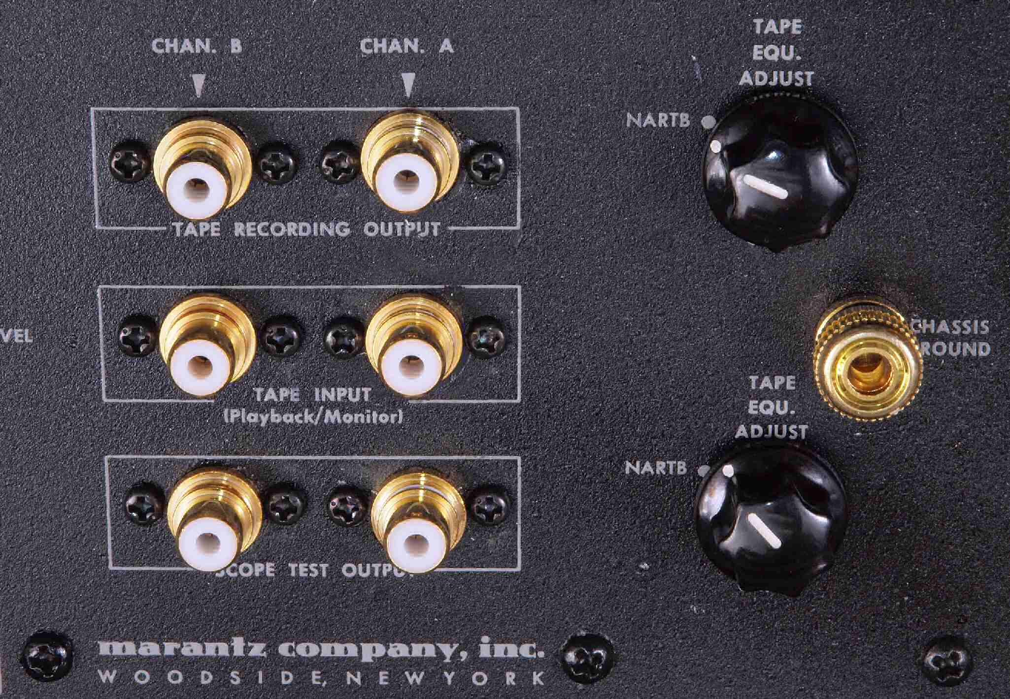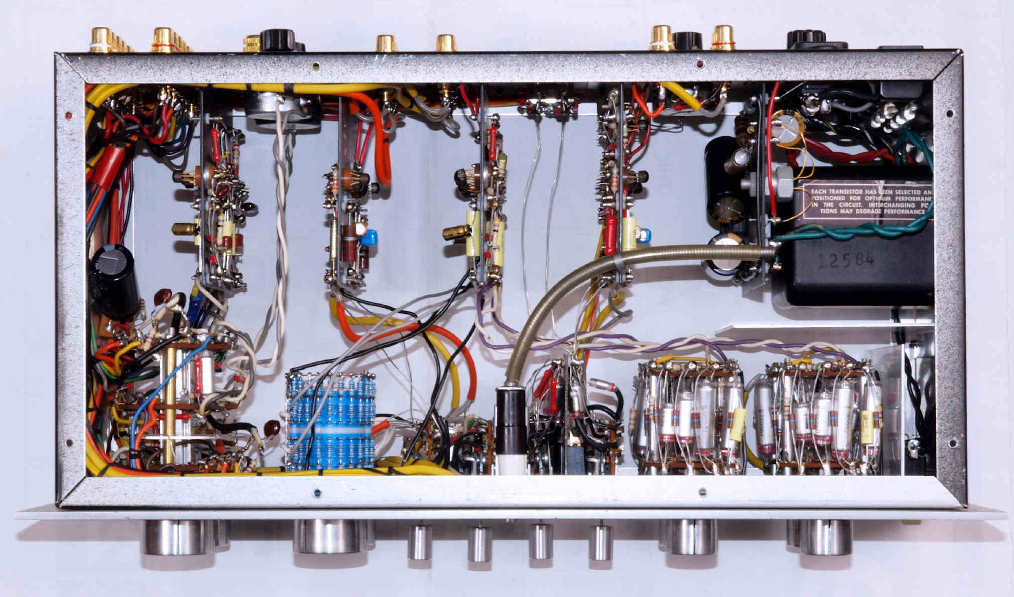 | A73. 点検中 TAPE入出力RCA端子郡、RL出力RCA端子郡、センター出力RCA端子郡。 テフロン絶縁仕様に交換可能。 |
