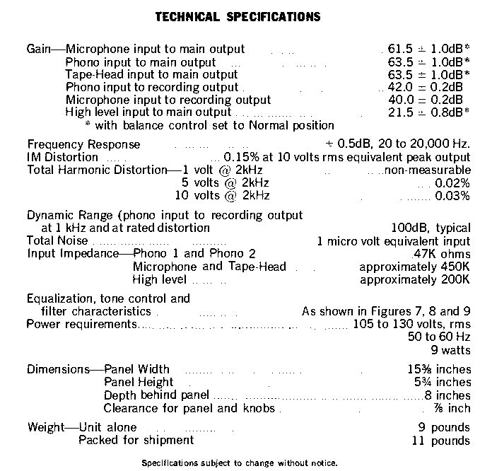 | S. Marantz 7T. の仕様(マニアル・カタログより) |