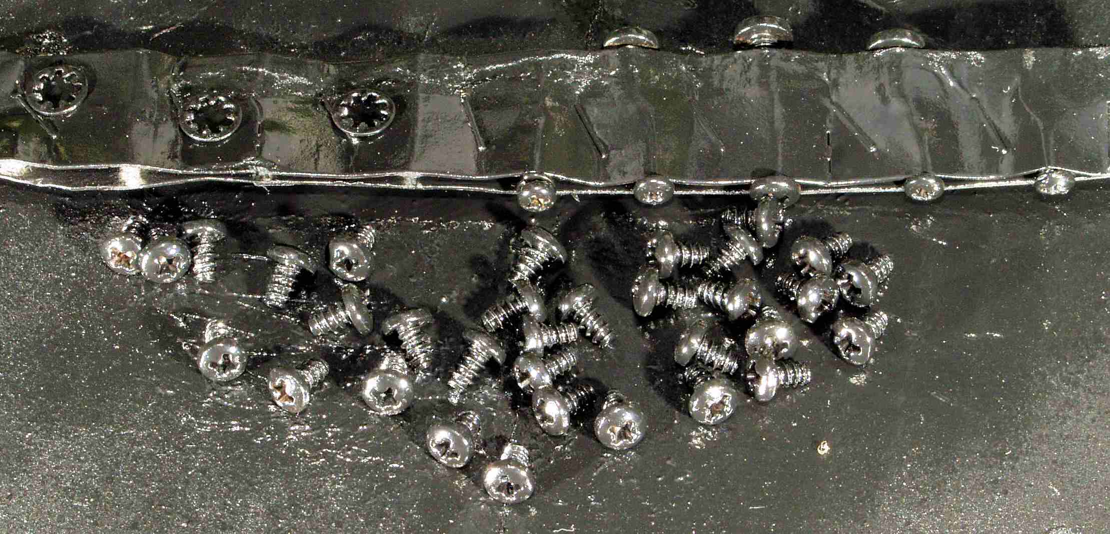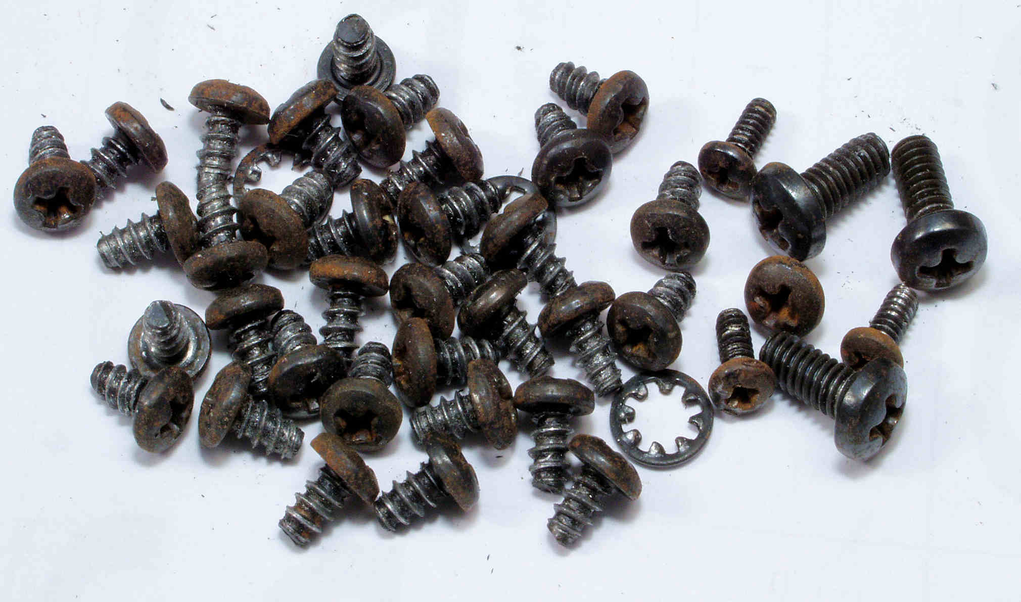 | K. ケース修理。 K11. 修理前 錆が出た、止めビス。 |