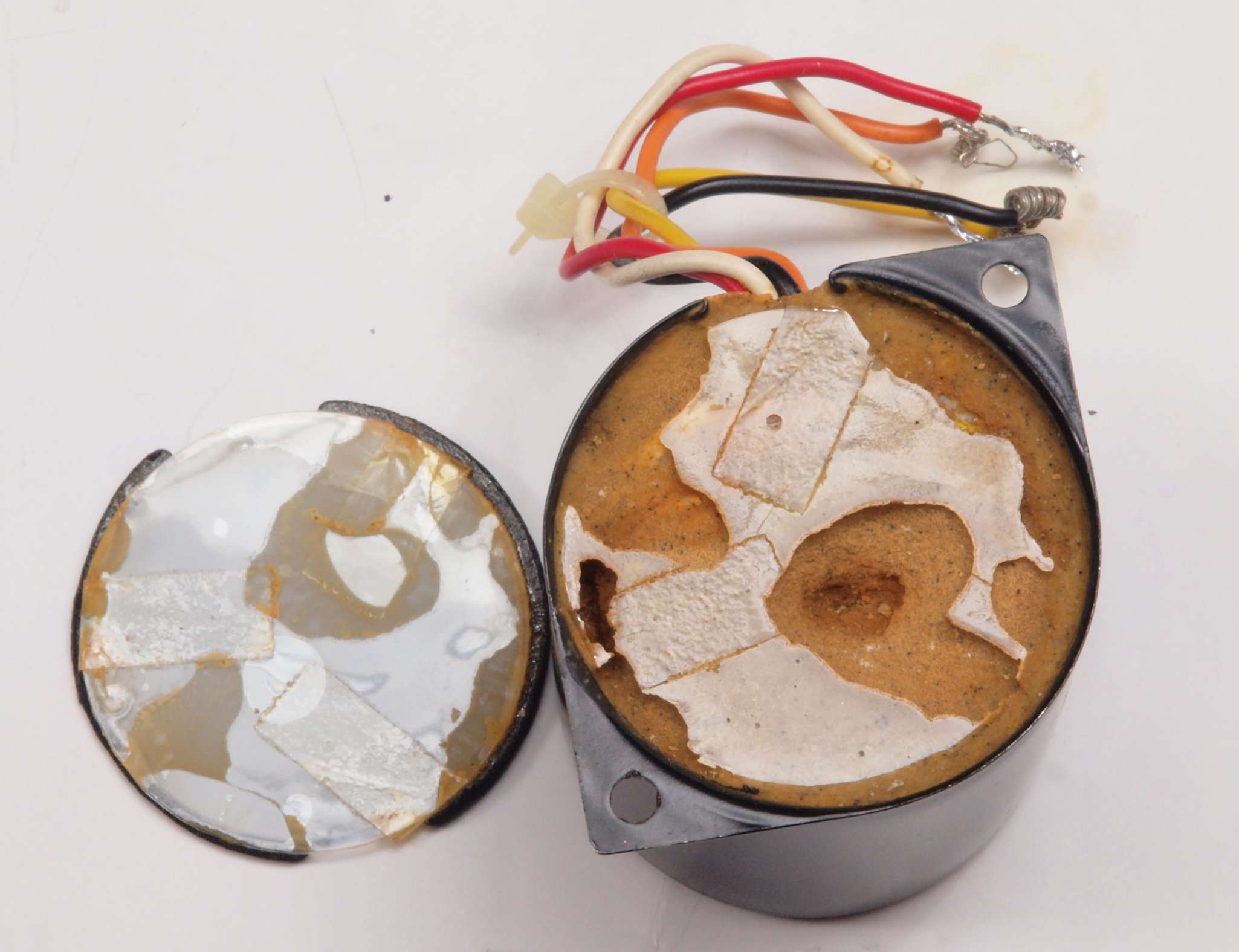 | A22. 点検中 電源トランス下から見る。 自己固着型プラスチックなので、トランス取り出しは大変。 | ||||||||||||||||||||||