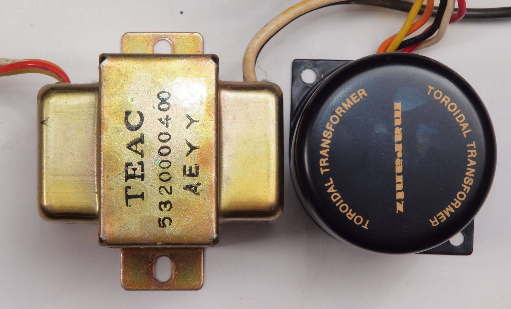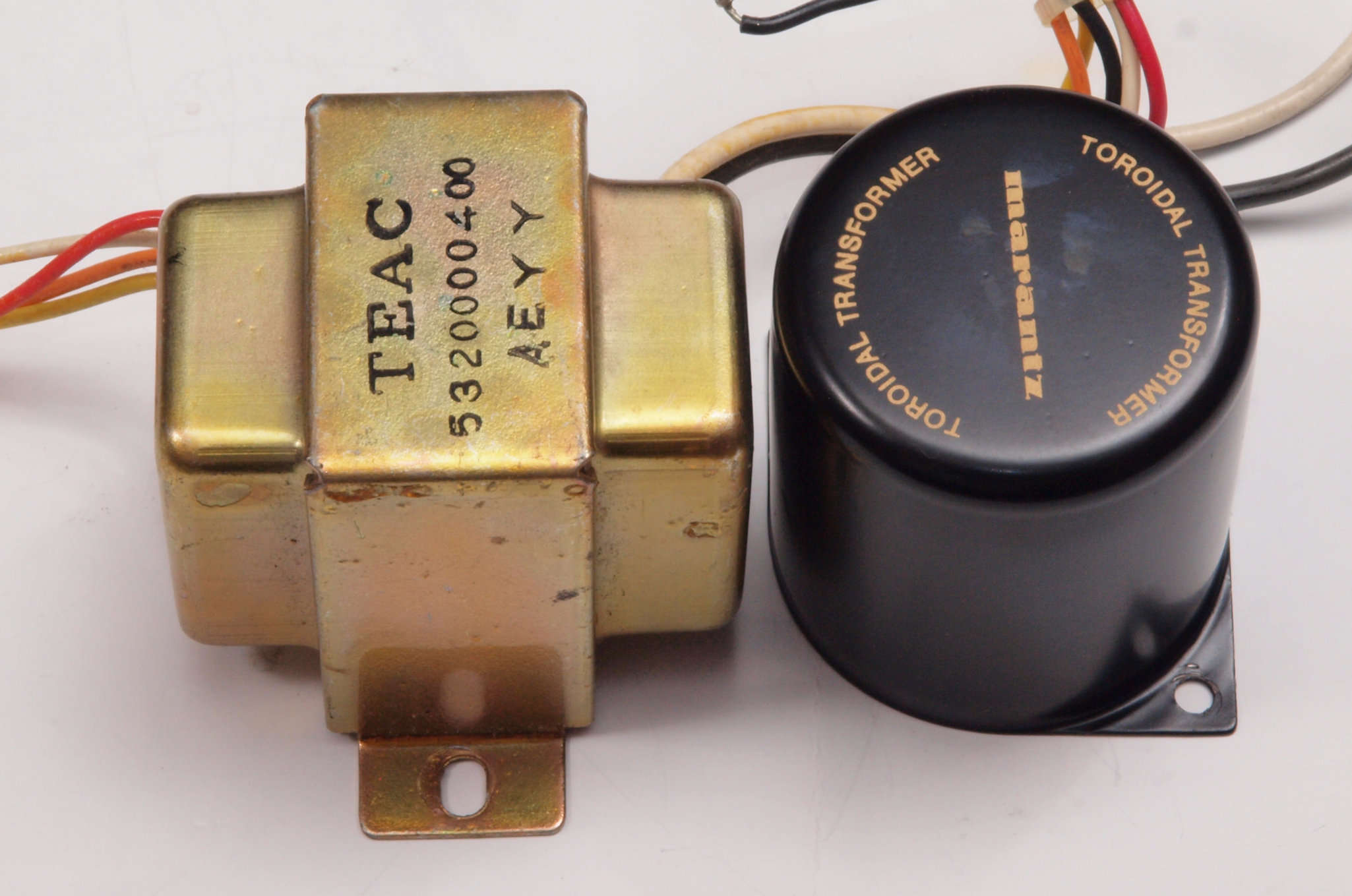 | A23. 点検中 電源トランス比較。 左=交換する物、右=付いていた物。十分な容量があり、取り付けビス間隔も同じ! | ||||||||||||||||||||||