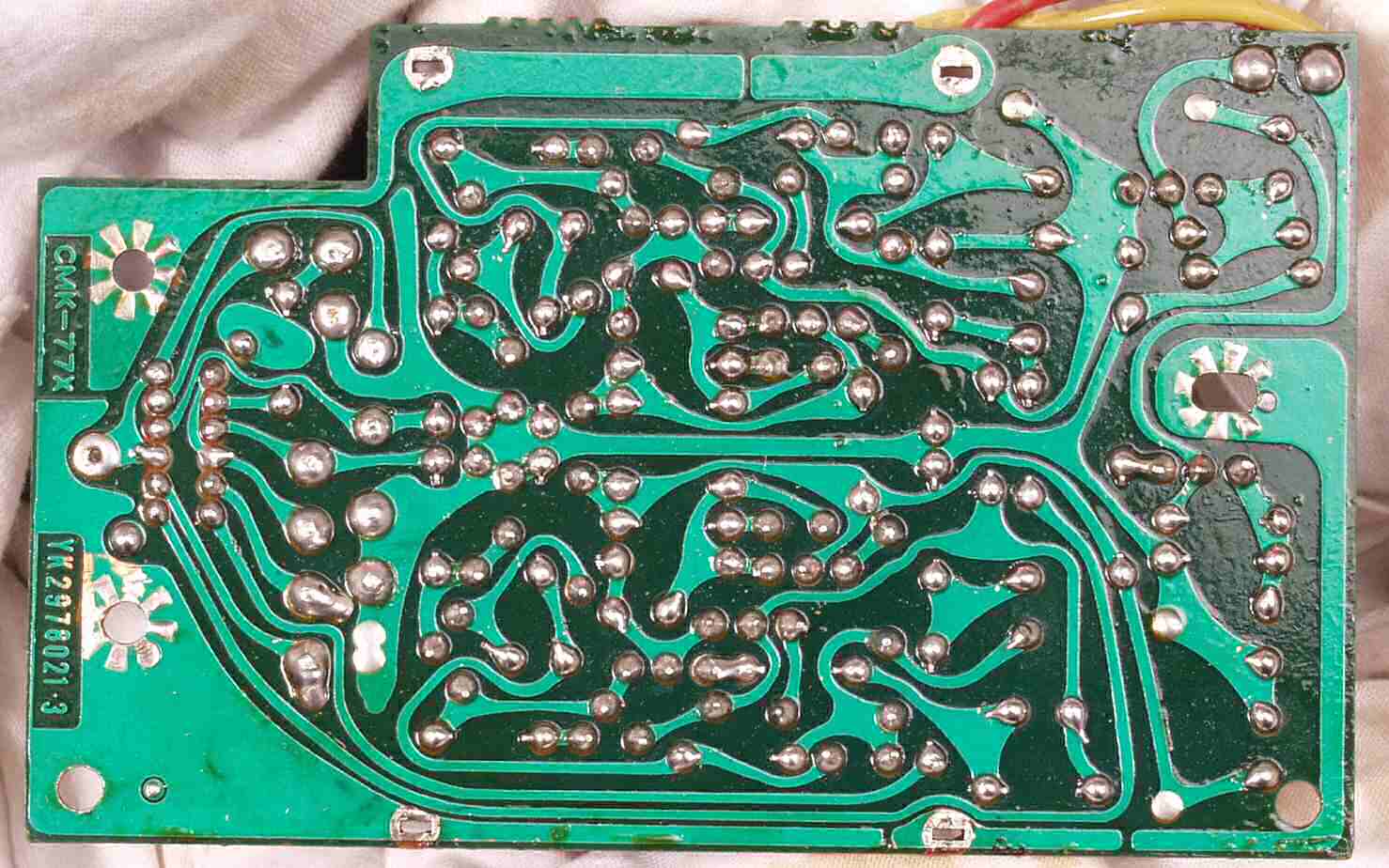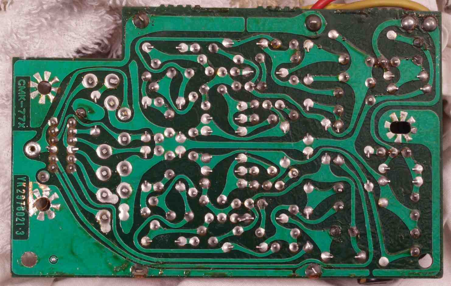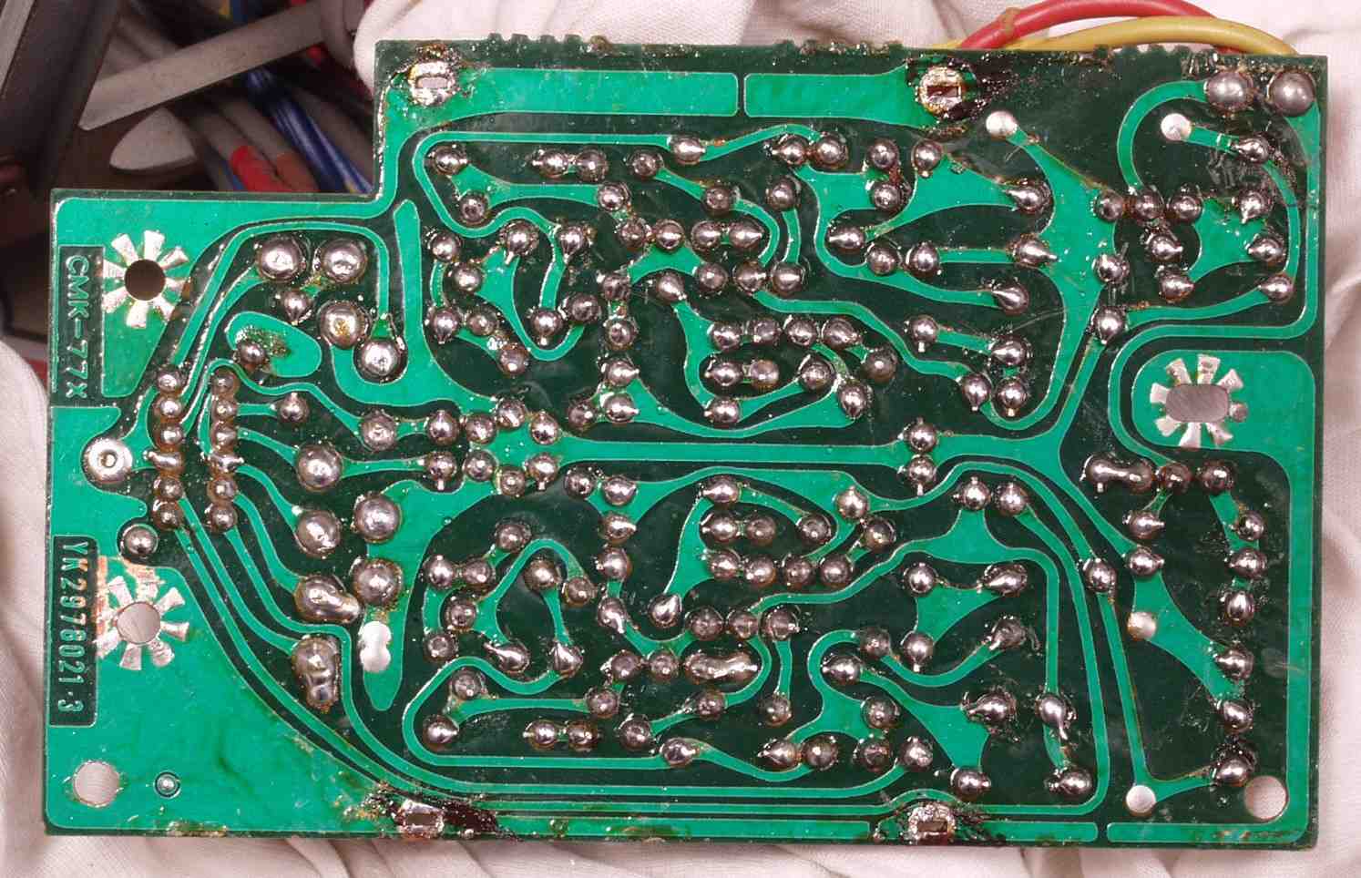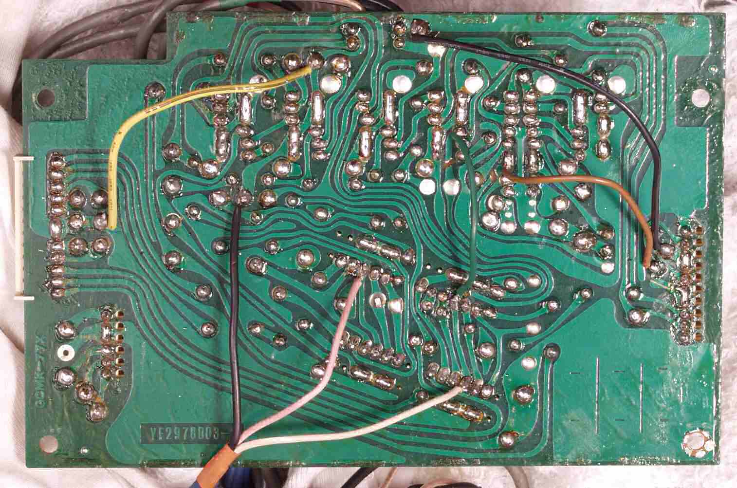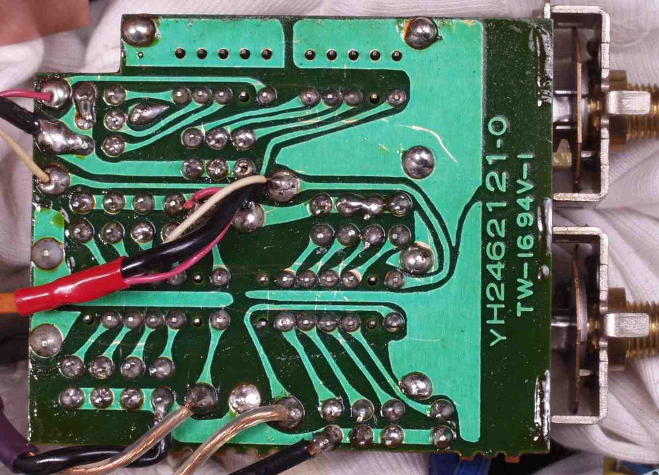 | C−5A−2. 修理後 VR基板(VR=Volume) 設計変更で手直しした所を基板カットして修理 カットして修理した所は、「C−5D.修理(半田補正)後 VR基板裏」 参照 |