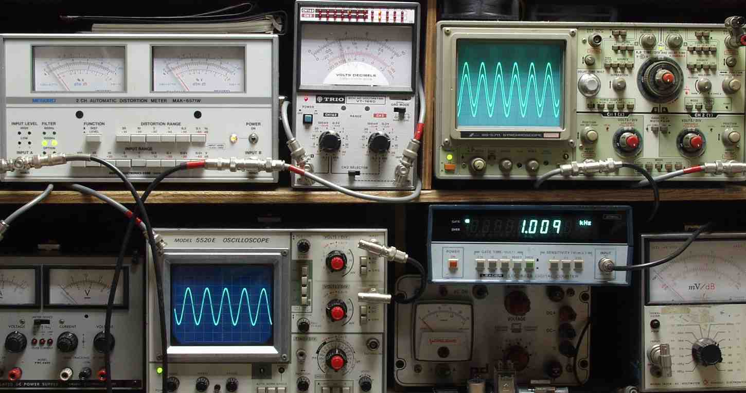 | EE. 上位測定器による 調整・測定 EE0. 下のオーディオアナライザーVP−7732Aで自動測定。 |
