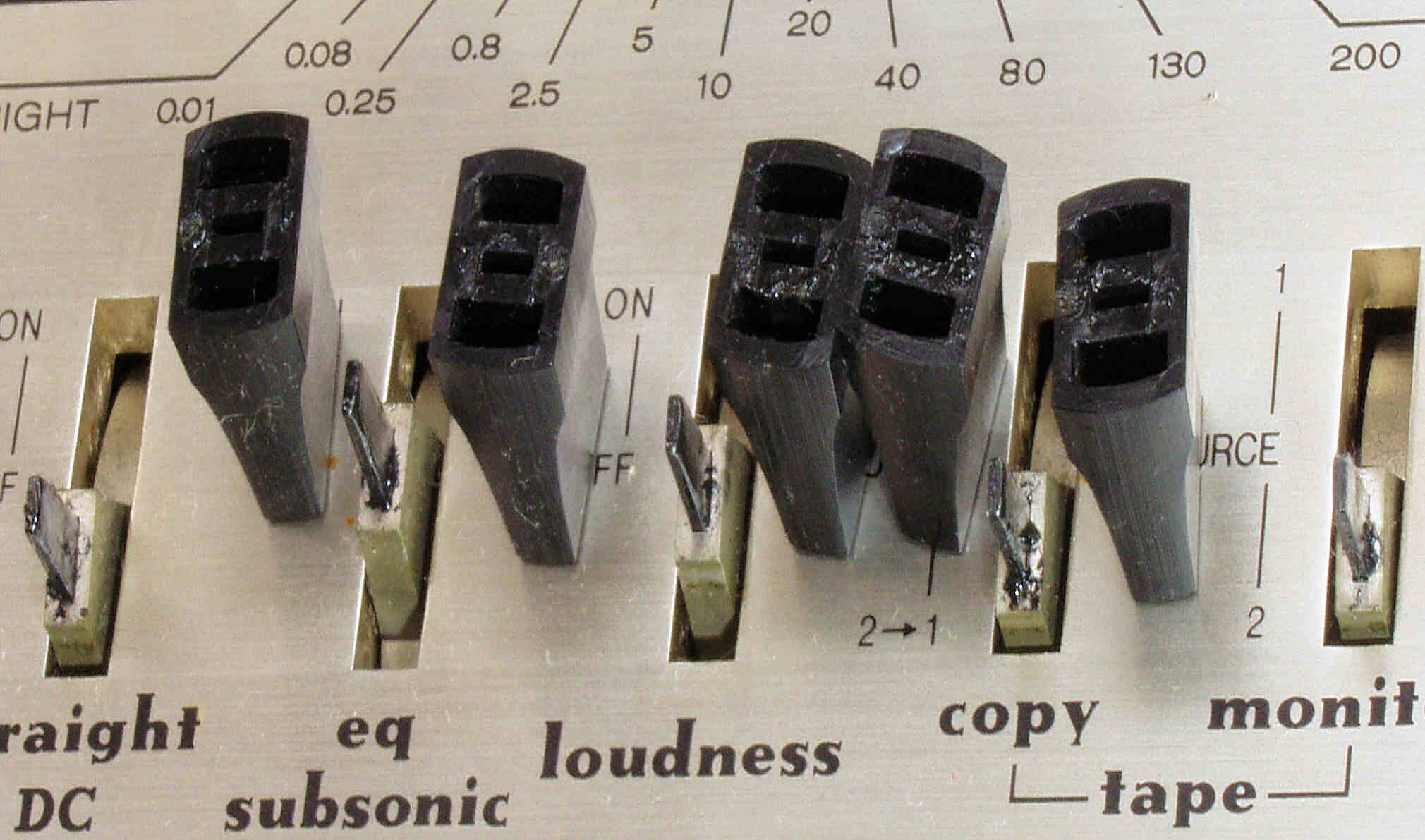 | C73. 修理前 LoudnessSW・EQ_SubsonicSW・StraightDC_SW基板裏 | ||||||||||||||||||||||||||||||||||