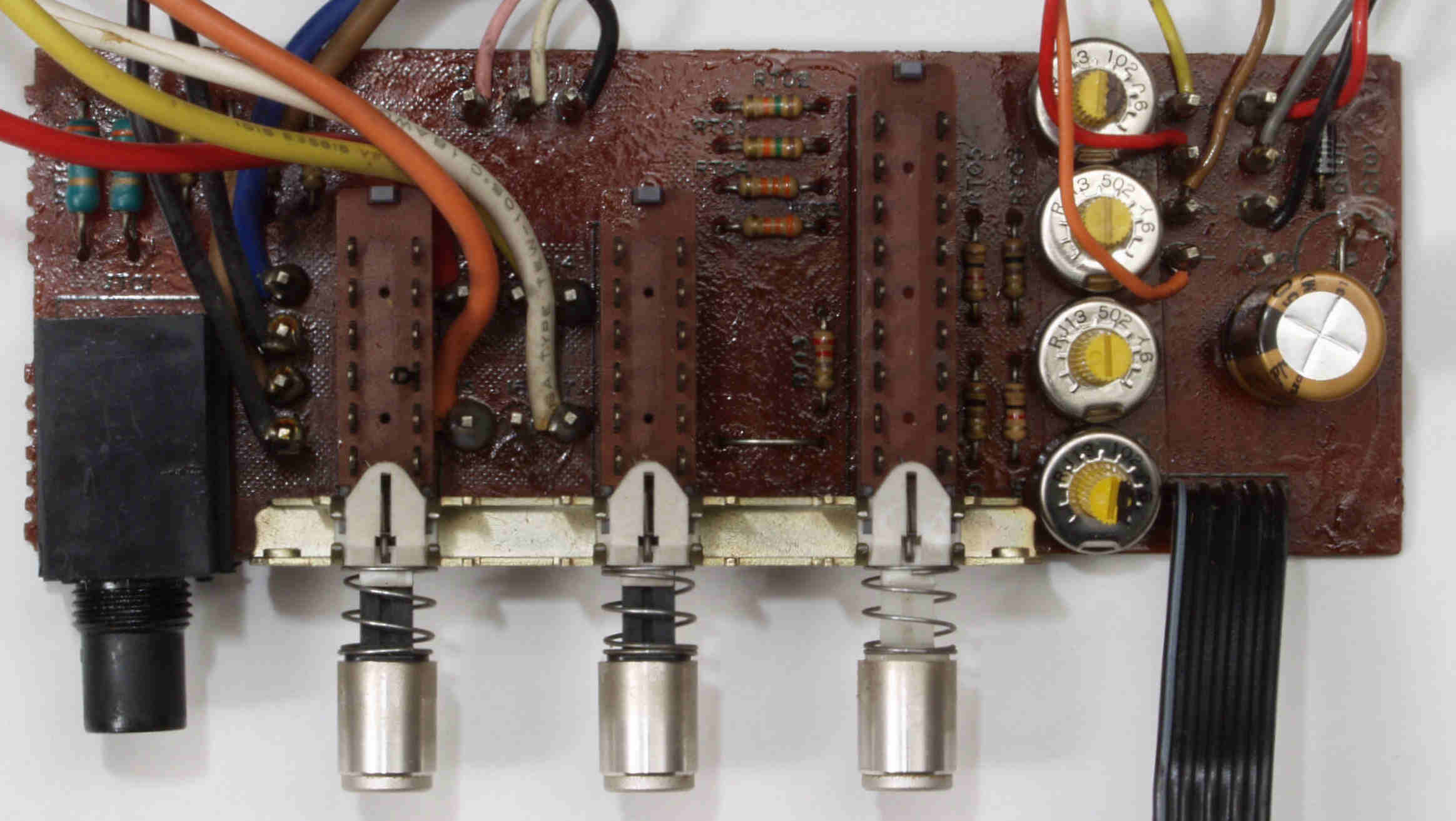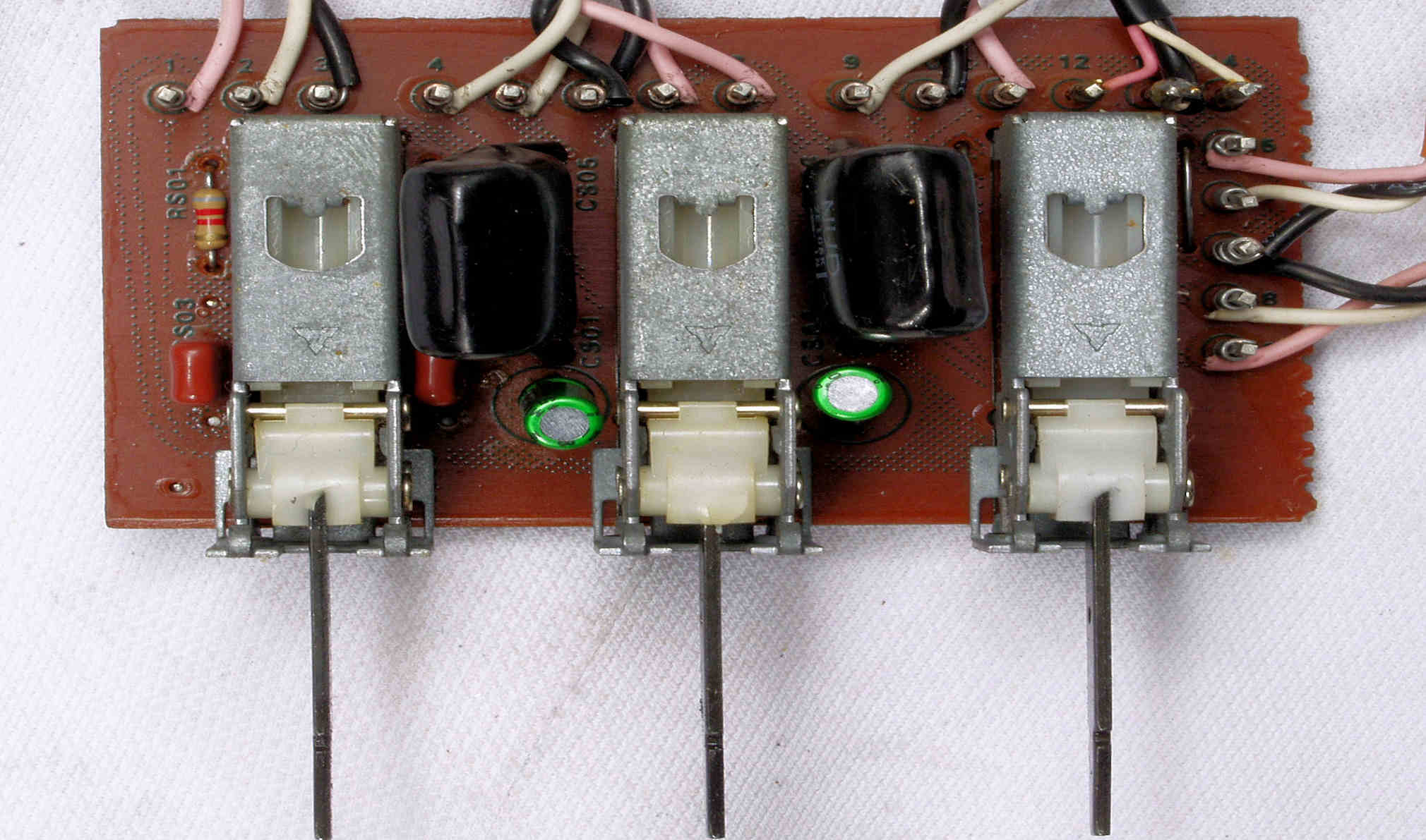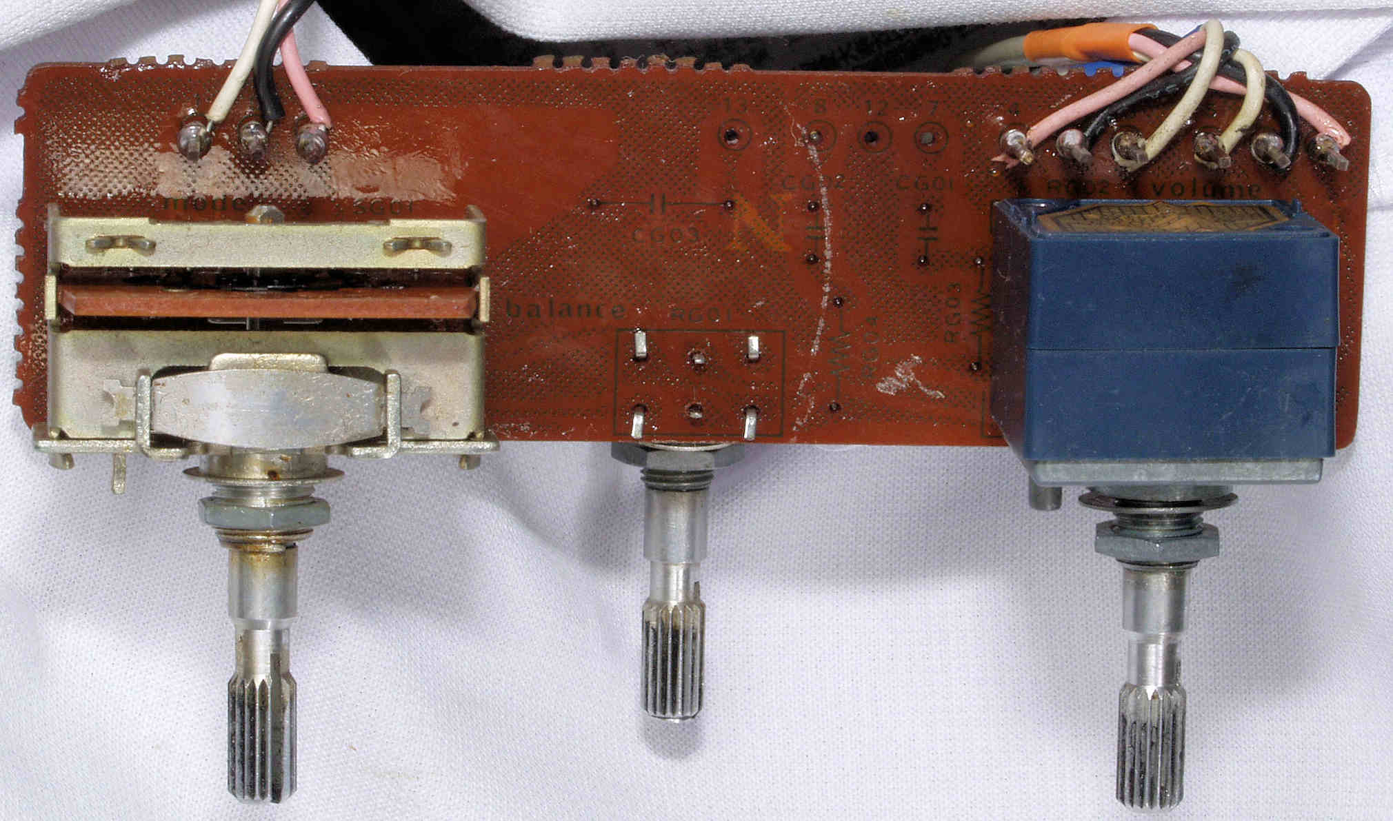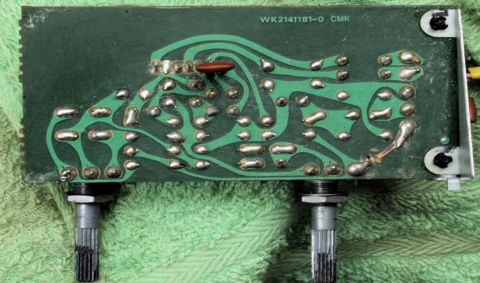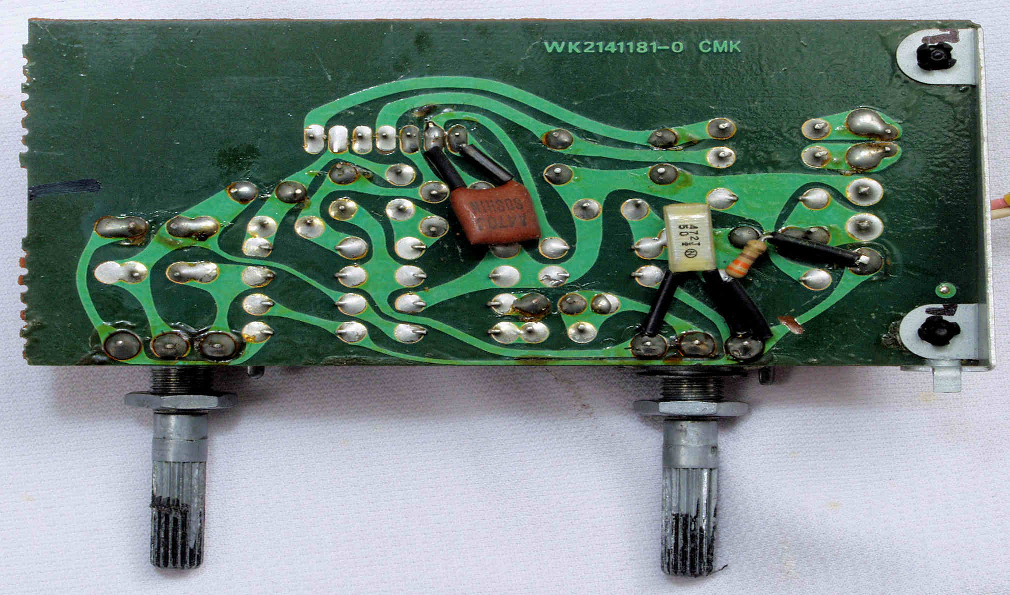 | C67. 完成MainVolume・BalanceVR・ModeSW基板裏、コート液を塗り、乾燥後。 | ||||||||||||||||||||||||||||||||||
