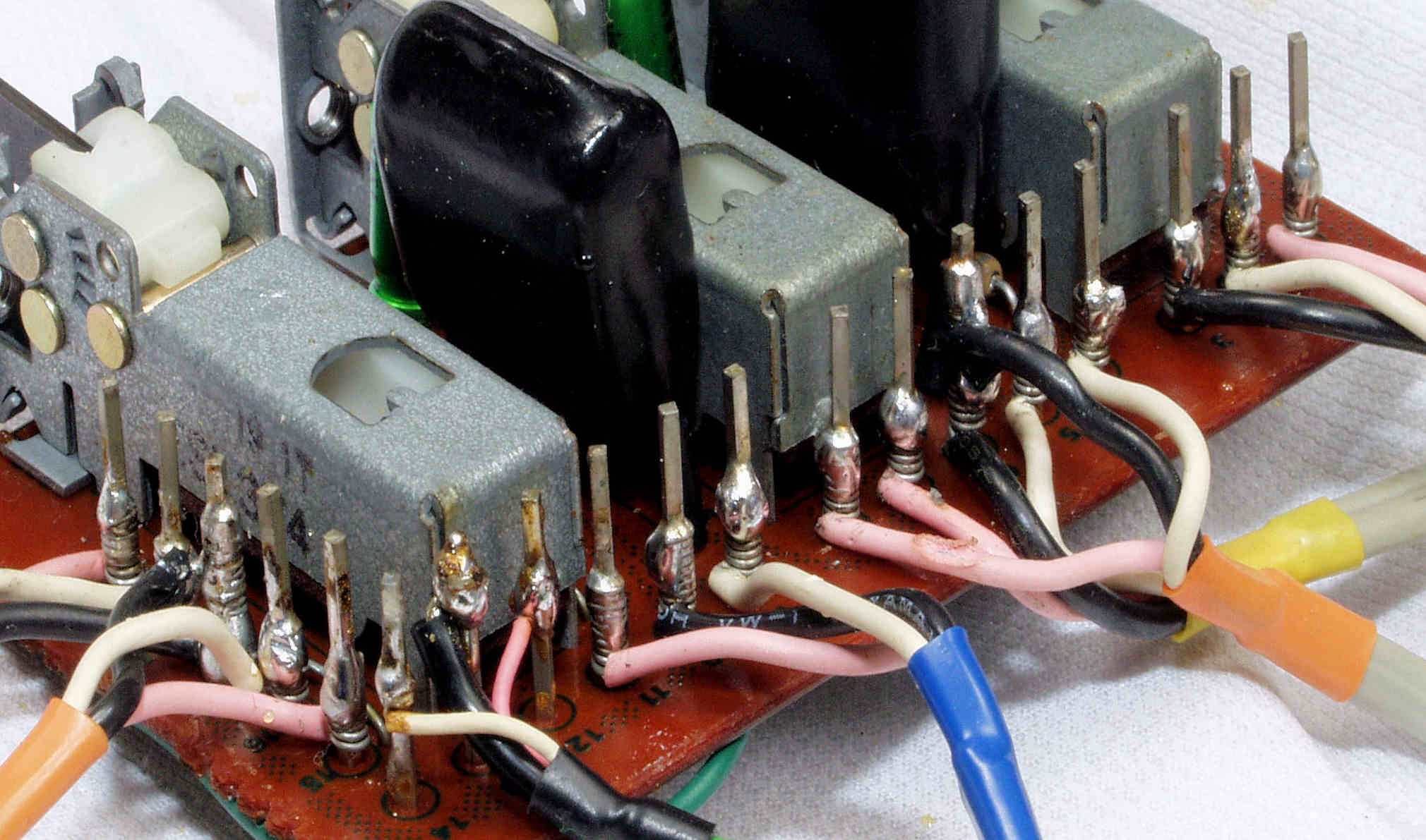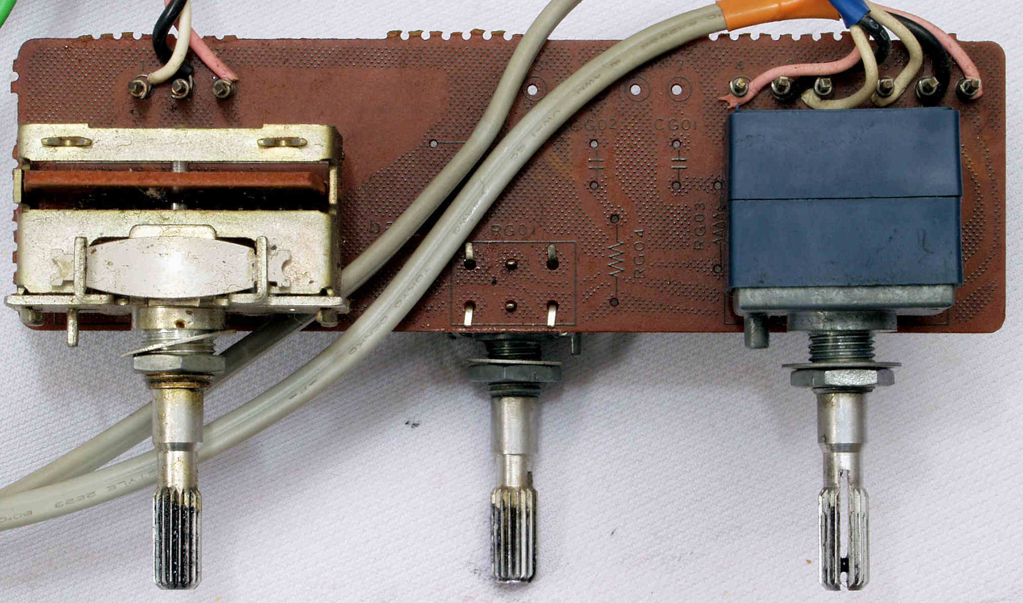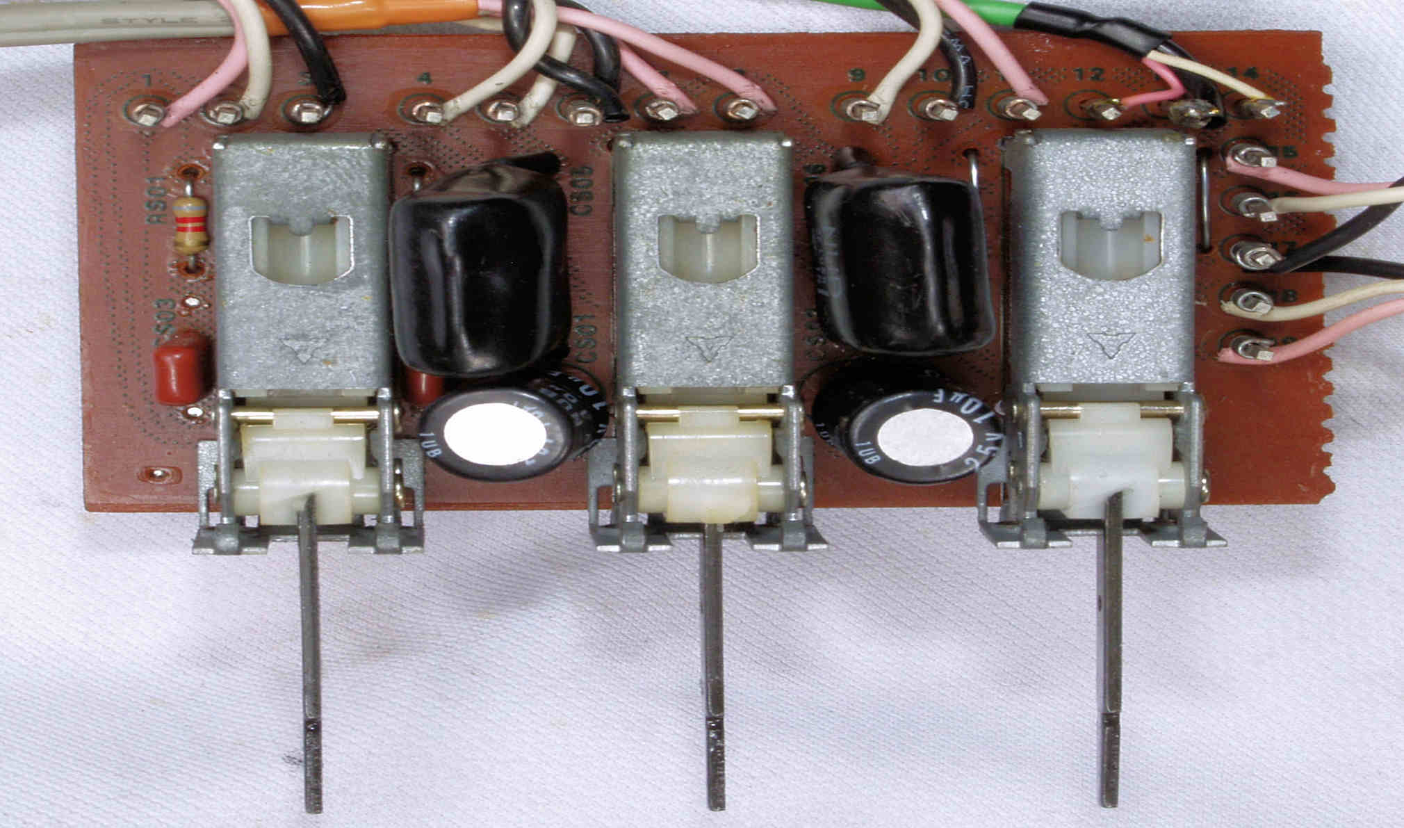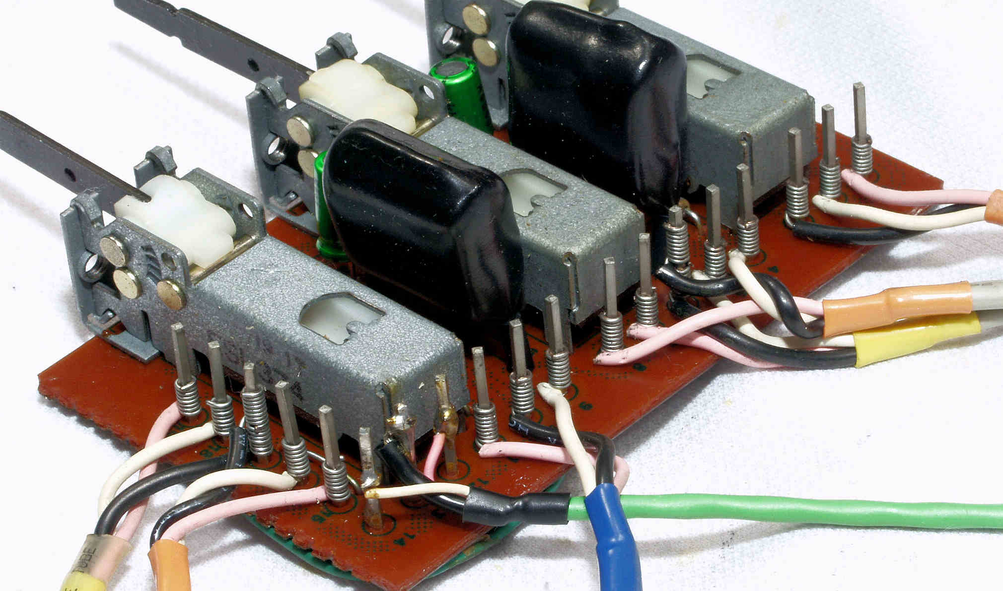 | C7A. 修理前 LoudnessSW・EQ_SubsonicSW・StraightDC_SW基板、ラッピング。 | ||||||||||||||||||||||||||||||||||