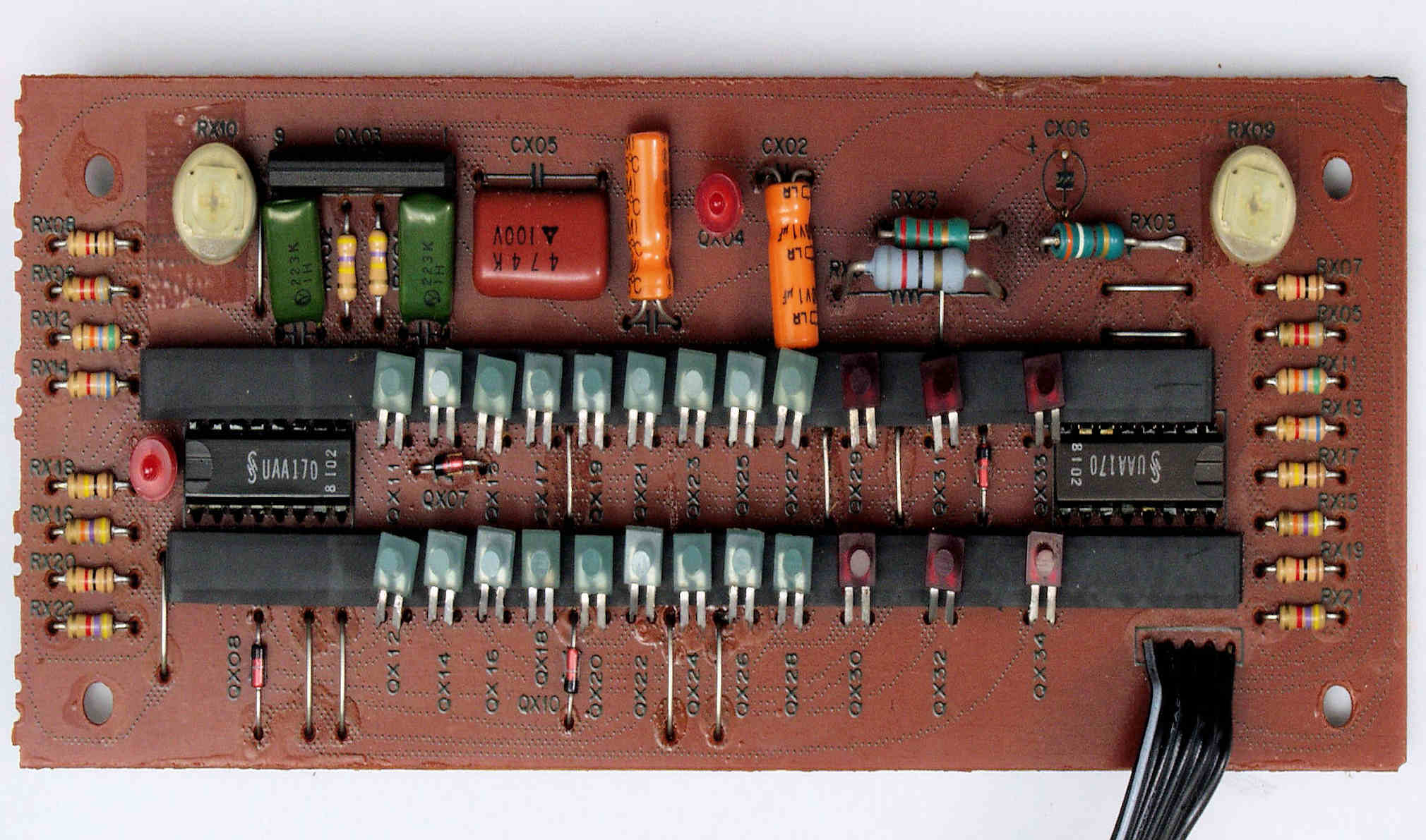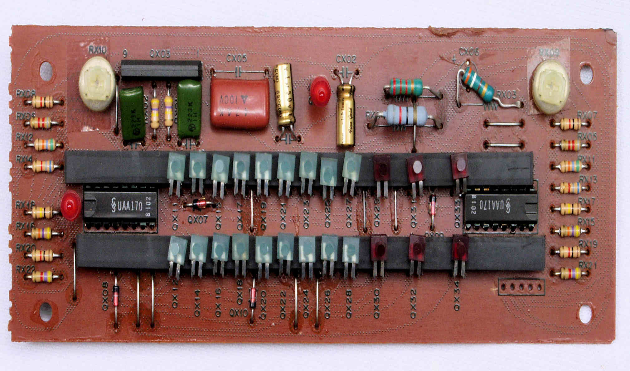 | CC6. 完成MC・AMP・TR(トランジスター)基板裏、コート液を塗り、乾燥後。 | ||||||||||||||||||||||||||||||||||