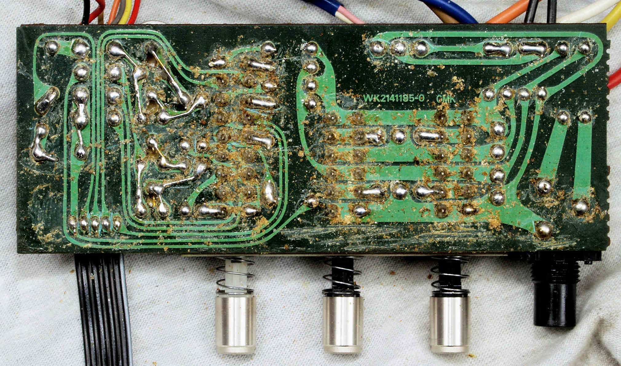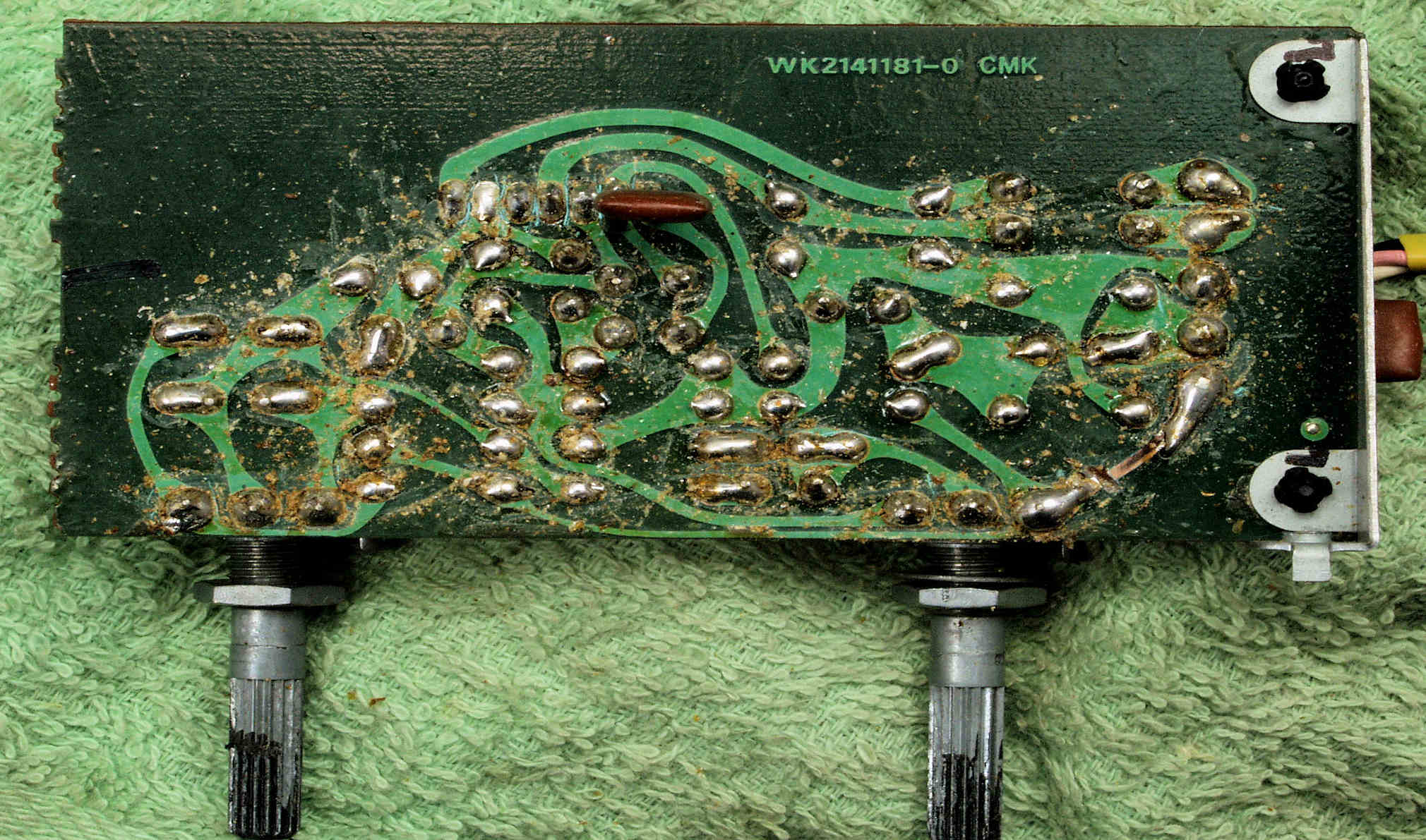 | CB3. 修理前 EQ・AMP・TR(トランジスター)基板裏 | ||||||||||||||||||||||||||||||||||