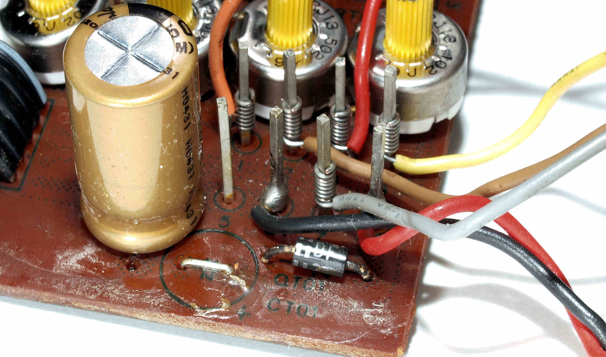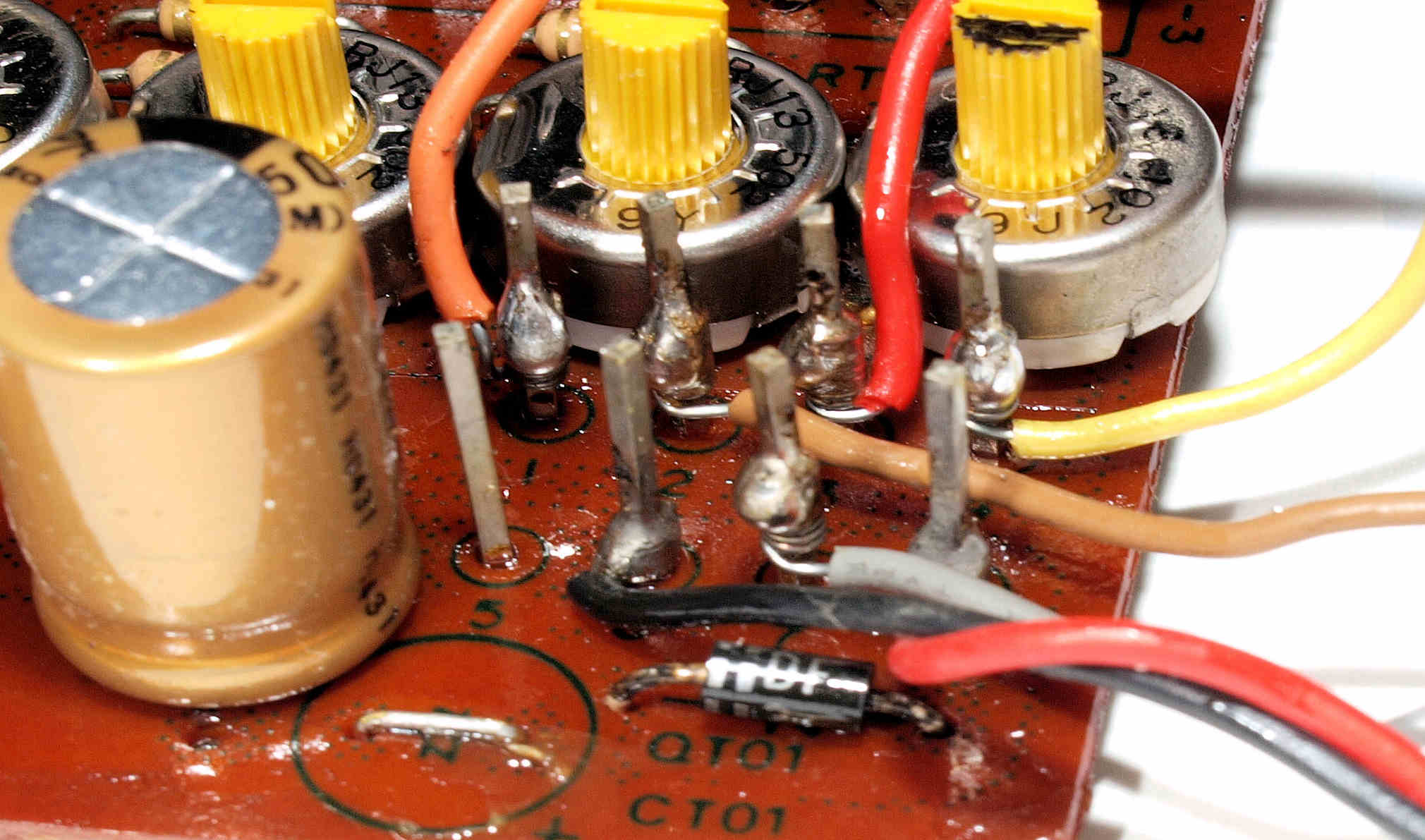 | CA8. 修理(半田補正)後 EQ基板 ラッピング、半田を流し込む。 | ||||||||||||||||||||||||||||||||||