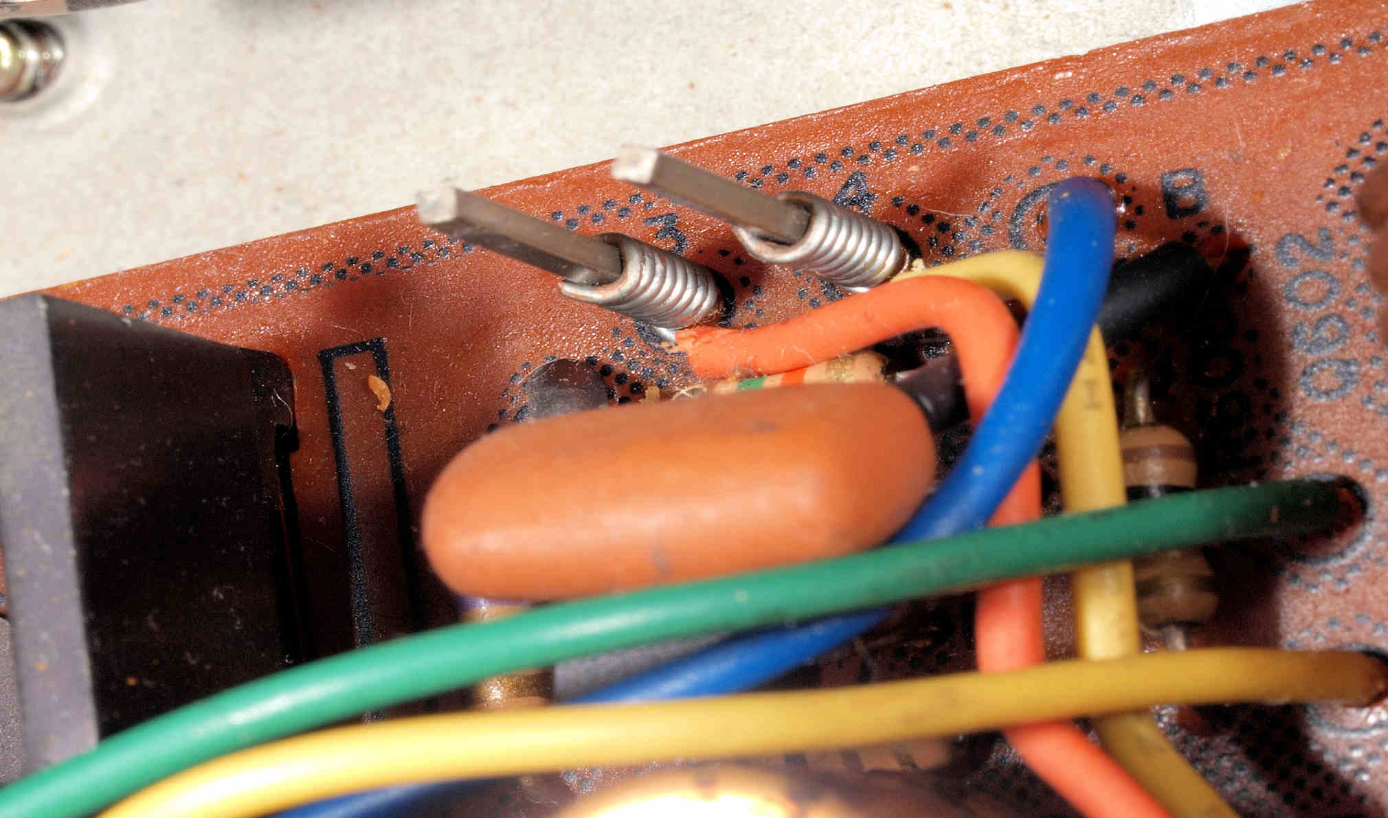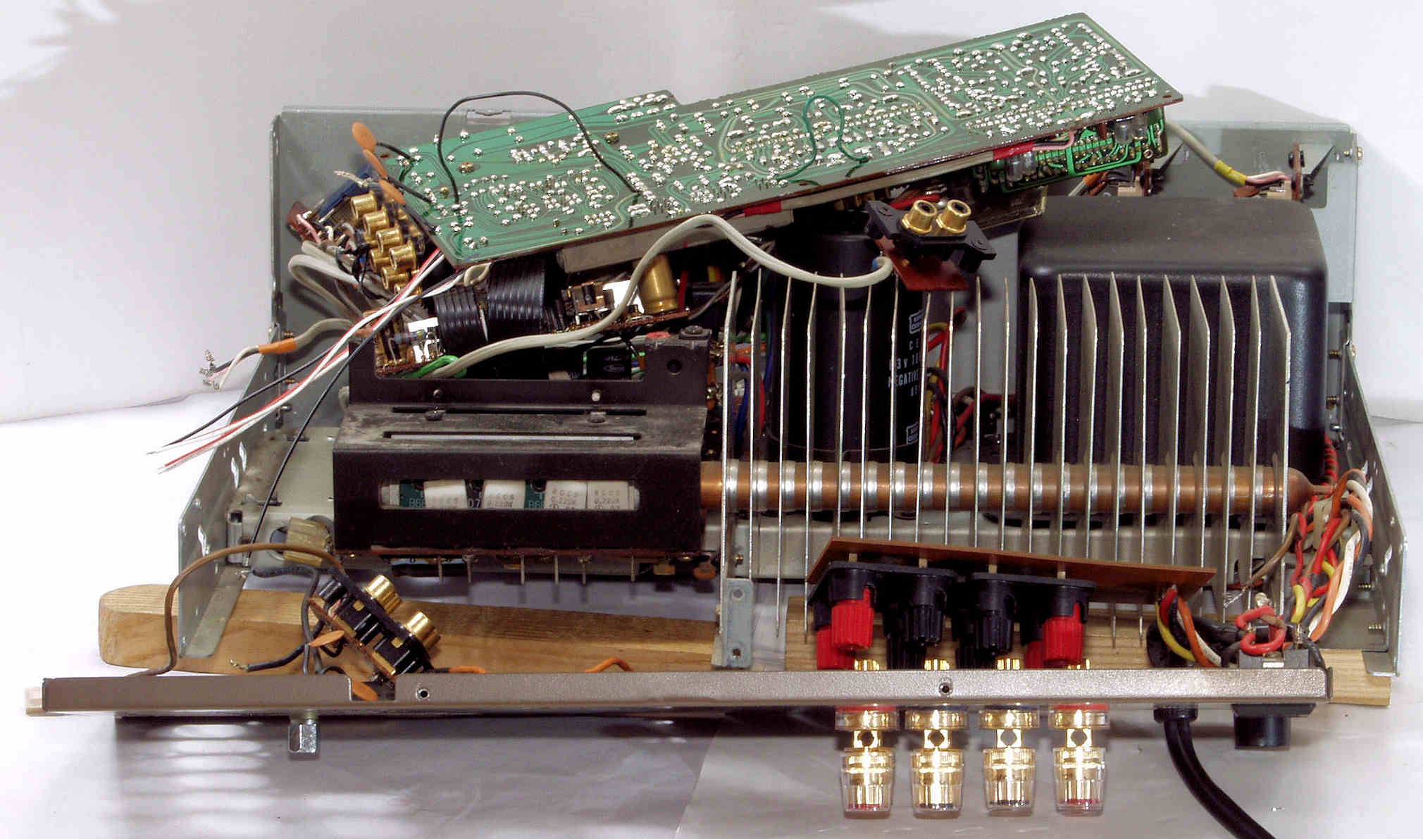 | AA2. 点検中、 終段TR(トランジスター)への、銅板の電源ライン。 | ||||||||||||||||||||||||||||||||||
