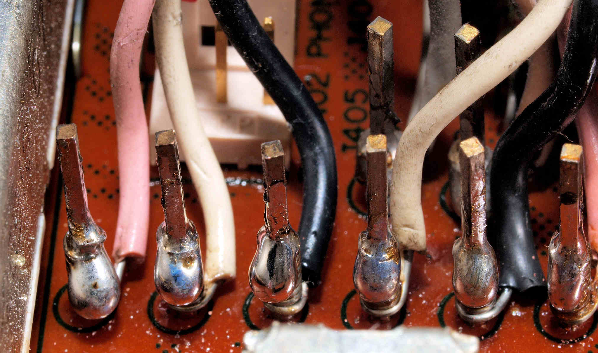| CE6. 修理(半田補正)後 PreOut端子基板裏ラッピング、半田を流し込む。 | ||||||||||||||||||||||||||||||||||