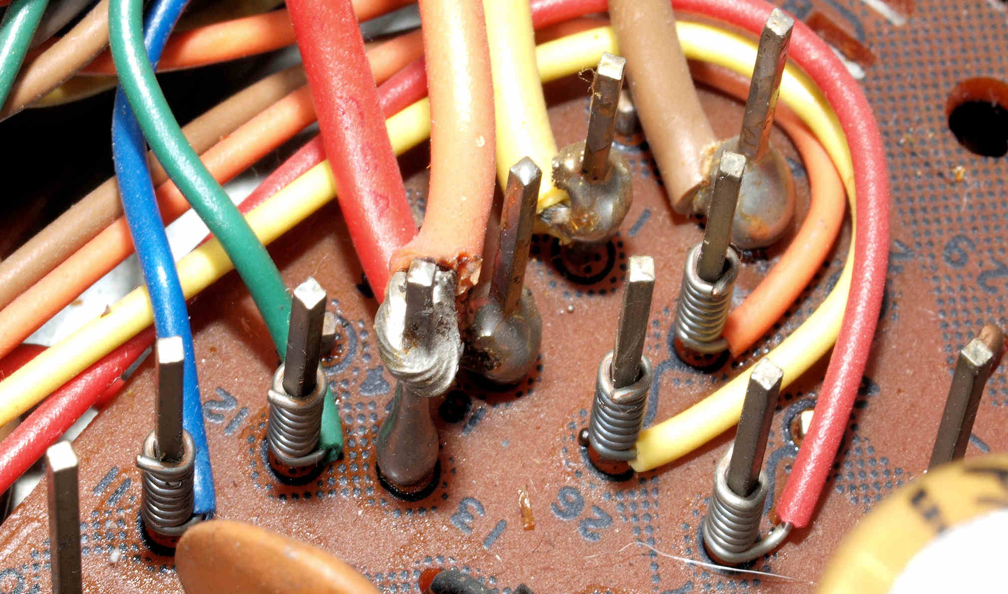 | CAC. 修理(半田補正)後 EQ基板電源コネクターラッピング、半田を流し込む。 | ||||||||||||||||||||||||||||||||||