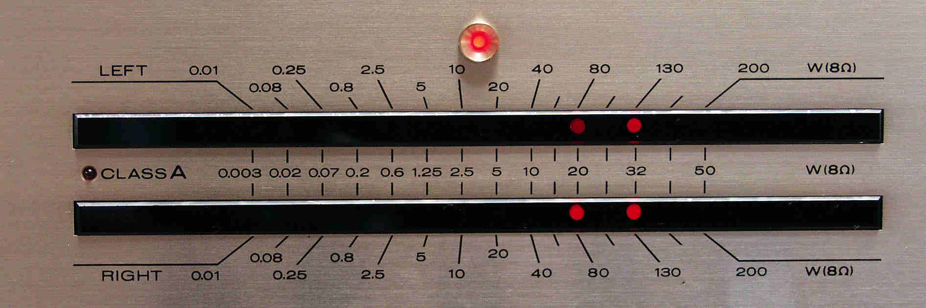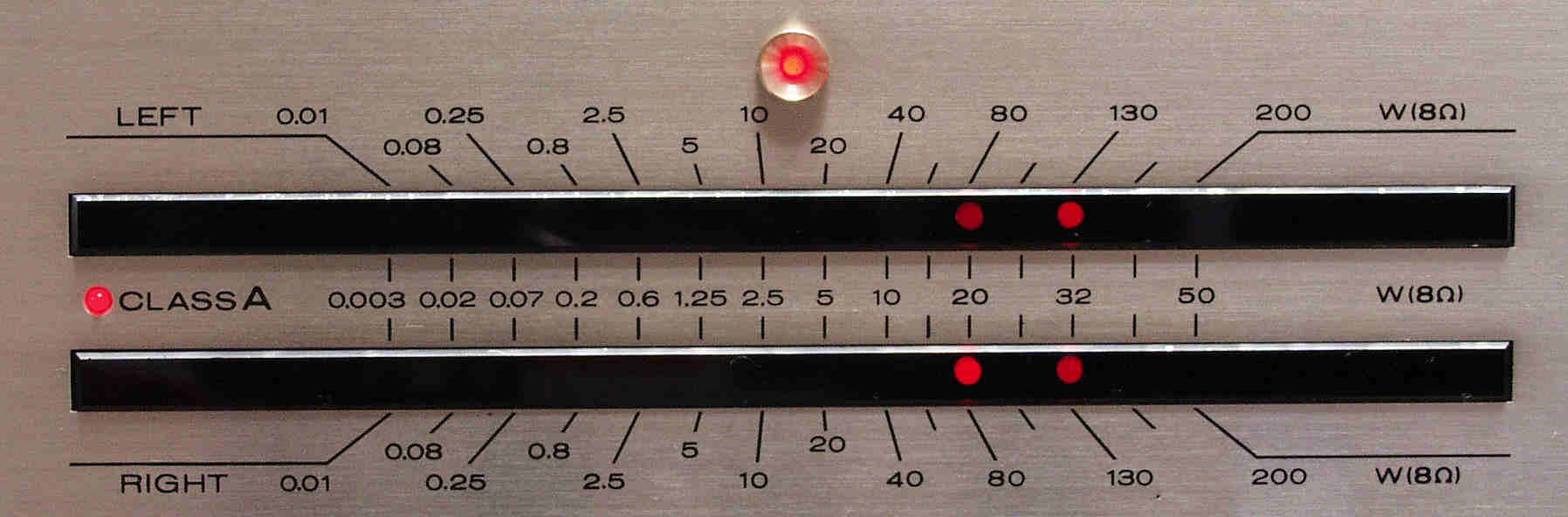 | 終段TR(トランジスター)A級動作 E61. R側、SP出力電圧=15V=28W出力。 歪み率=0.02%(測定レンジ=0.1%)、 AUX入力、 1000HZ。 |