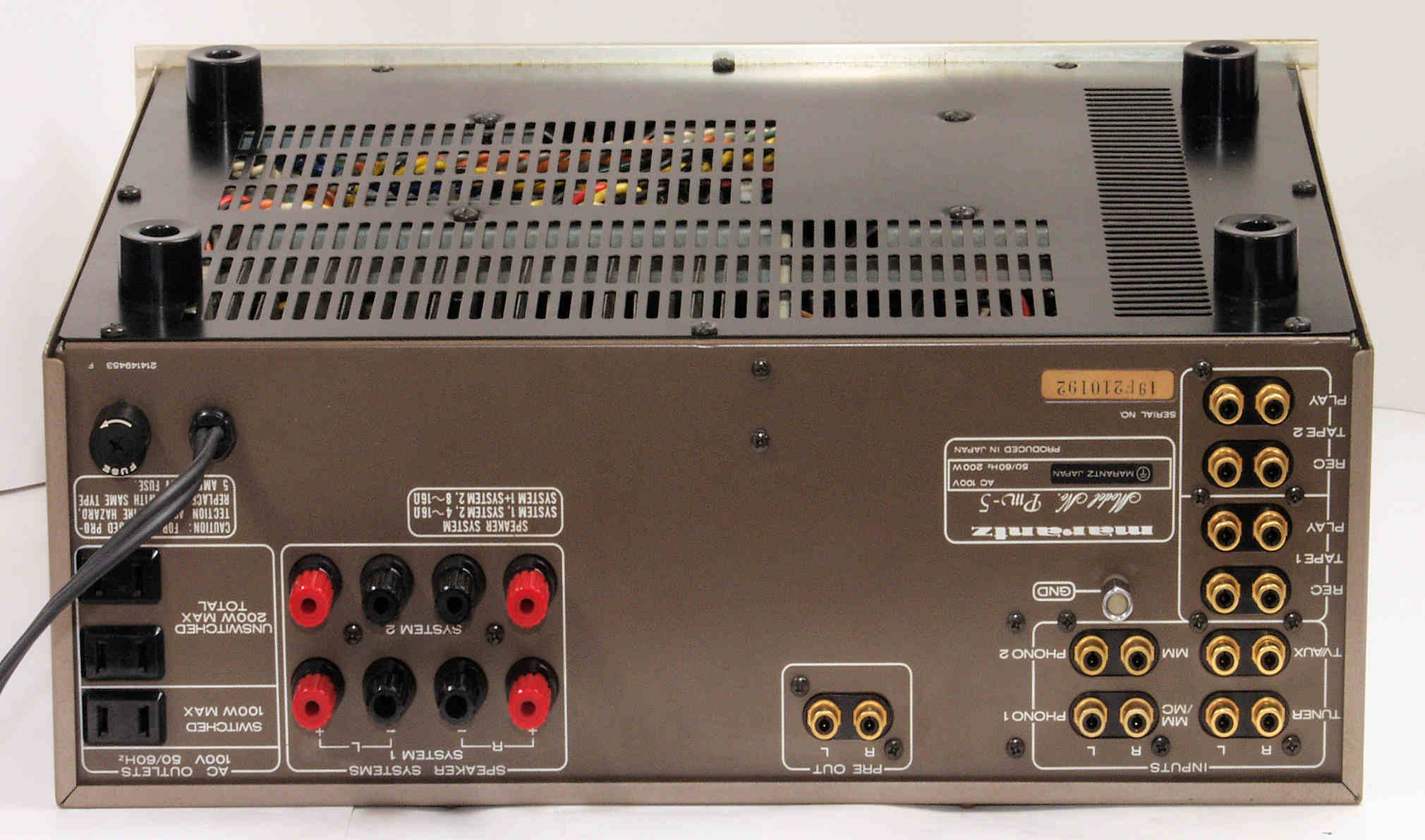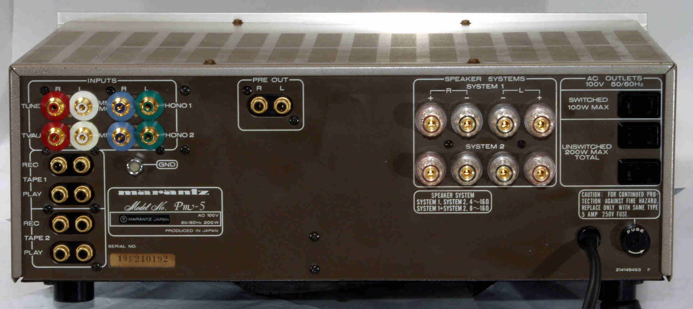 E. 調整・測定 G. 修理費 118,000円 「オーバーホール修理」 S. Marantz PM−5 の仕様(カタログ・マニアルより) |
