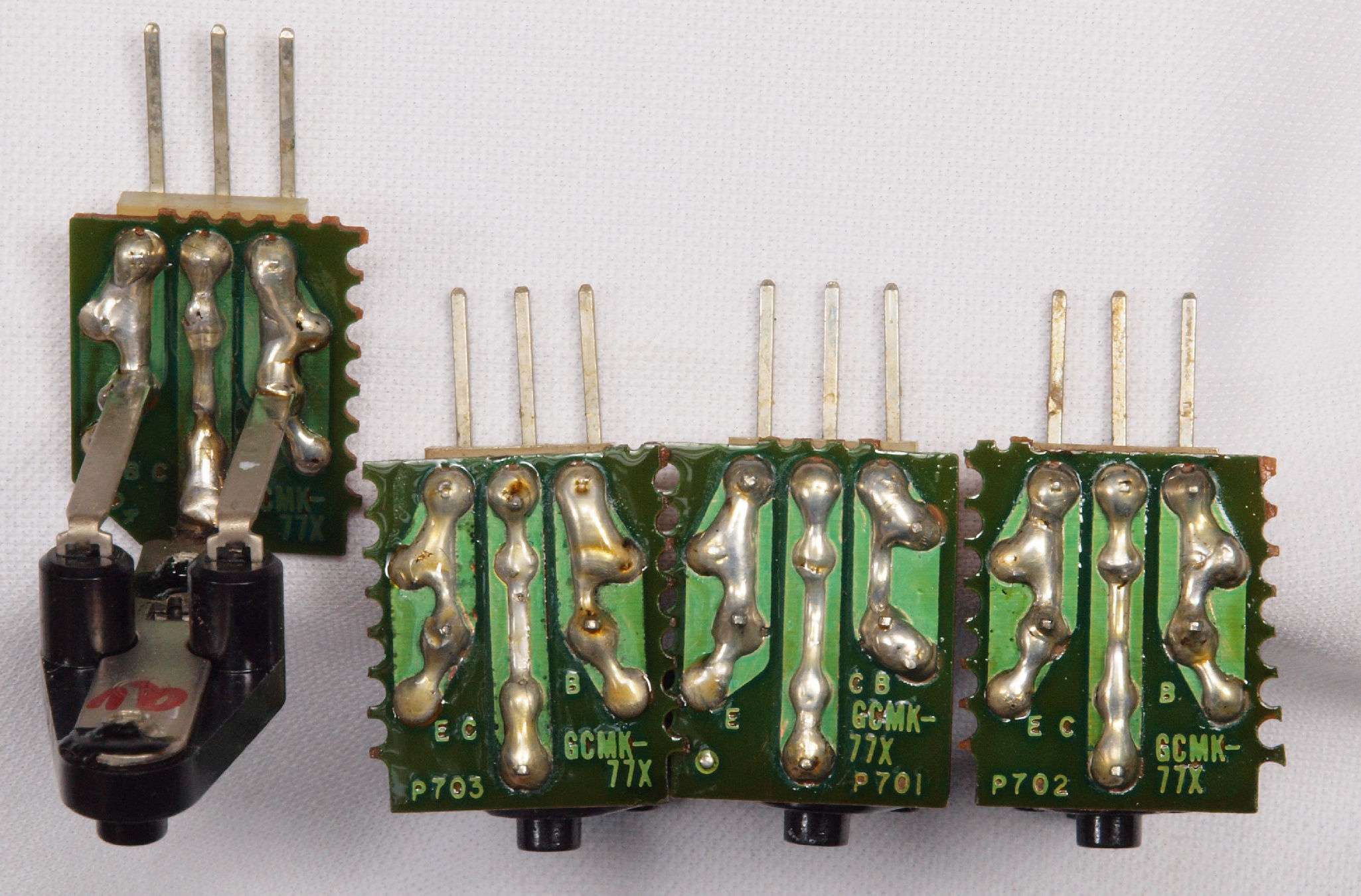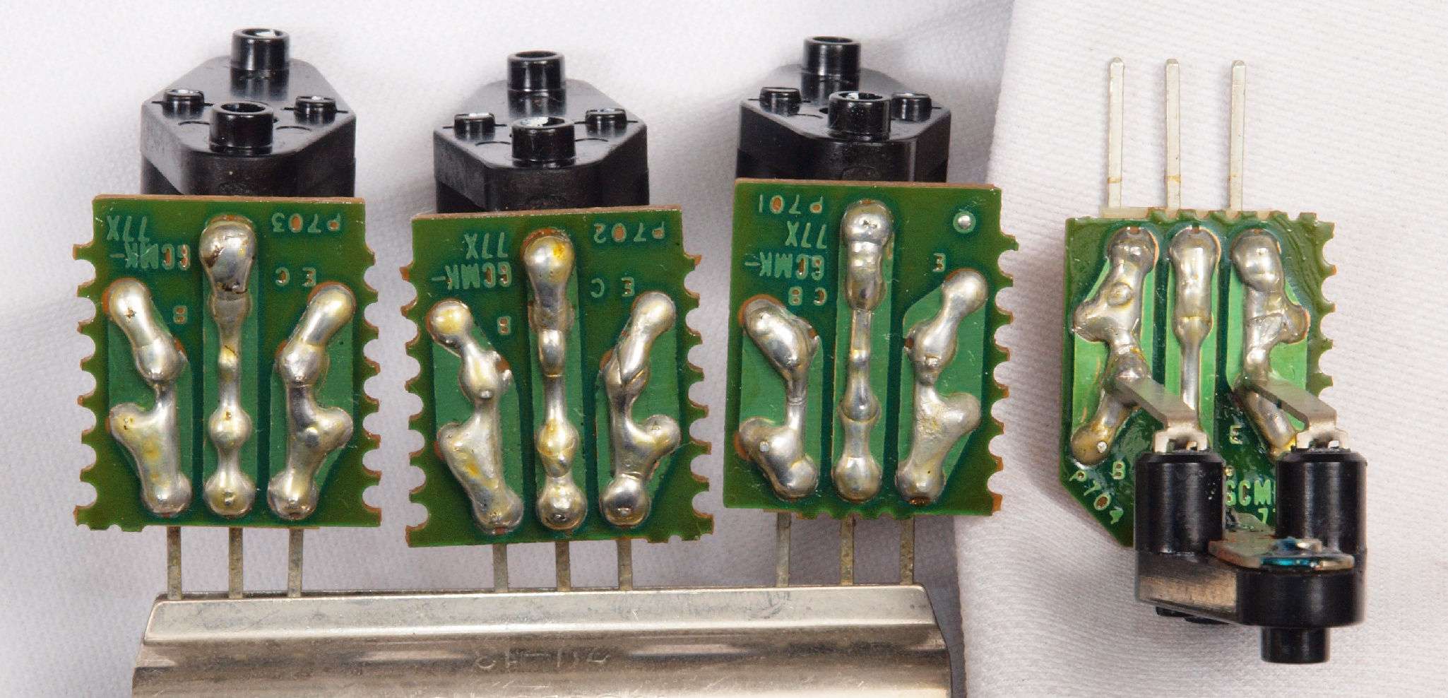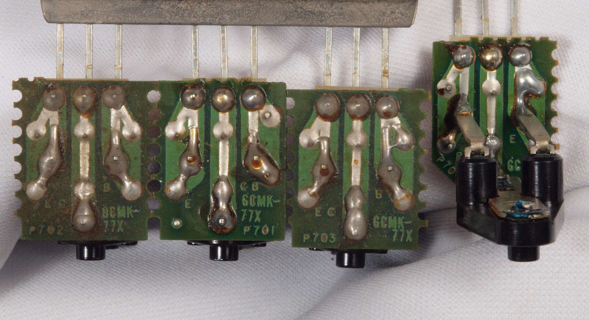 | C16. 完成R側終段ブロック裏、TR(トランジスター)取り付け基板。 余分なフラックスを落として、コート液を塗る。 | ||||||||||||||||||||||||