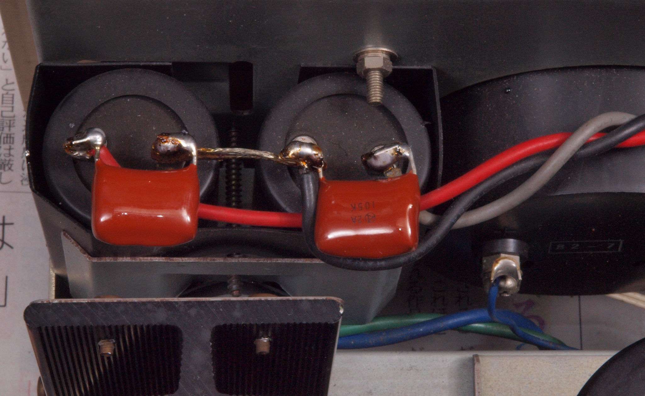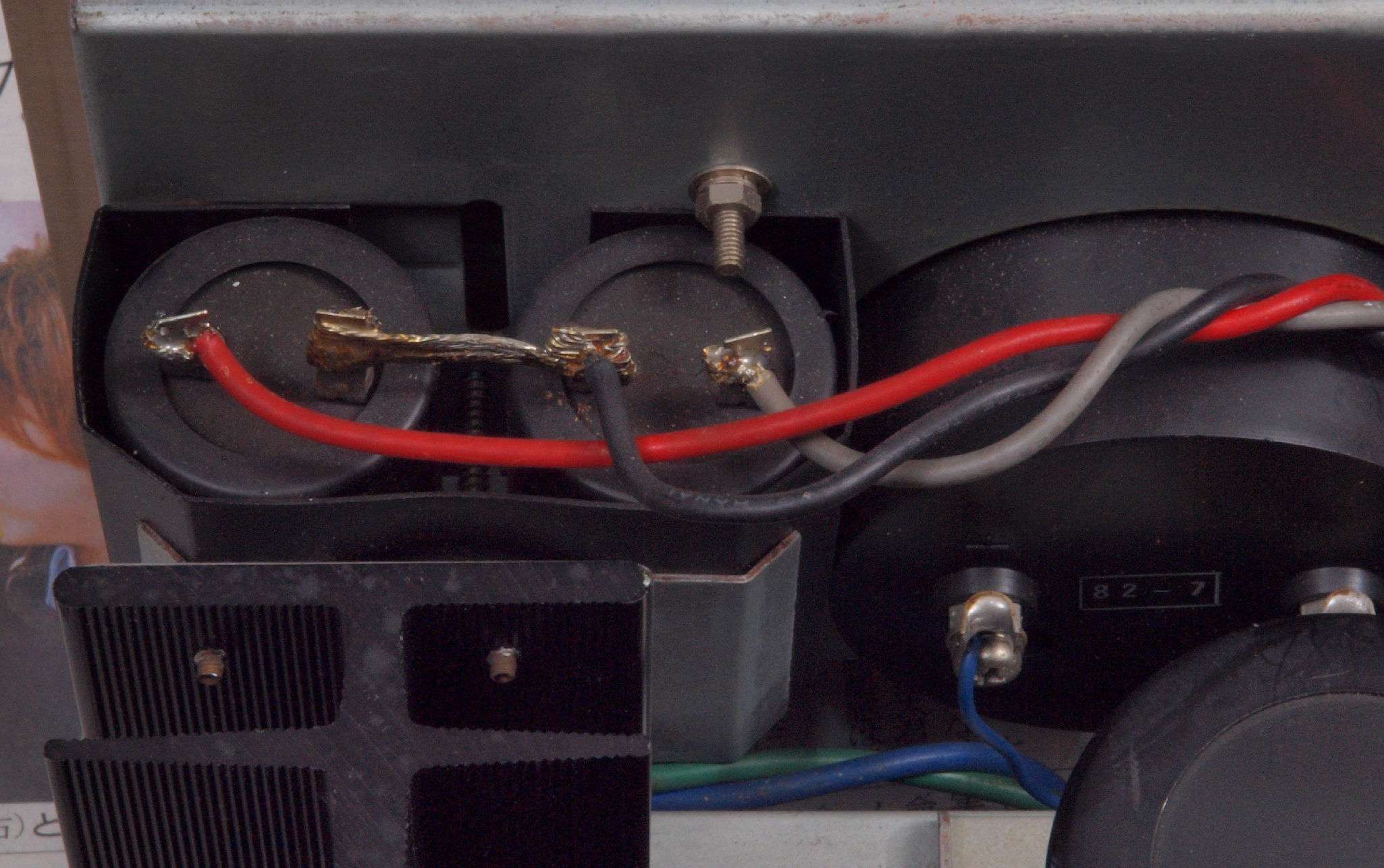 | A31. 点検中 電源ブロック電解コンデンサー見る。 頭のビニールは膨らんでいない。 | ||||||||||||||||||||||||