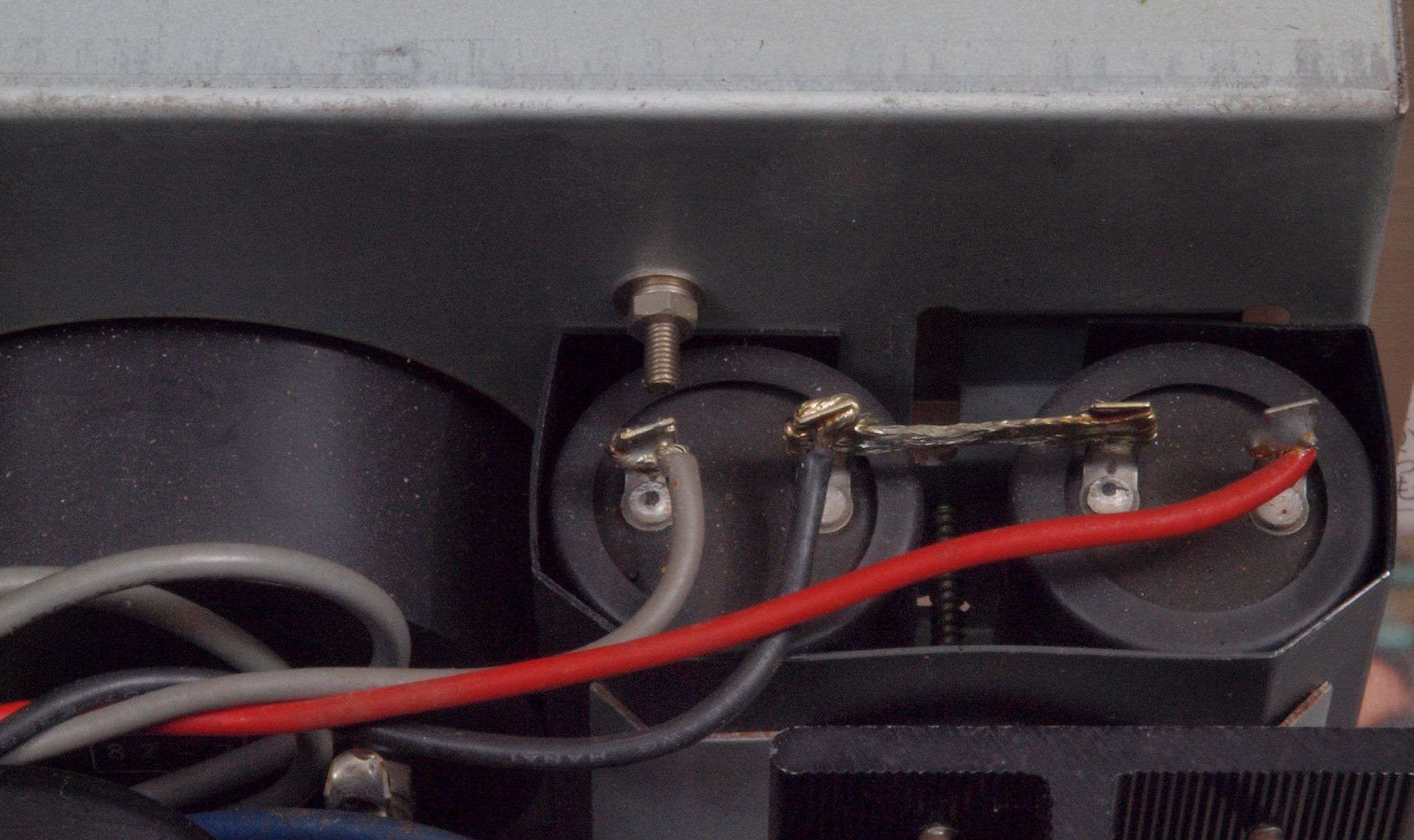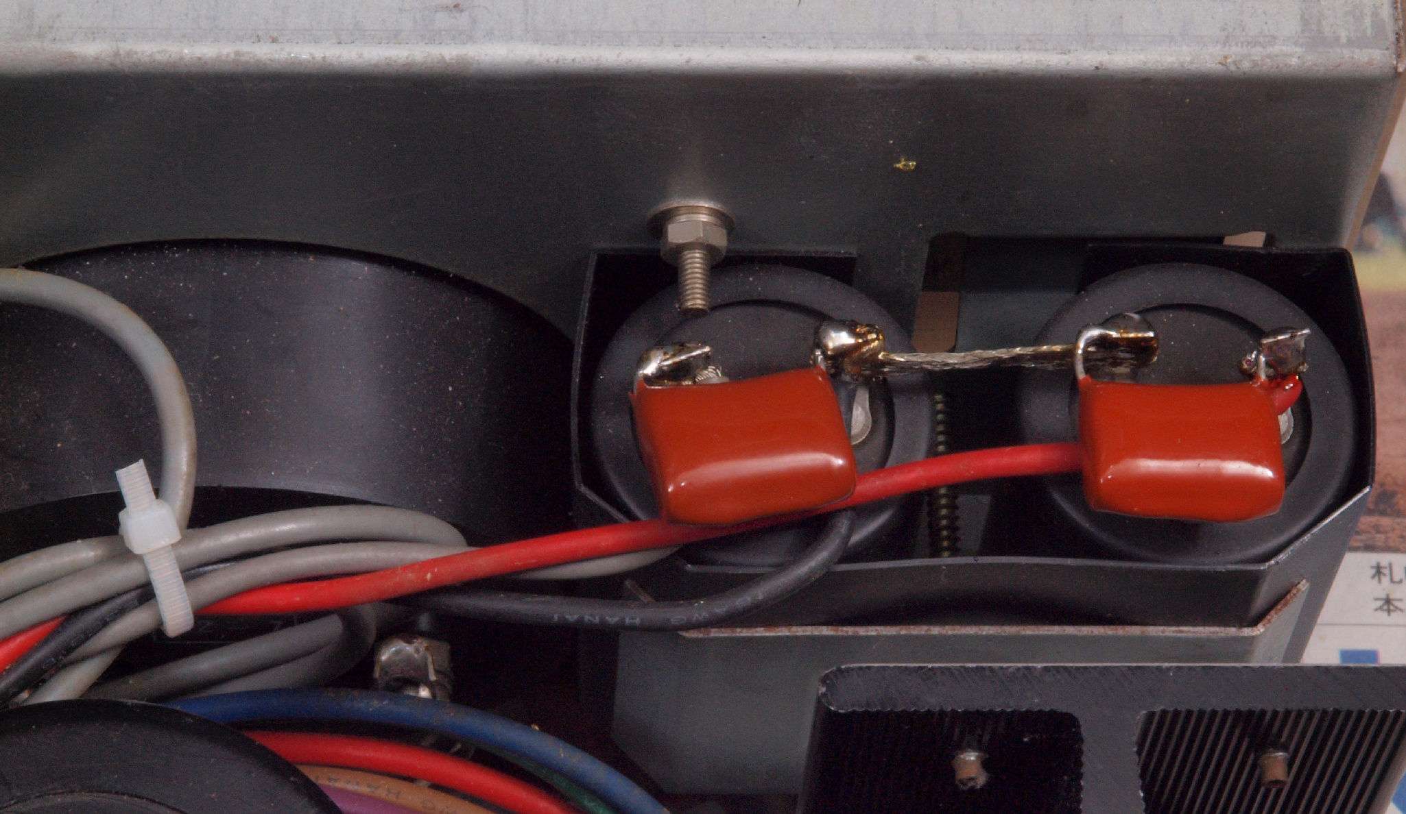 C82. 修理(交換)後 電源の電源ブロック電解コンデンサー。フイルムコンデンサー4個、フューズ4個追加。
