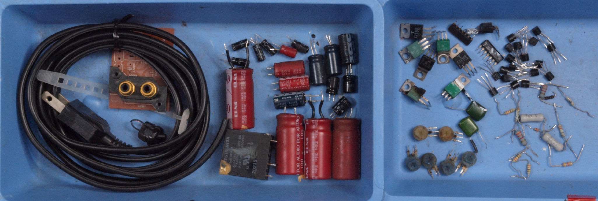 | C52. 修理後 定電圧・プロテクト基板。 SP接続リレー、電解コンンサー9個、半固定VR2個交換。 | ||||||||||||||||||||||||
