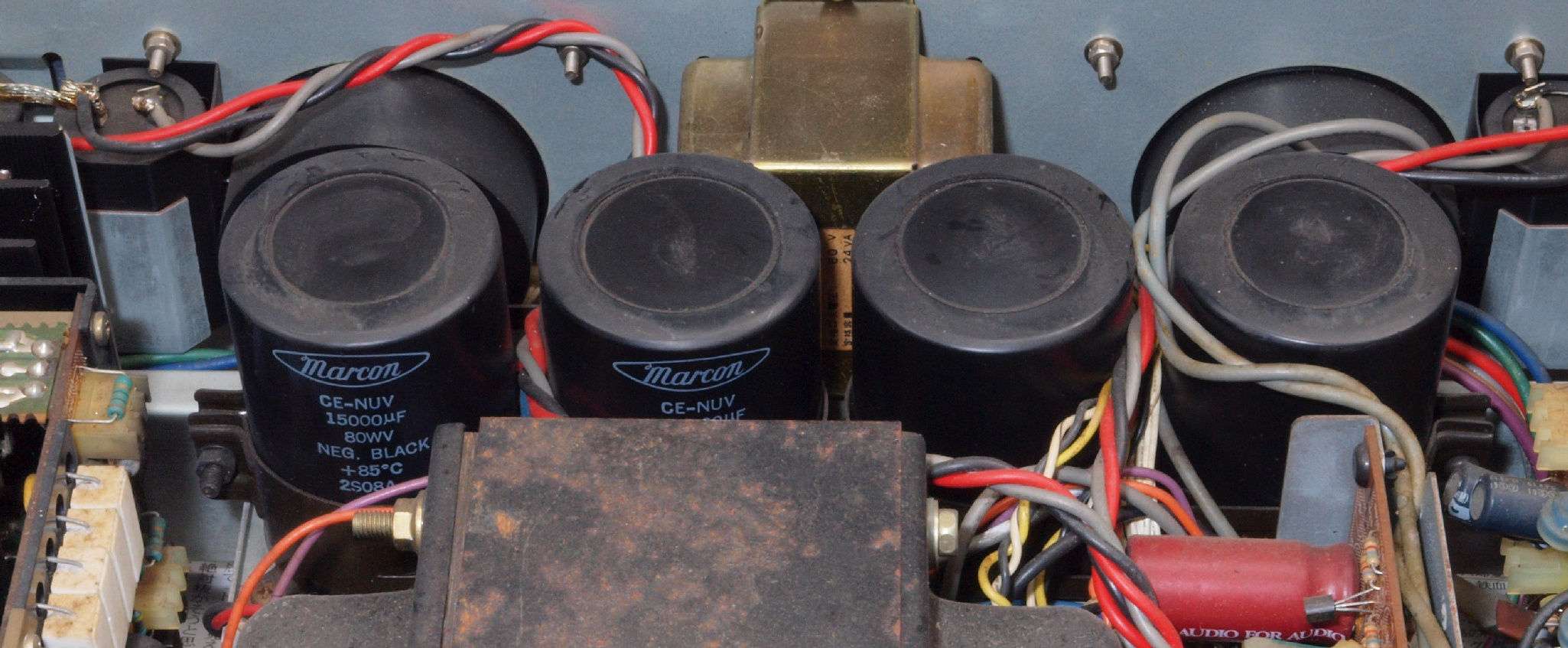 | C92. 修理後 R側前段部電源ブロック電解コンデンサー。フイルムコンデンサー2個追加。 | ||||||||||||||||||||||||