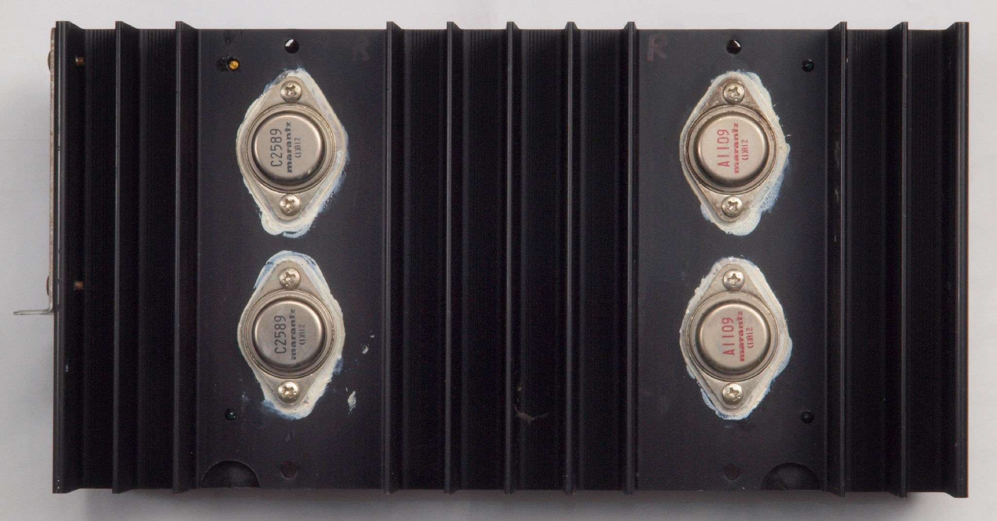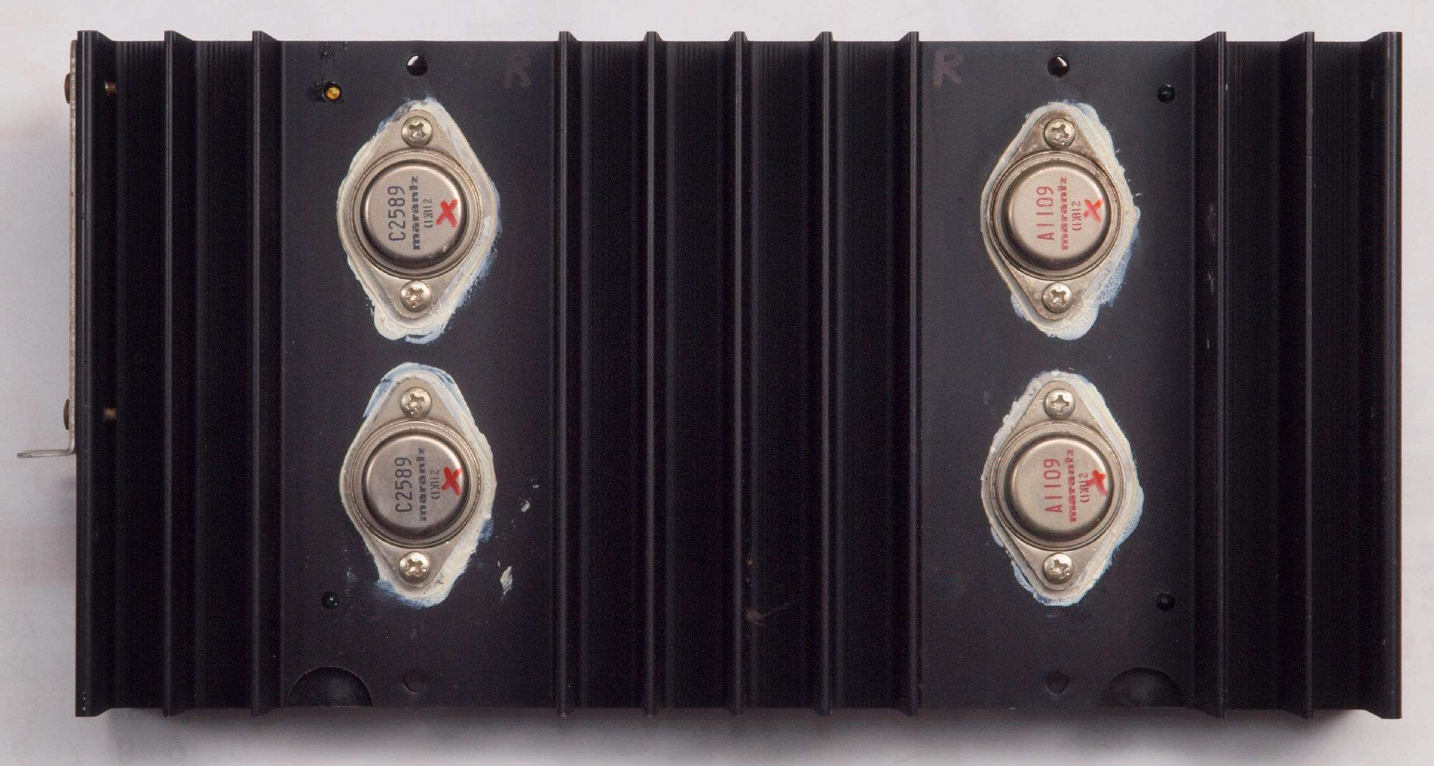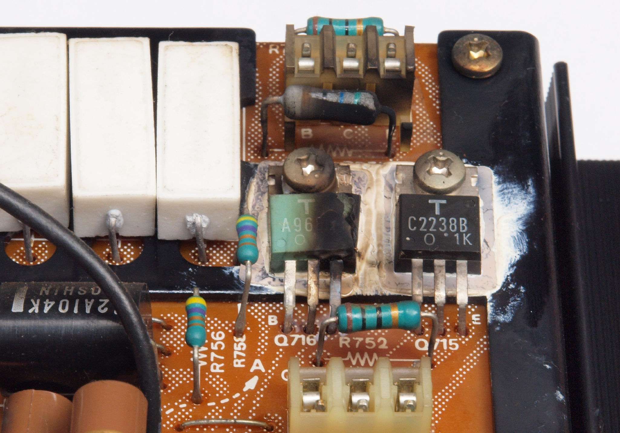 | A61. 点検中 R側終段TR(トランジスター)。 短絡し、全滅です。 | ||||||||||||||||||||||||