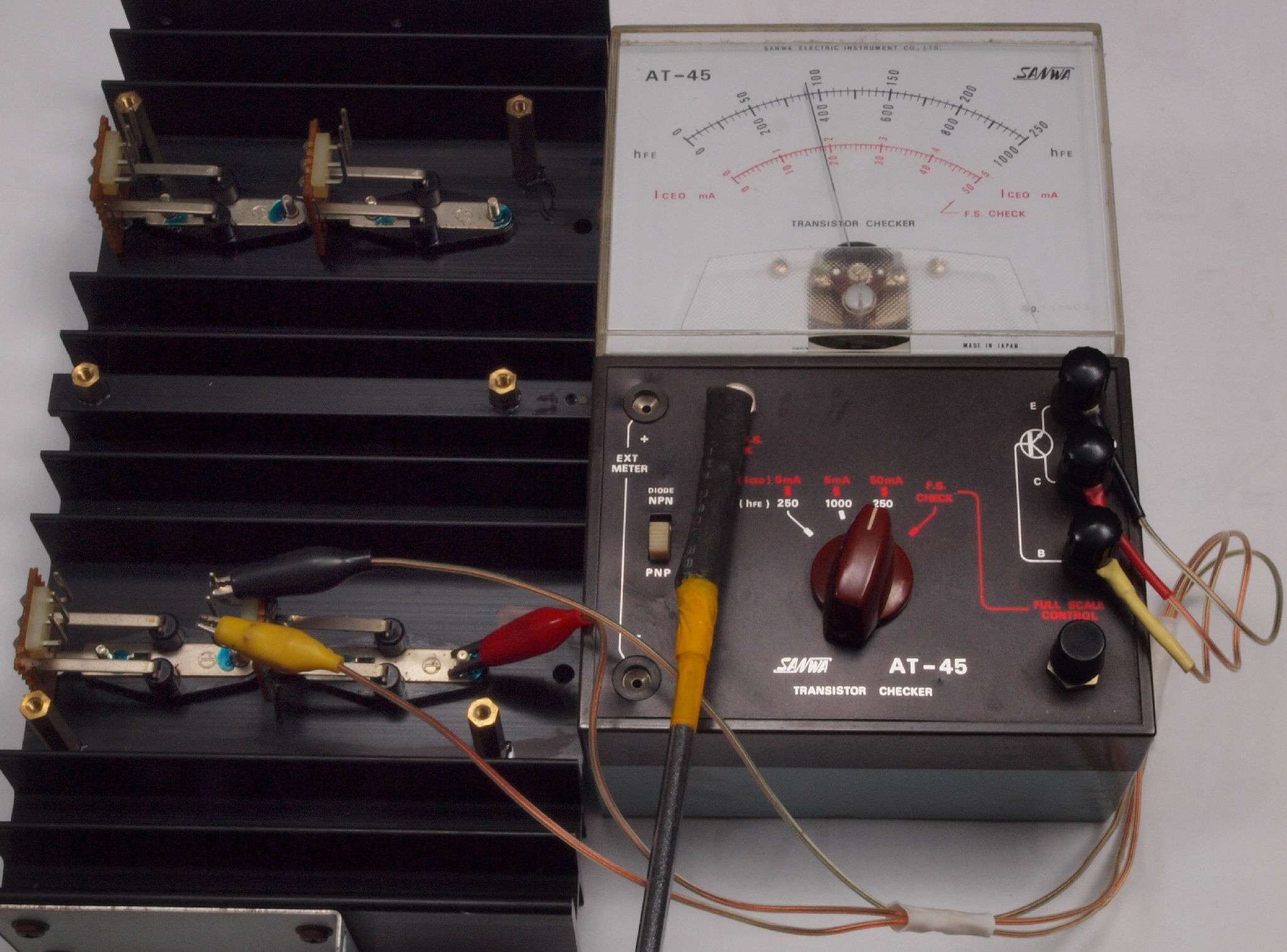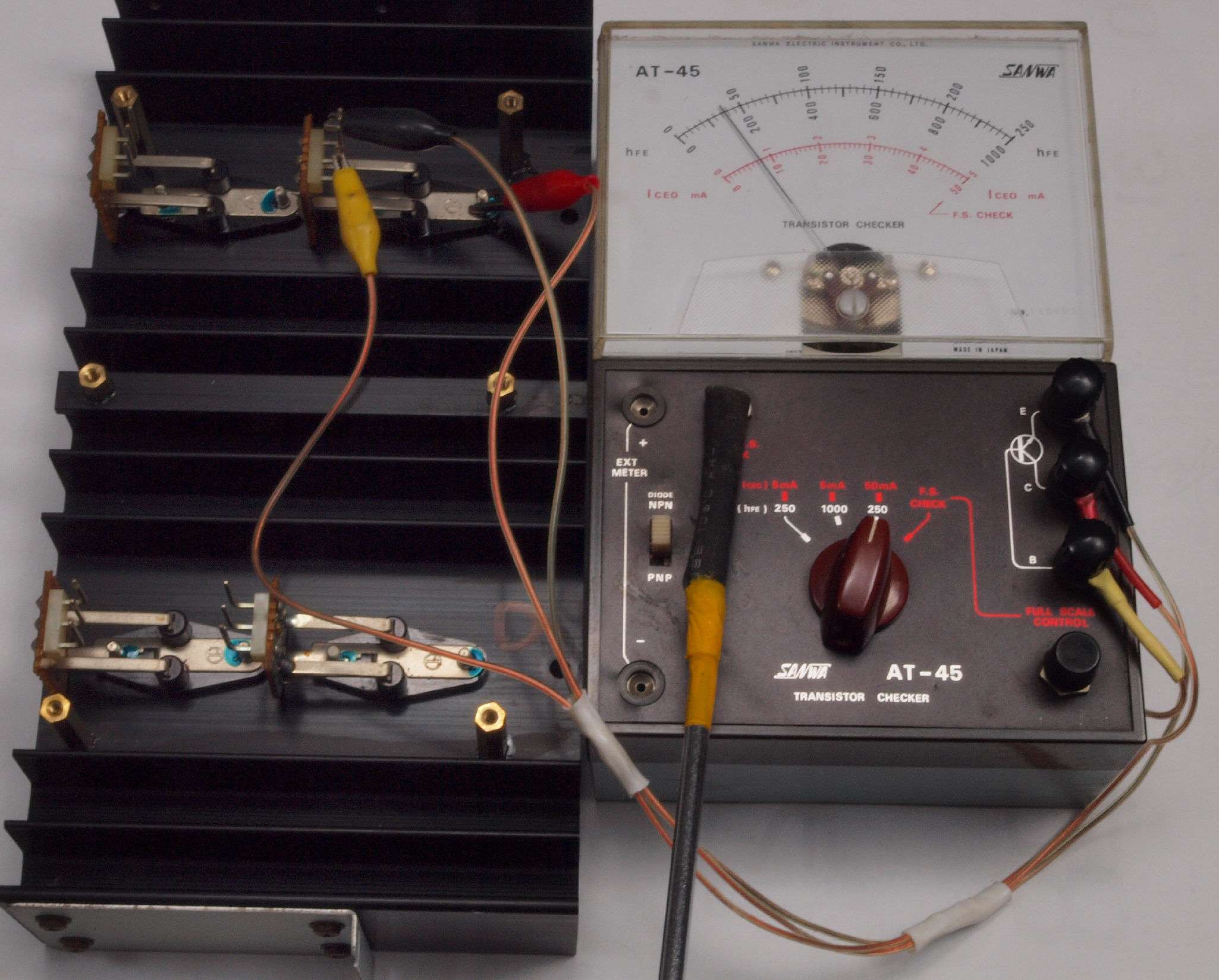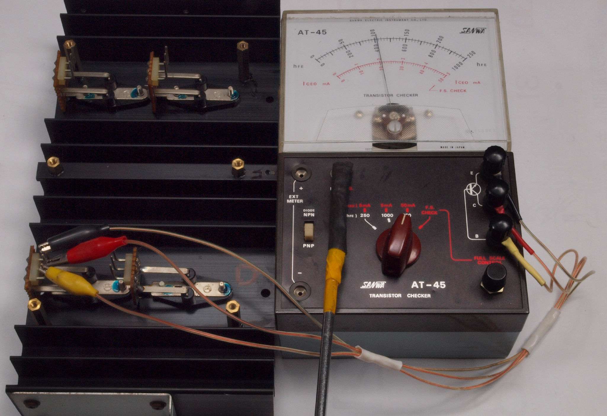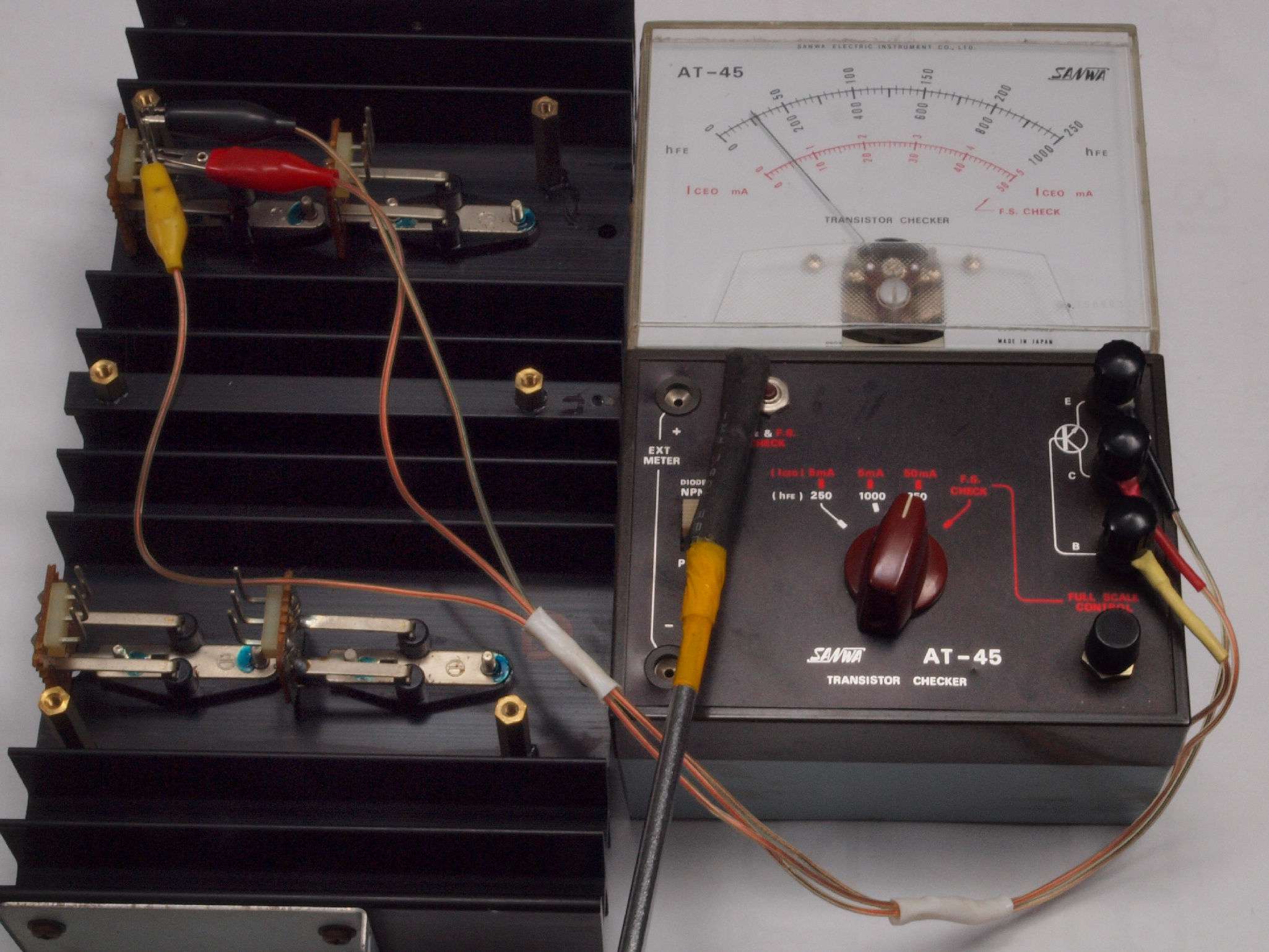 | A81. 点検中 交換する終段TR(トランジスター)の選別中。 | ||||||||||||||||||||||||