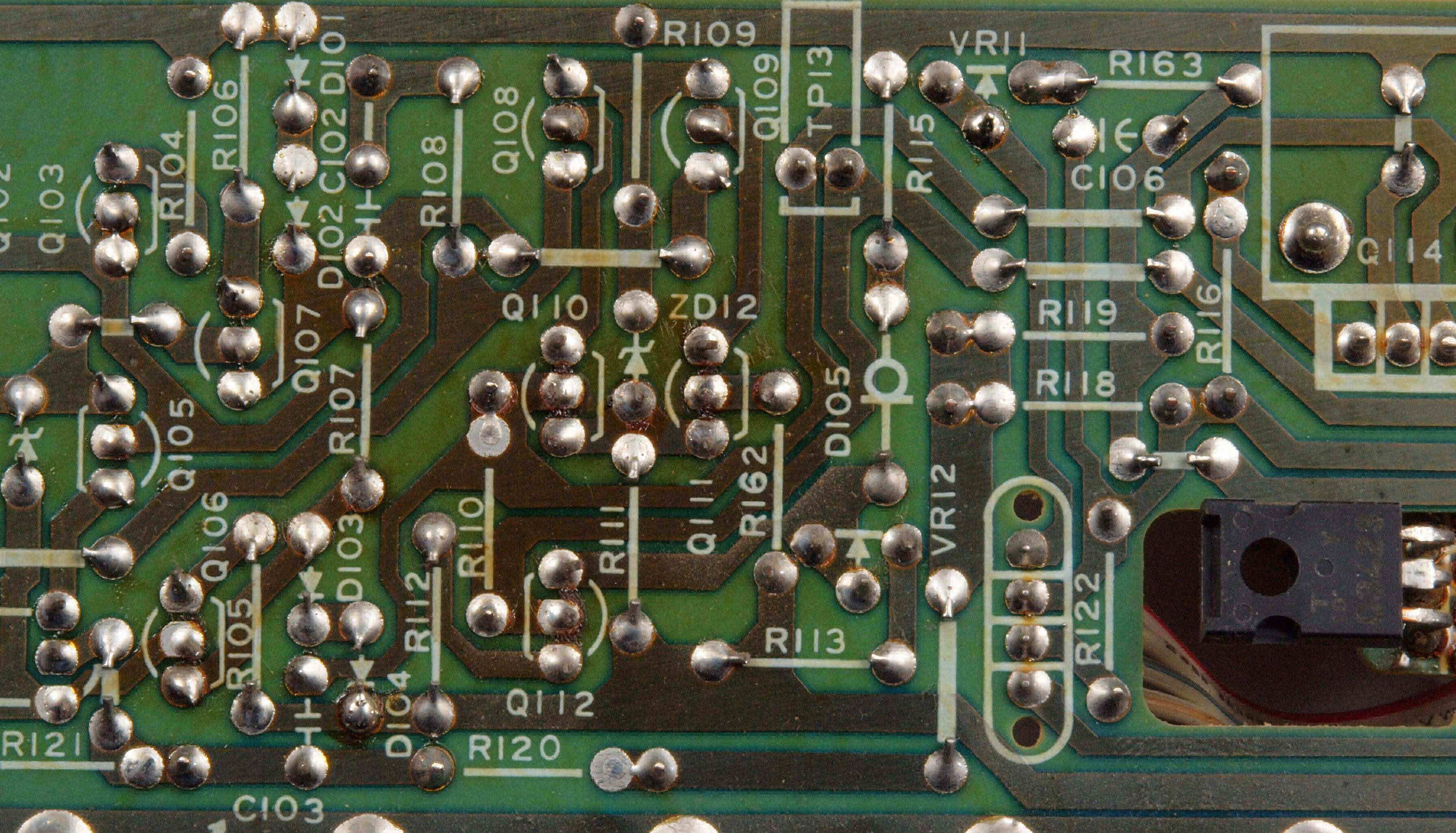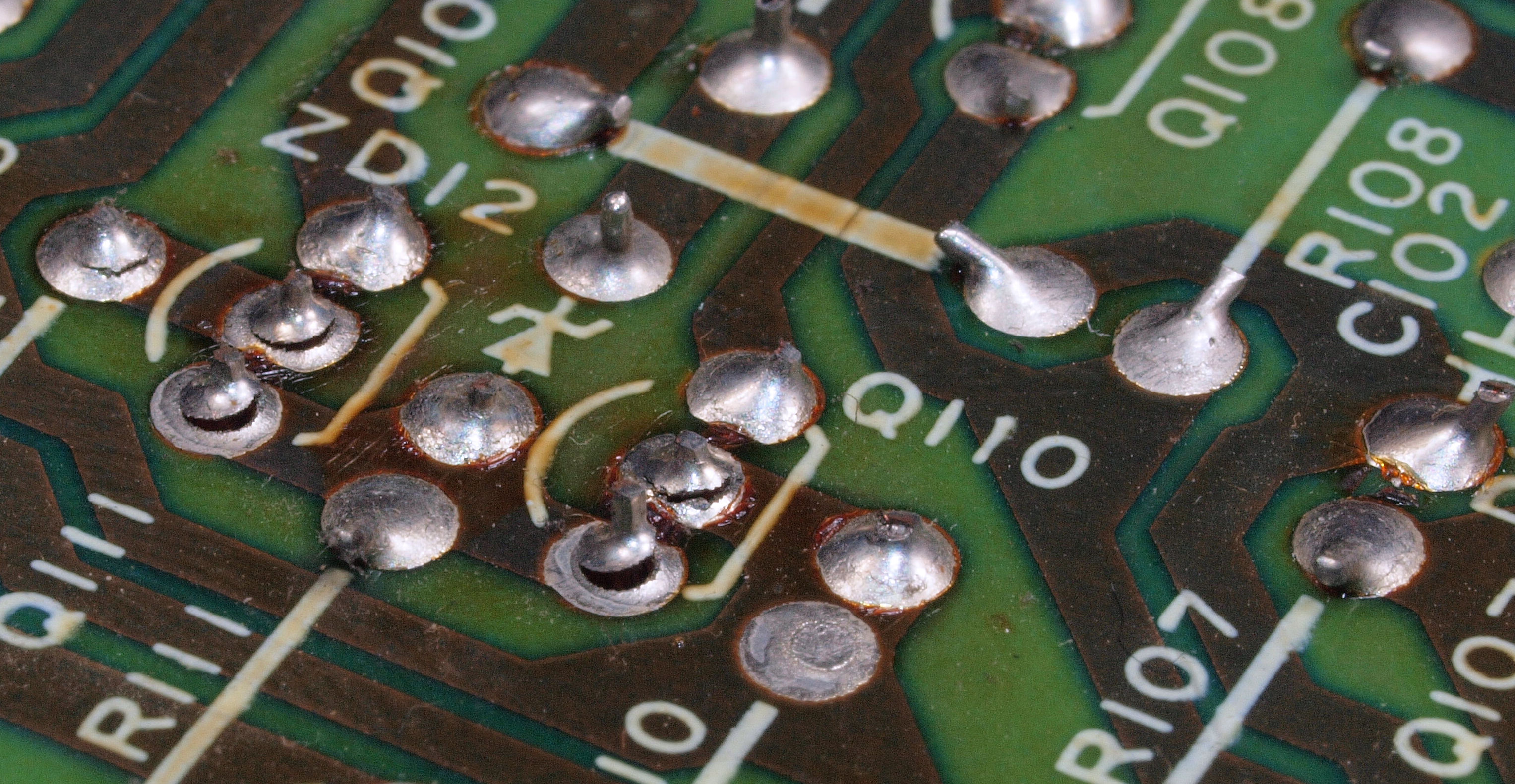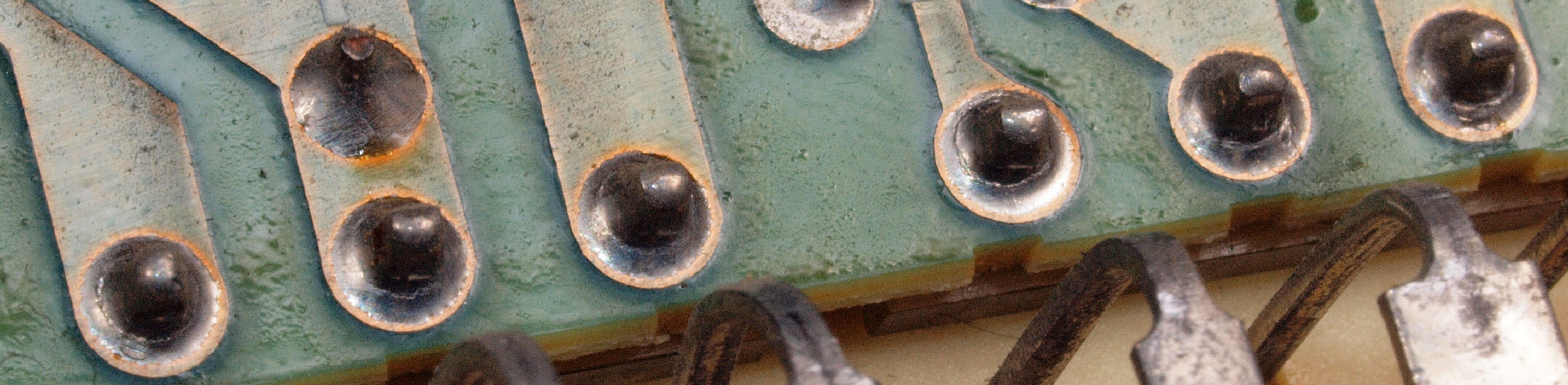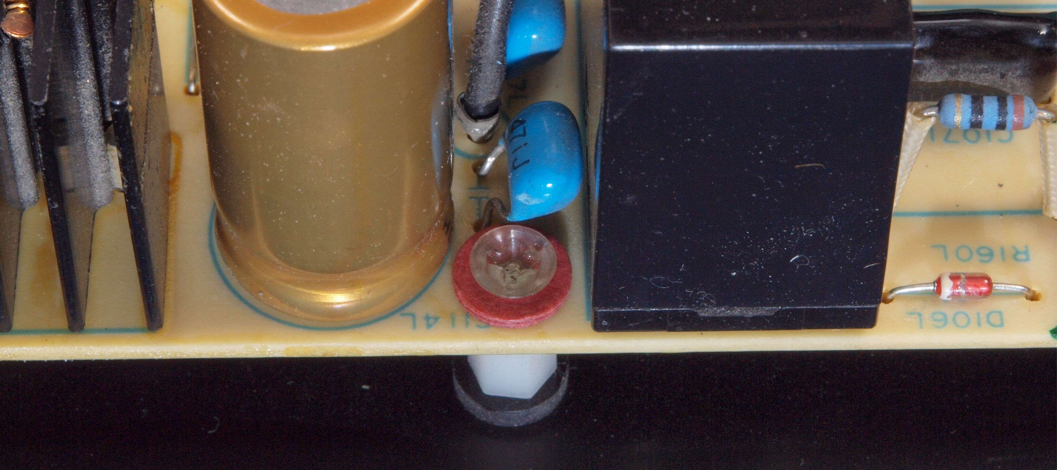 | A32. 点検中 電源電解コンデンサーの端子にかろうじて付着している半田球(屑)。 | ||||||||||||||||||||||||||||||||||||||||||