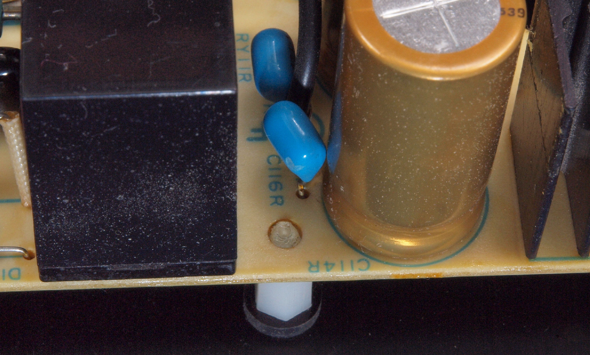| C75. 修理後 下から見る拡大 フイルムコンデンサー4個追加。 | ||||||||||||||||||||||||||||||||||||||||||