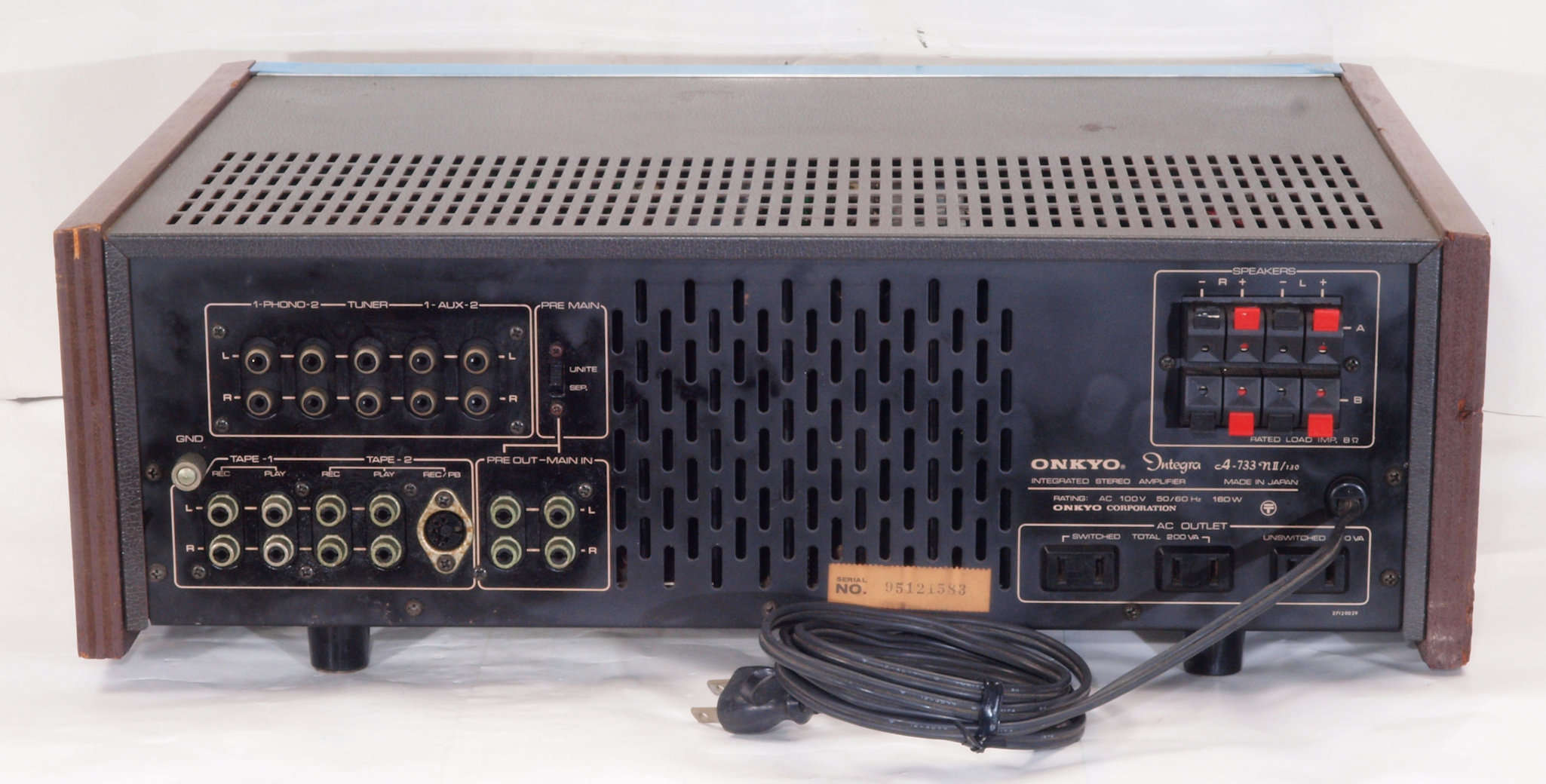 | 倉庫整理の為、オークションに出品するため測定 S. ONKYO Integra A733NU/130 の仕様(マニアル・カタログより) |