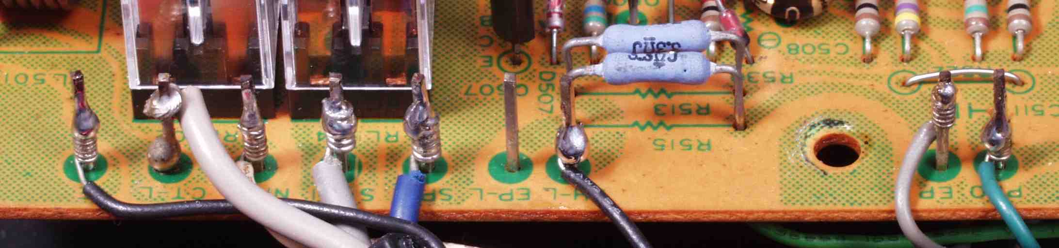 | C13. 修理後 Rドライブ基板。 ラッピングに半田を流し込む。 | ||||||||||||||||||||||||||||||||||||||||||||||||||||||||||