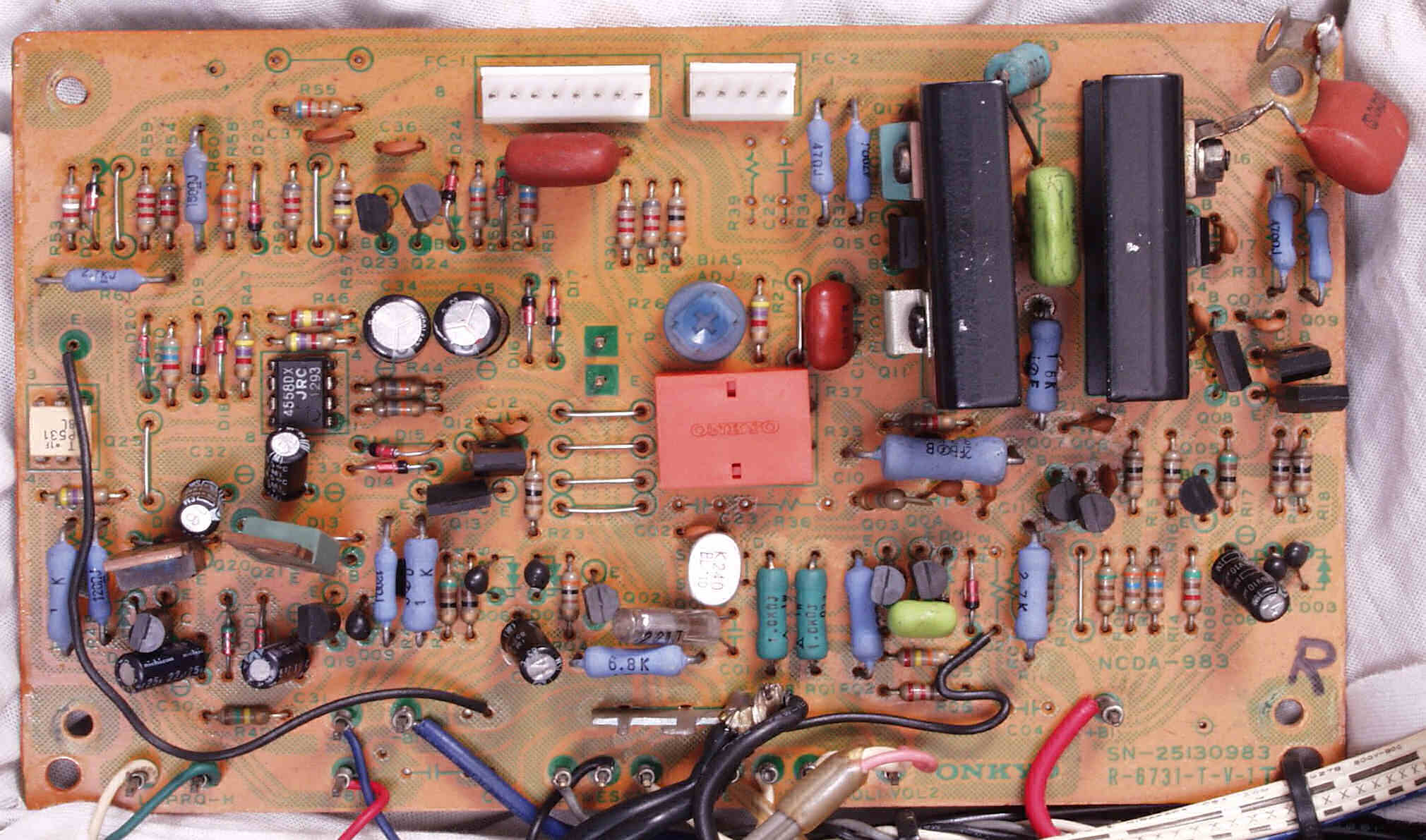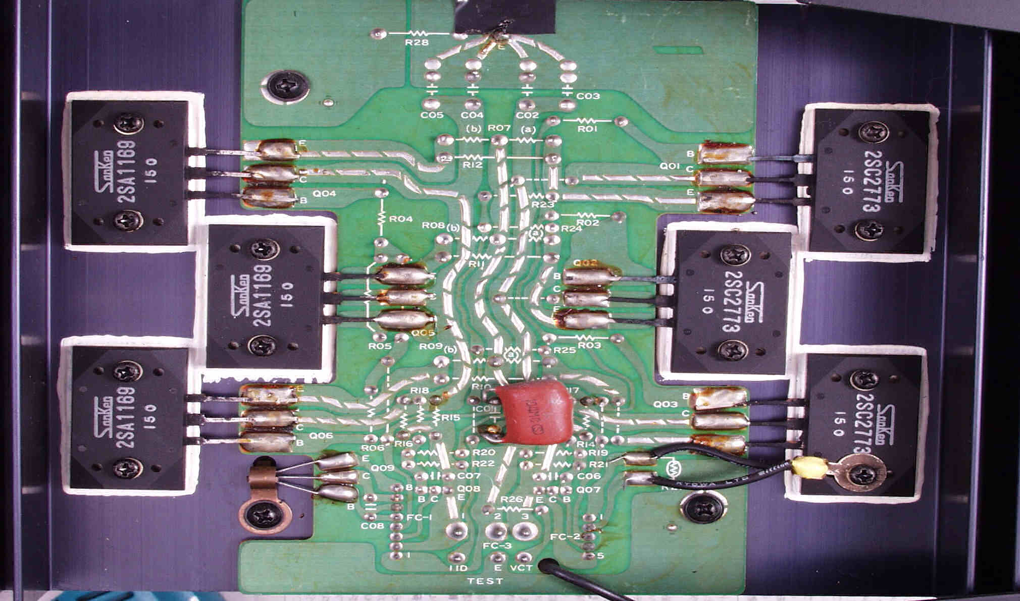 | C31. 修理前 R側終段TR(トランジスター)基盤。 | ||||||||||||||||||||||||||||||||||||||||||||||||||||||||||