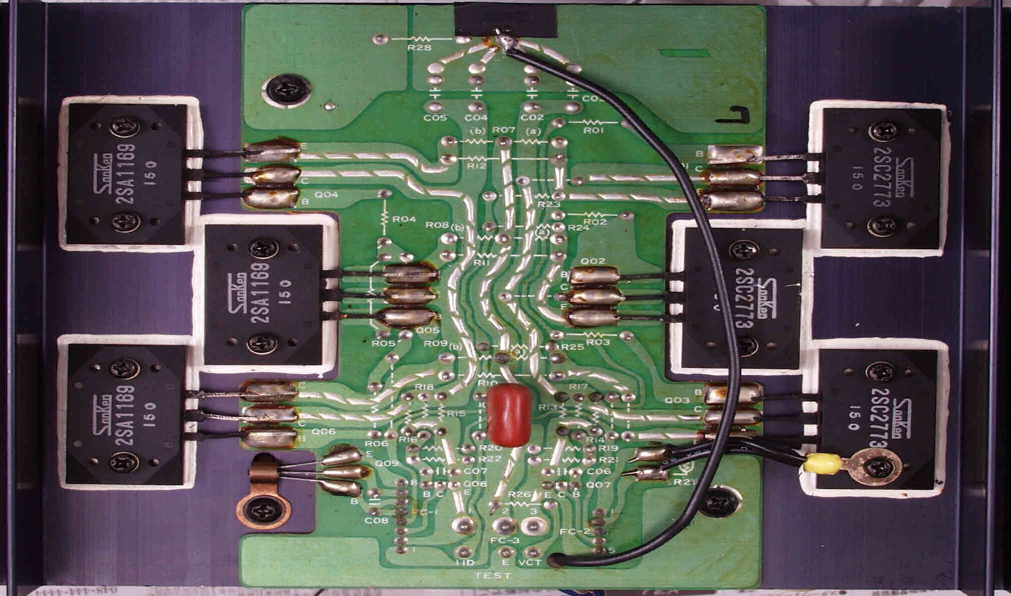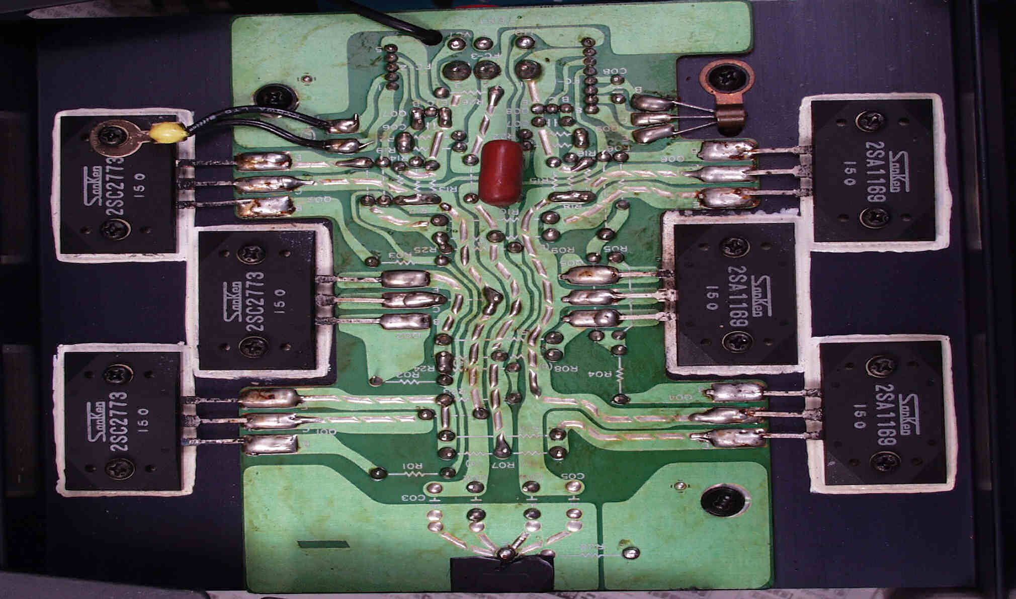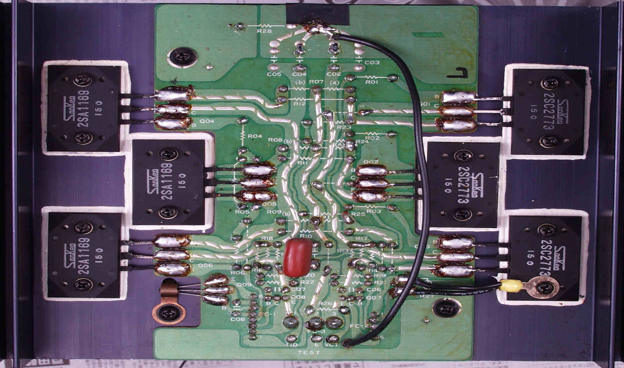| C32. 修理(半田補正)後 R側終段TR(トランジスター)基盤。 | ||||||||||||||||||||||||||||||||||||||||||||||||||||||||||