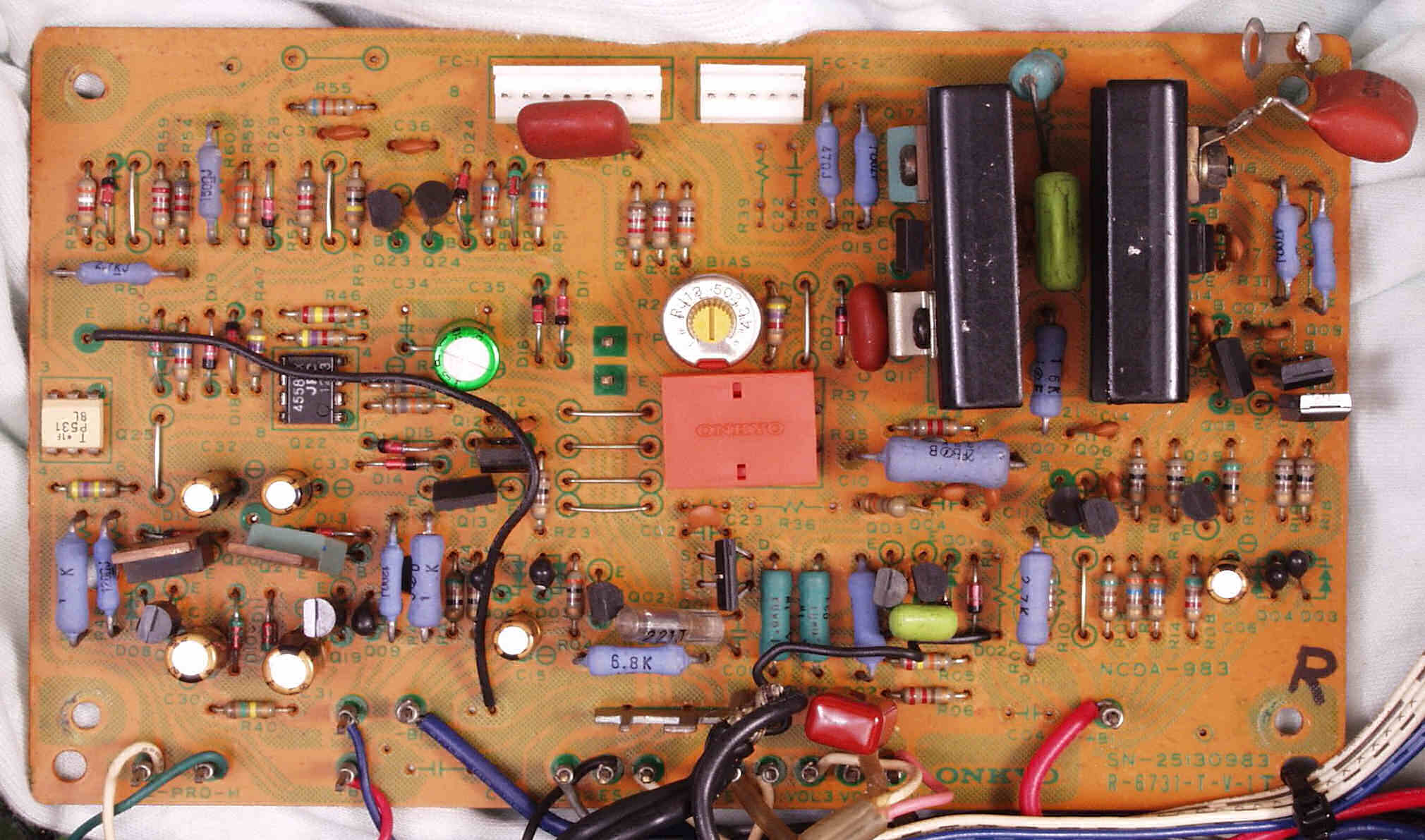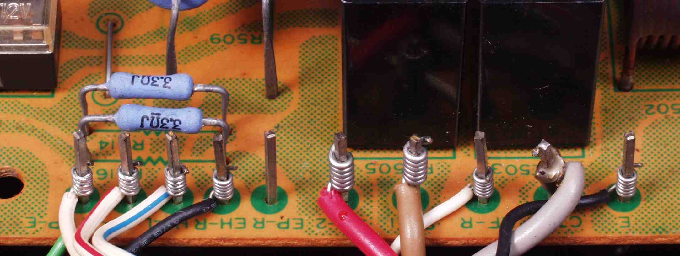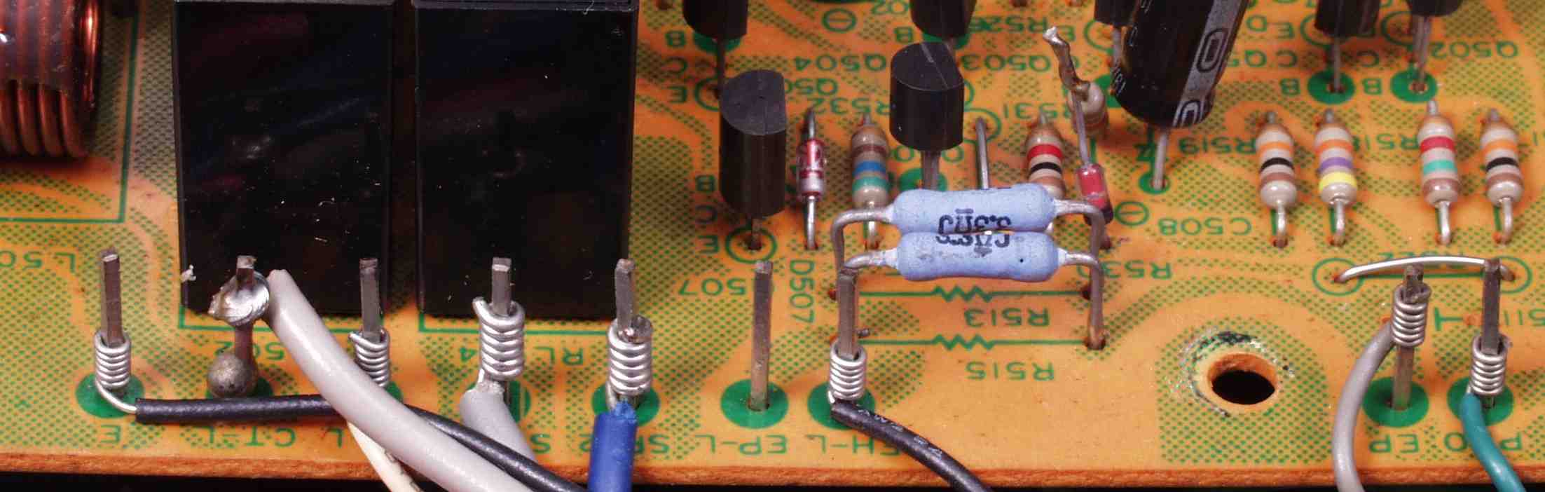 | C32. 修理(半田補正)後 R側終段TR(トランジスター)基盤。 | ||||||||||||||||||||||||||||||||||||||||||||||||||||||||||