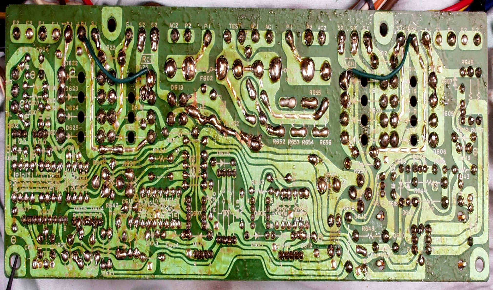 | C55. 修理(半田補正)後 整流・定電圧・VU基板裏。 全ての半田をやり修す。 | ||||||||||||||||||||||||||||||||||||||||||||||||||||||||||