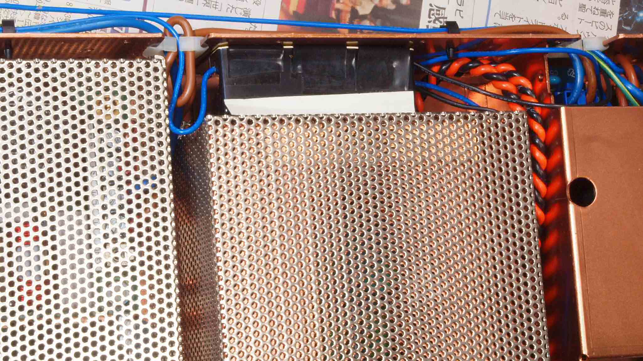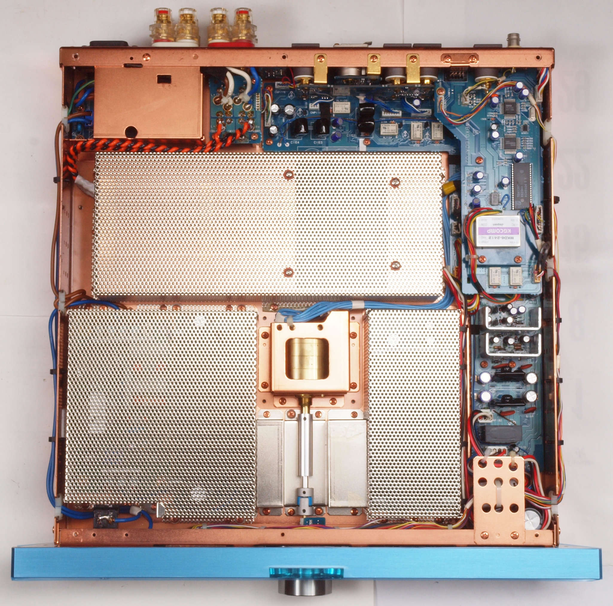 | A51. 点検中 左右横パネルと上下蓋を取り、上から見る。故障の1ビットアンプ。 | ||||||||||||||||||||||||||||||||||