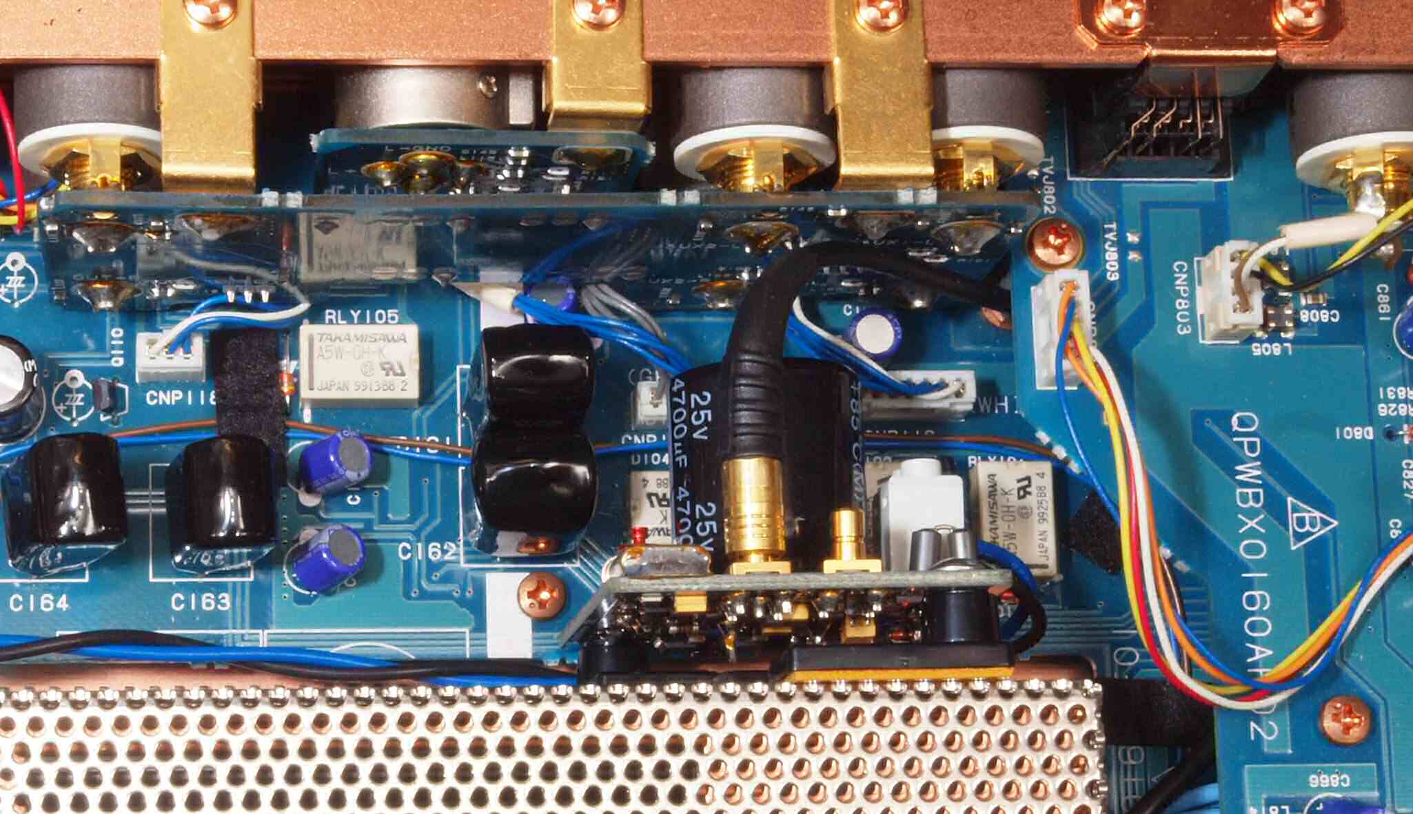| CC3. 修理後 使用しない端子にはキャップを挿す。 ユーザーはマルチアンプの低域に使用予定。入力RCA端子はショウトピン、出力RCA端子は防塵キャップ。 |