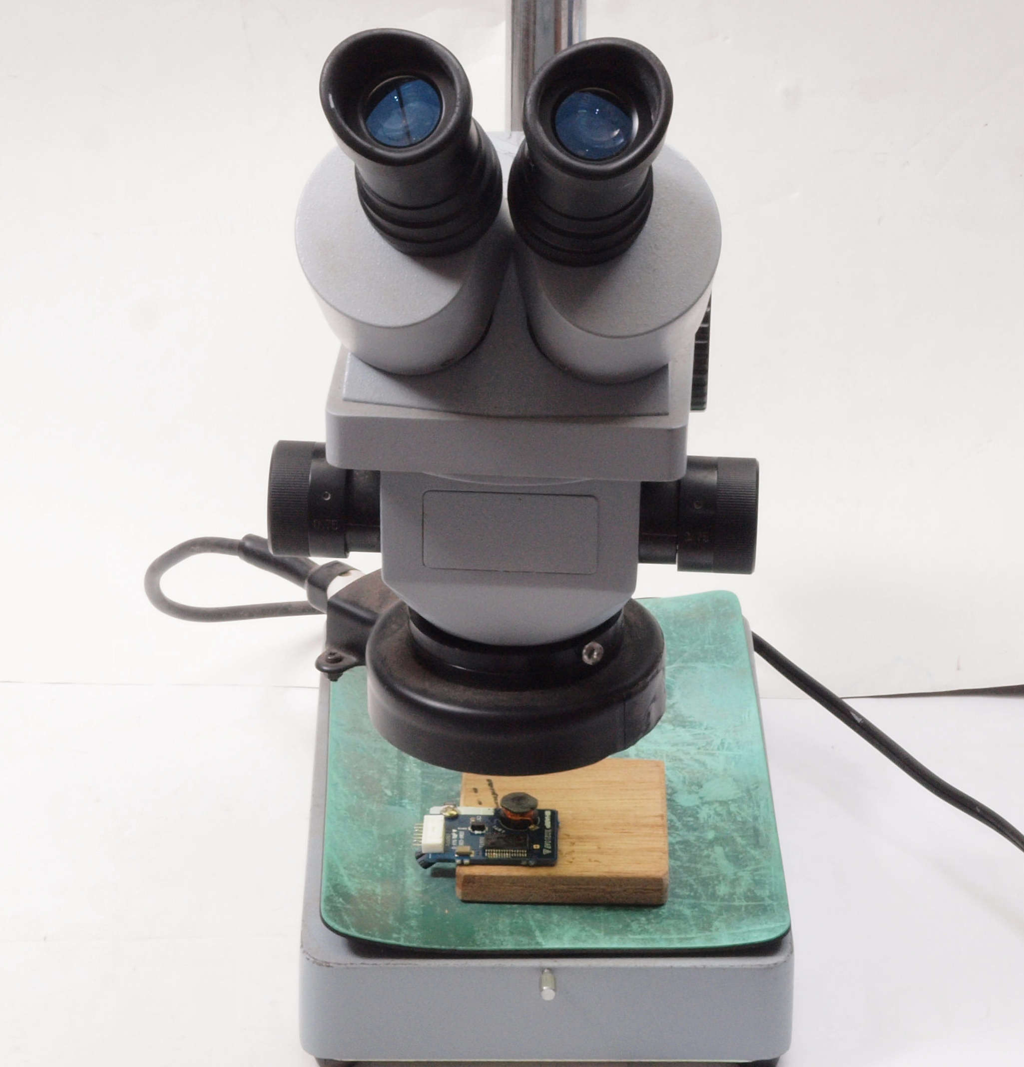 A52. 点検中 さらに点検はズーム型実体顕微鏡で行う。
