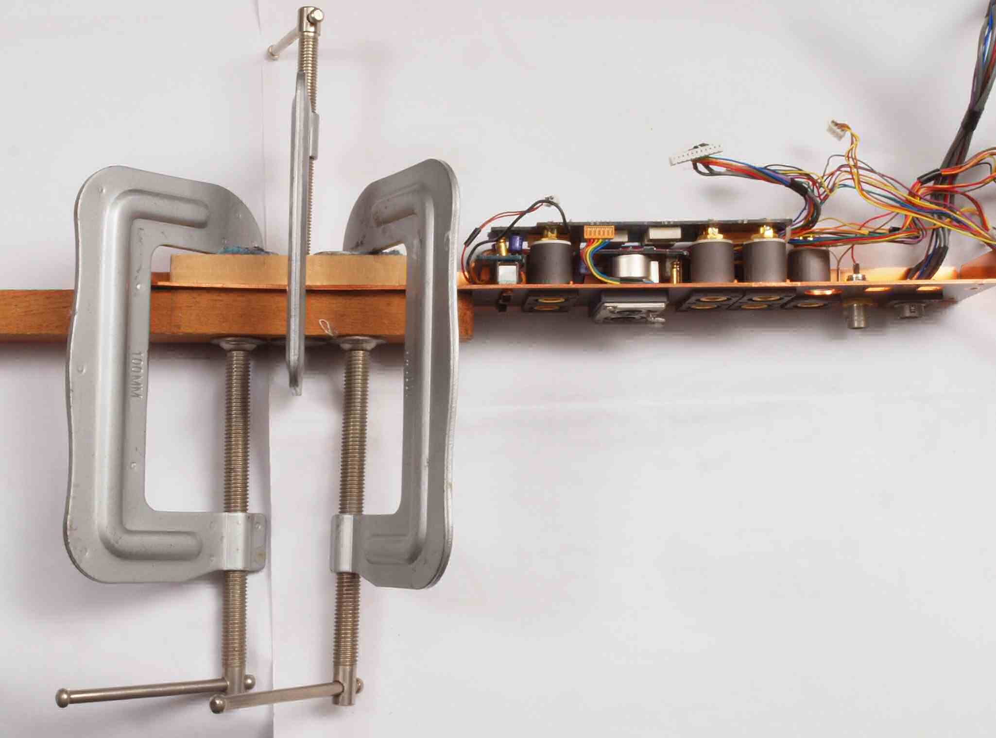 C16. 修理中 ドライバーICの交換には拡大鏡が必要。