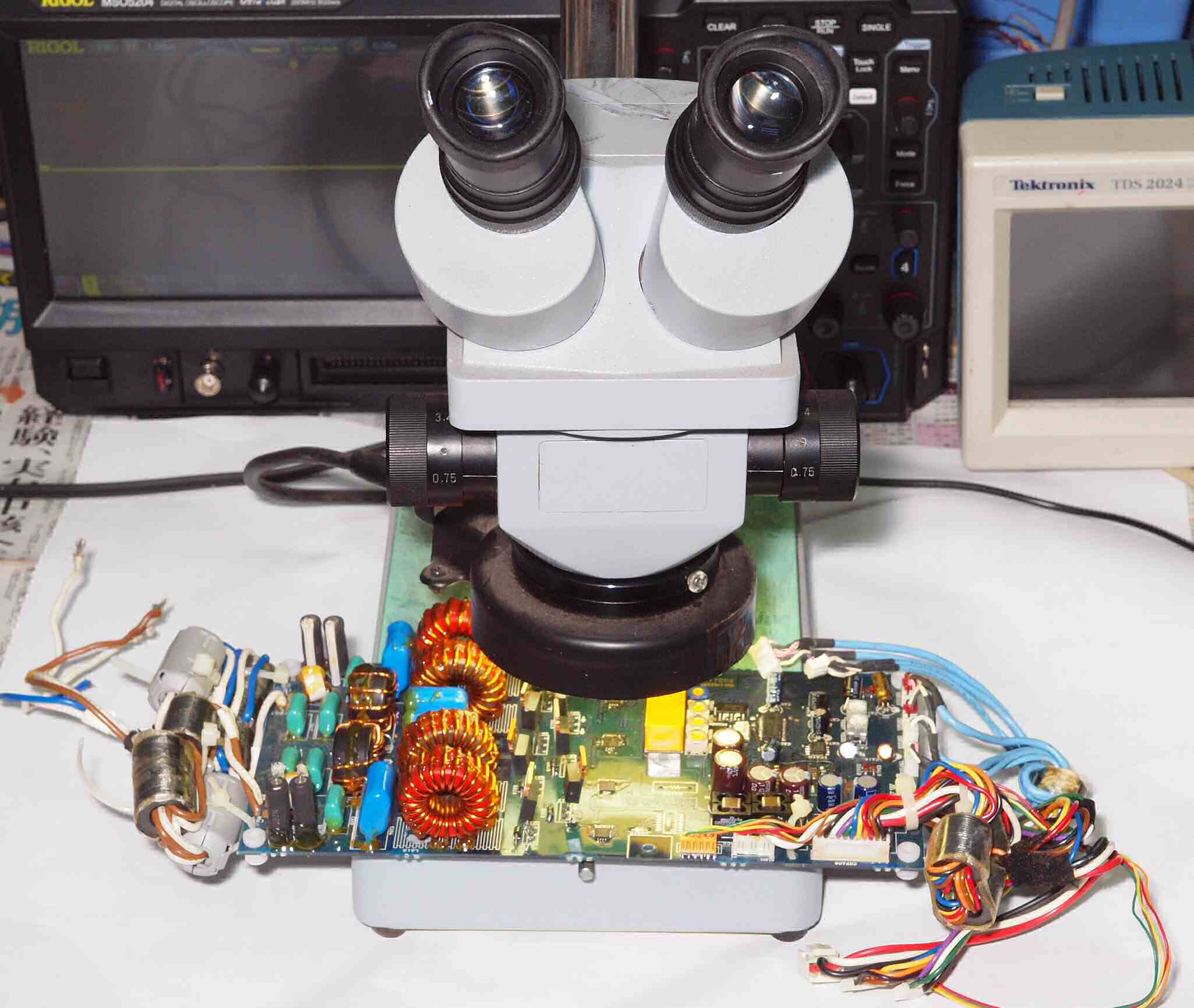 C17. 修理中 さらに点検はズーム型実体顕微鏡で行う。