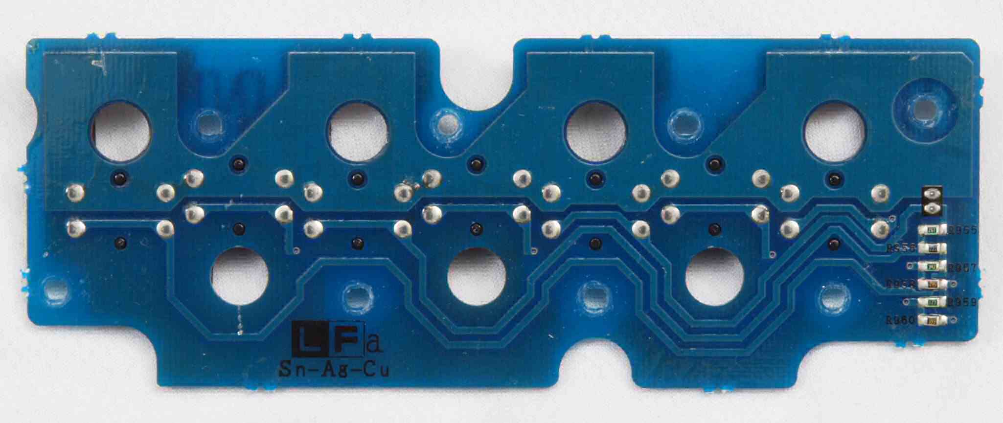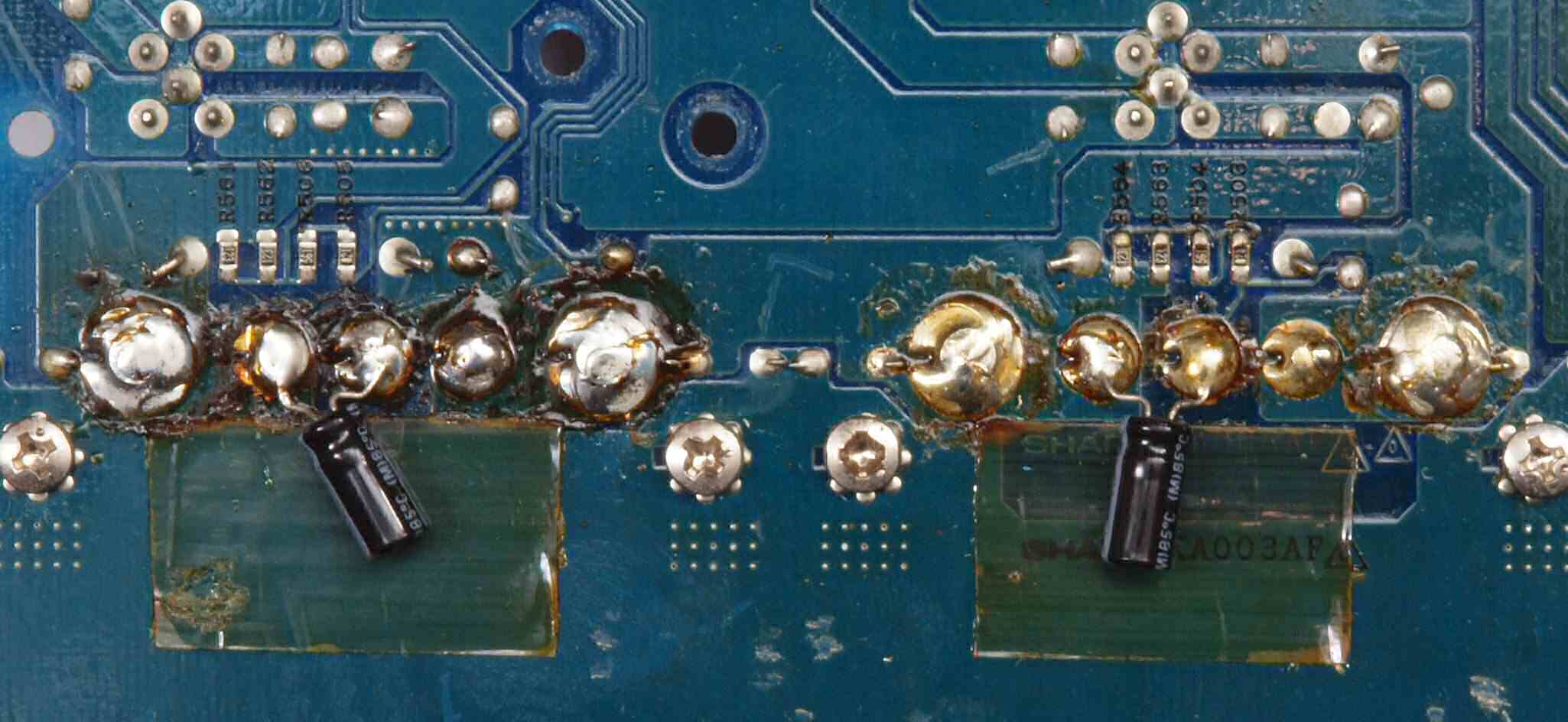 C35. 修理中 DC−DCコンバーター基板裏。DC−DCコンバーターの出力端子半田。