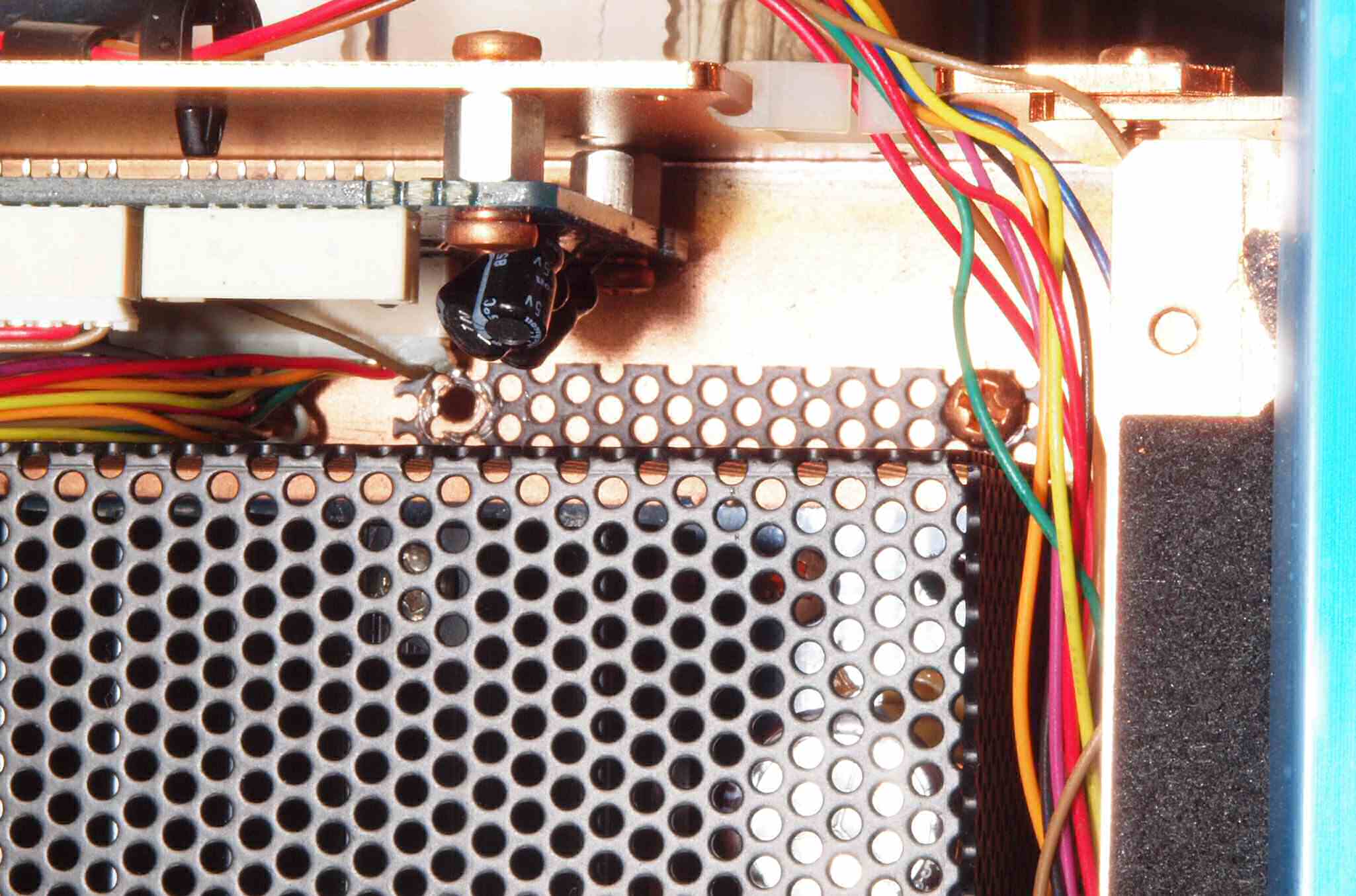 A134. 点検中 後から見る。 SP接続端子の取り付けシャーシが凹んでいる。