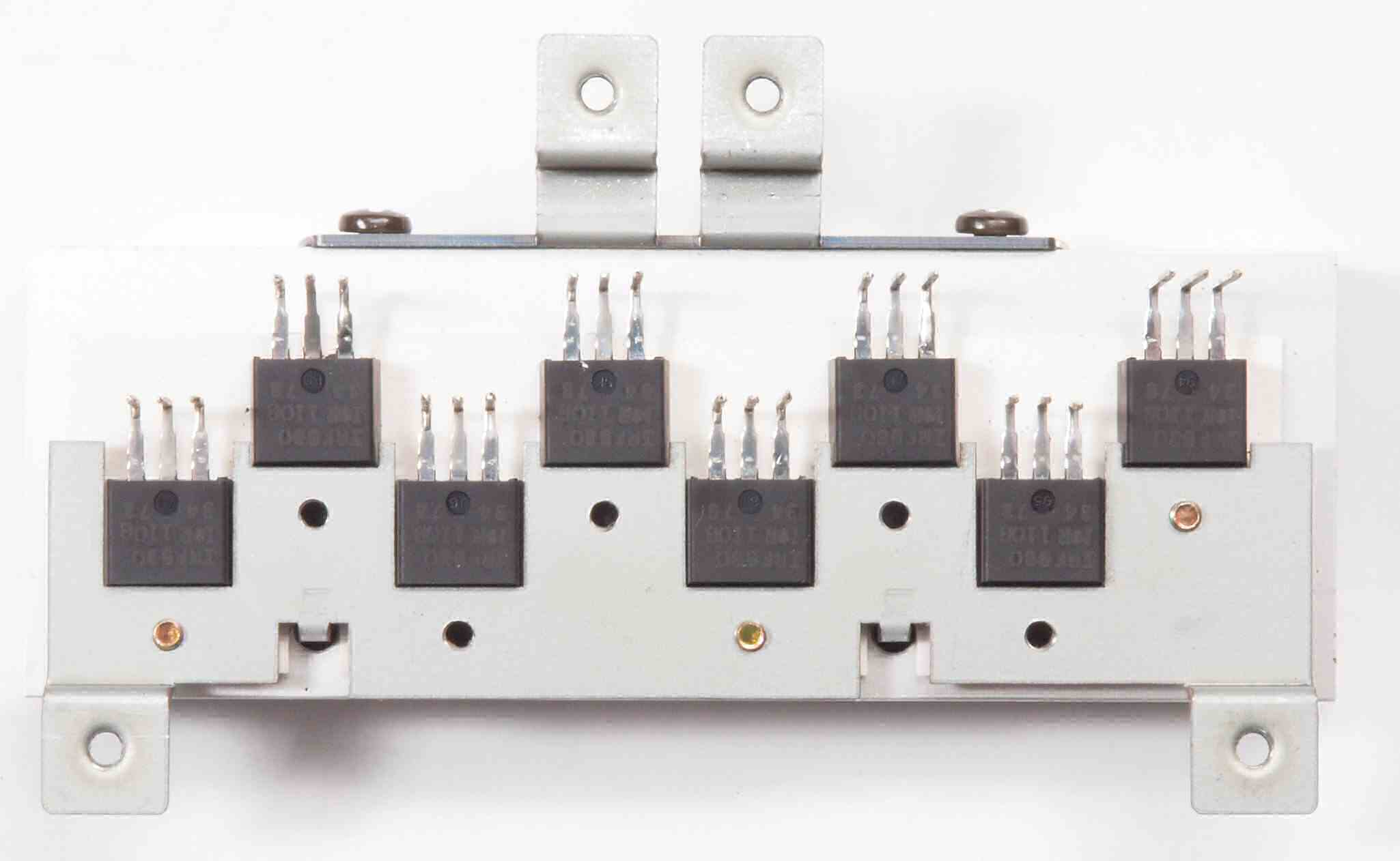 A43. 点検中 さらにもう1レーン購入した終段FET(電界効果トランジスター)。上の小さい列はドライブIC。