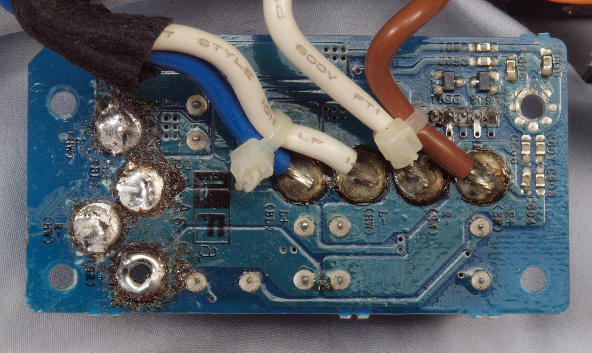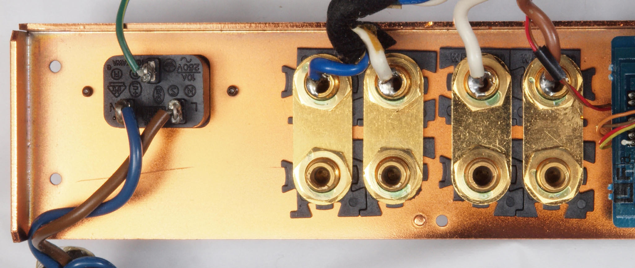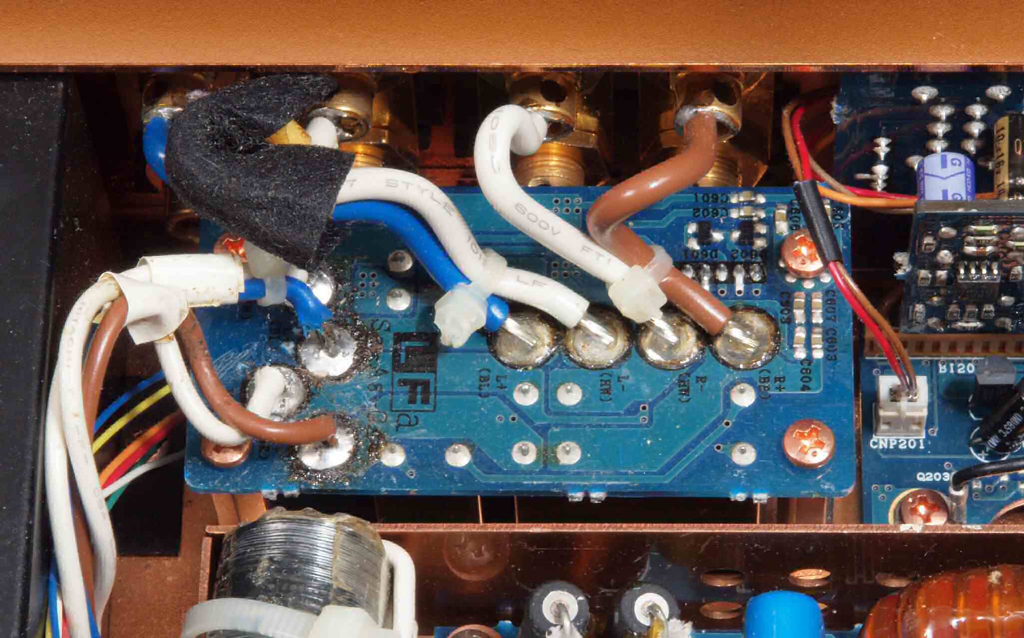 | CA2. 修理中 3Pインレット、SP出力接続端子裏。 |