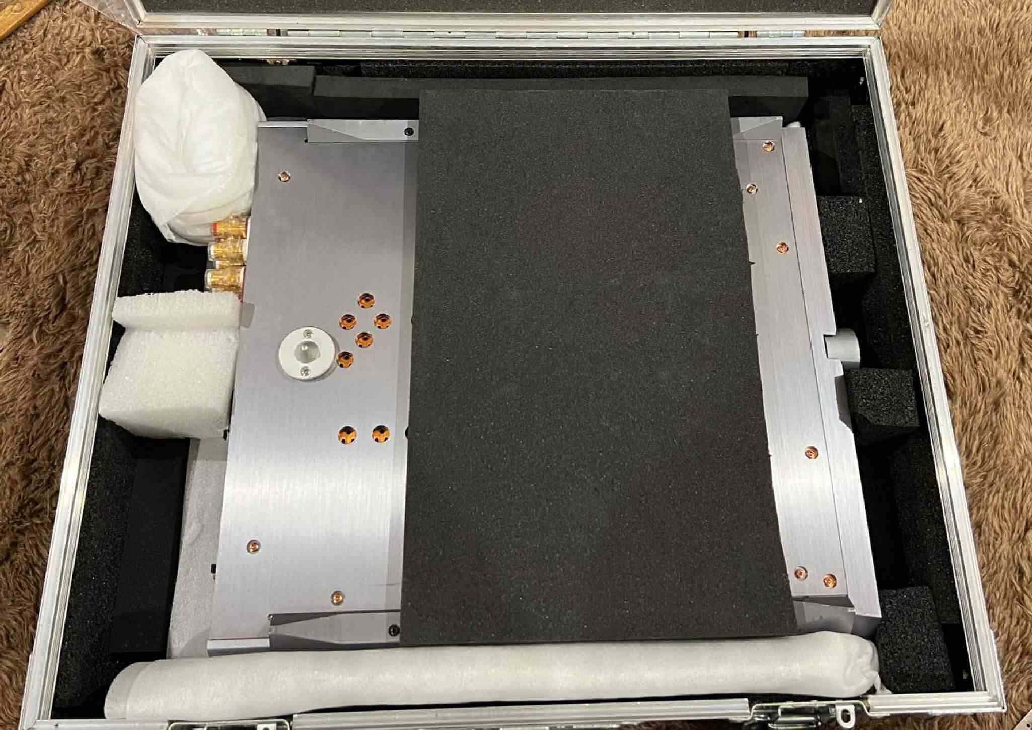 | A36. 点検中 上下蓋・左右パネル・センターブース・左右パネル押さえを取り、下から見る。ゴム足は修理用。 |