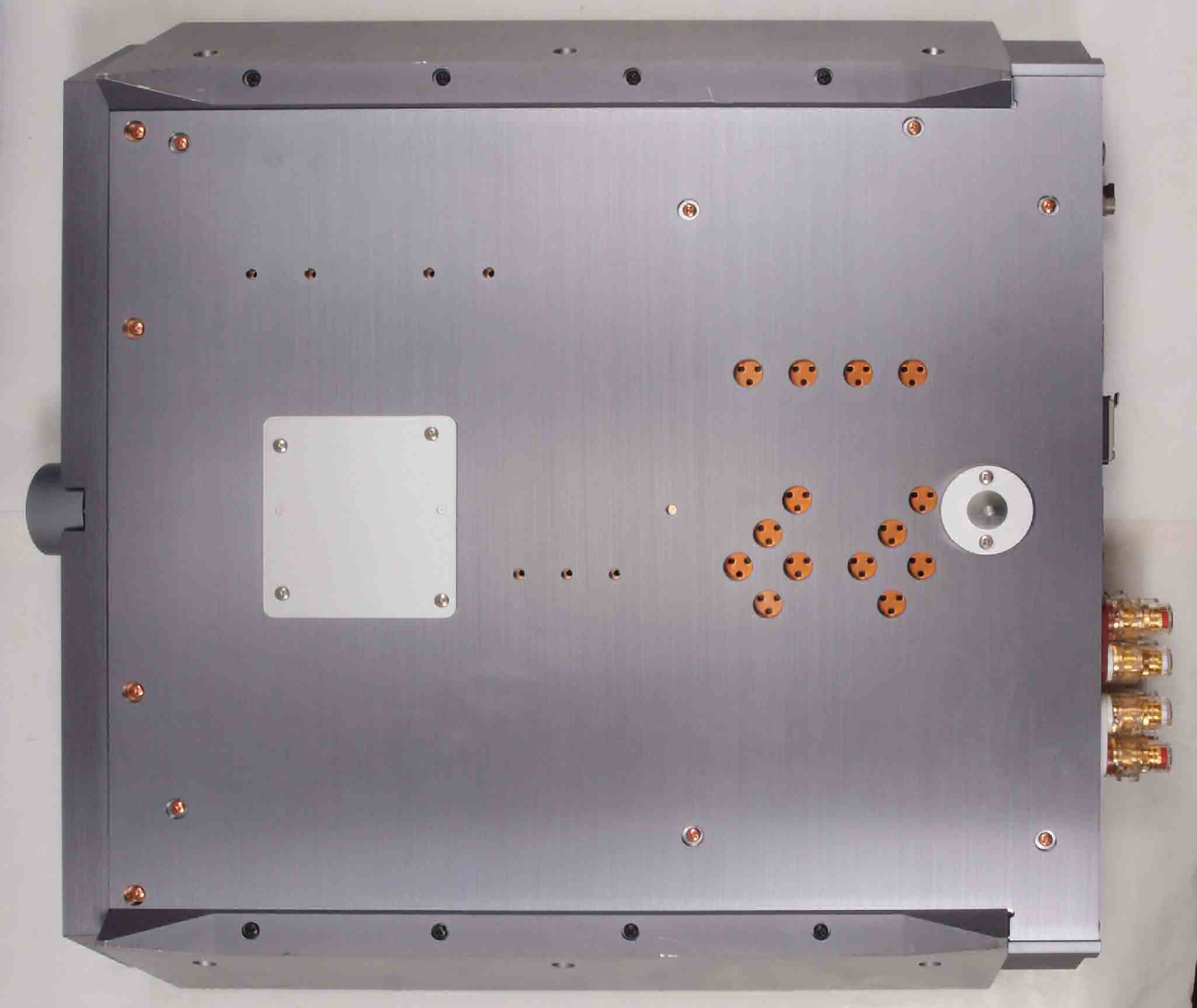 | A23. 点検中 上下蓋・左右パネル・センターブースを取り、左横から見る。左パネル押さえ止ビスを2本無。 |