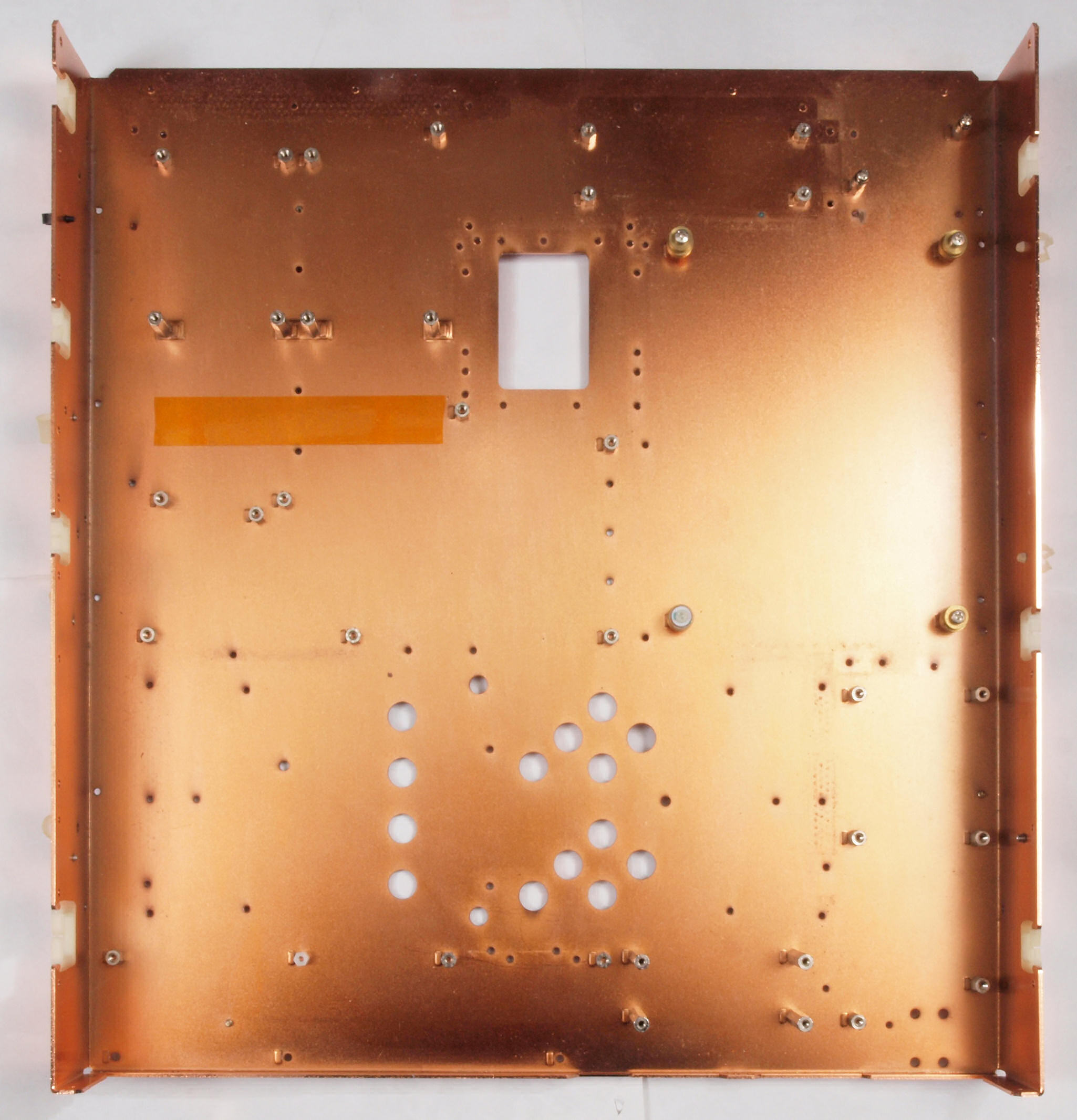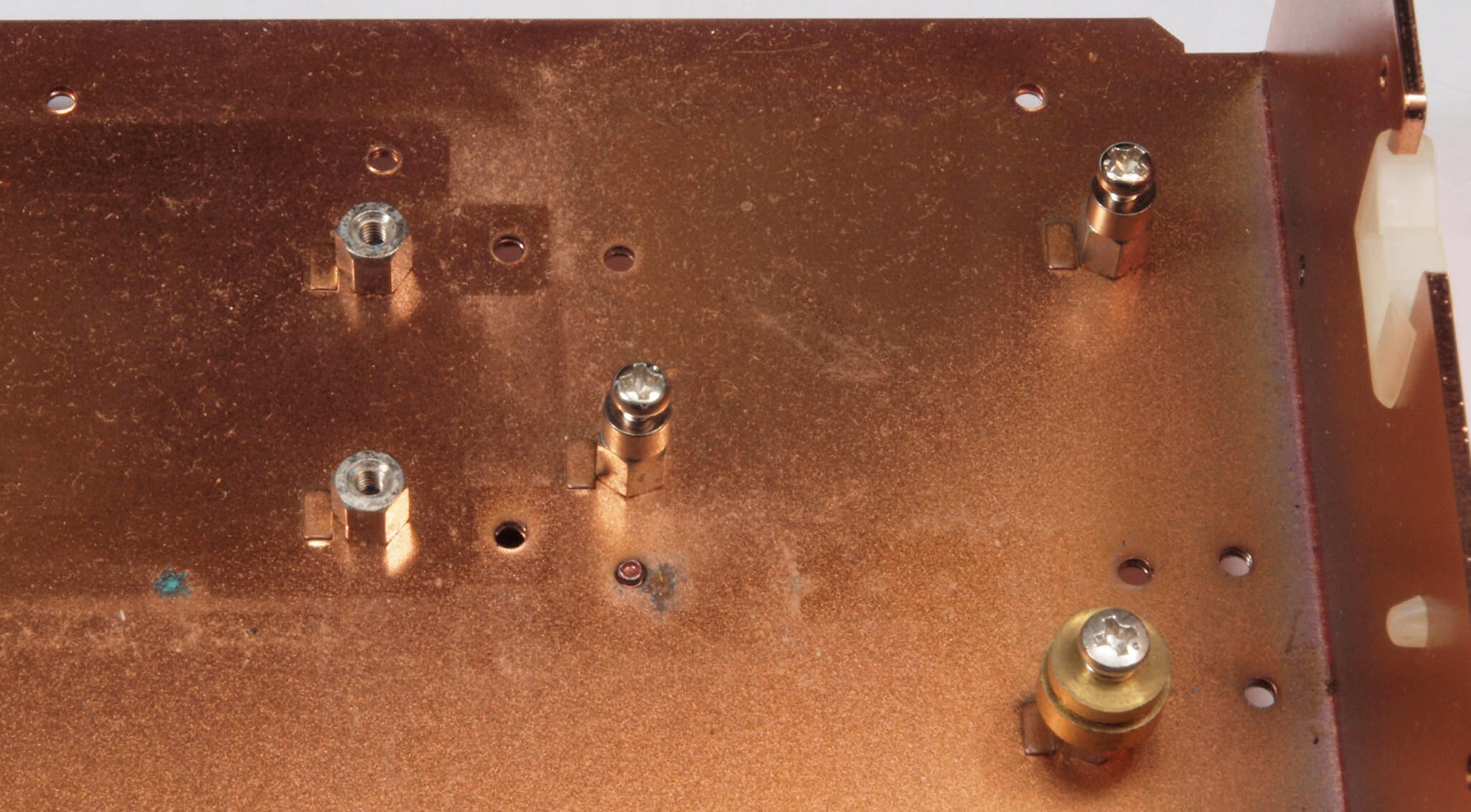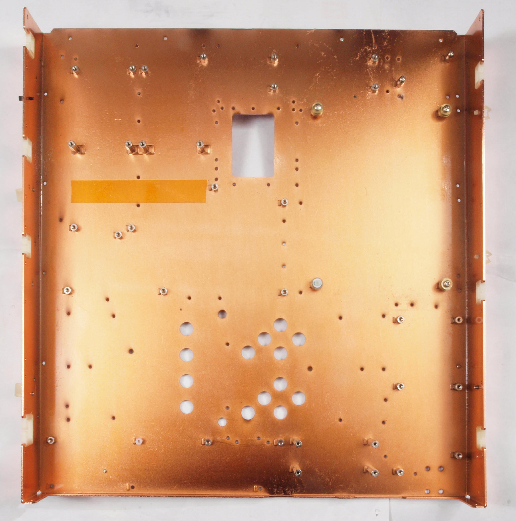 | C01. 修理中 部品・基板を取り去ったシャーシ裏。錆が発生している。 |