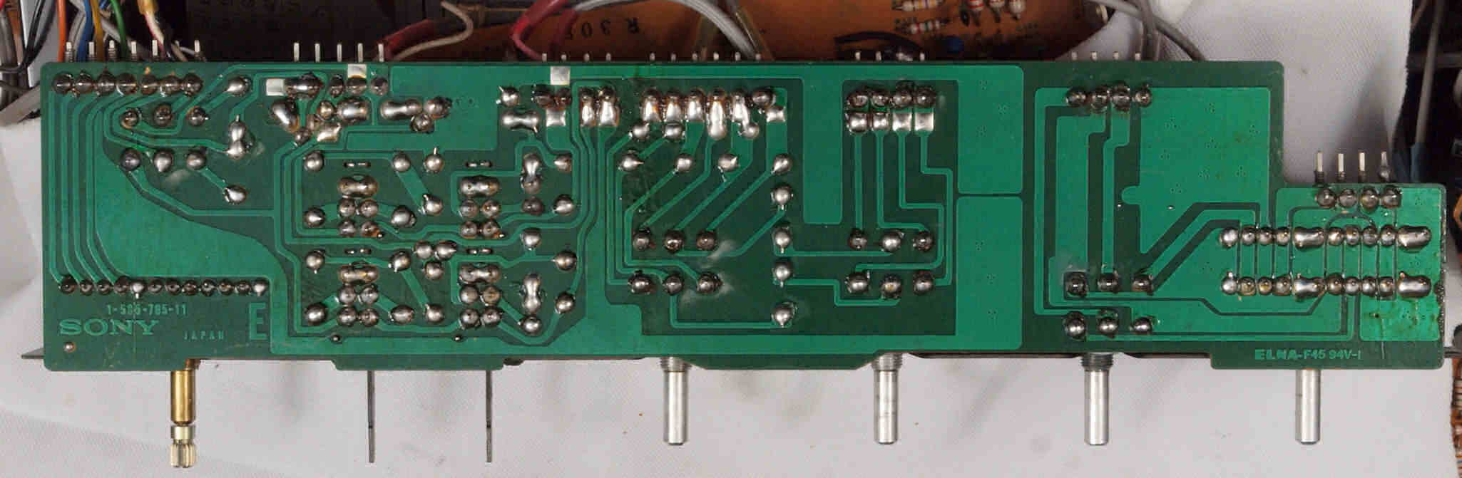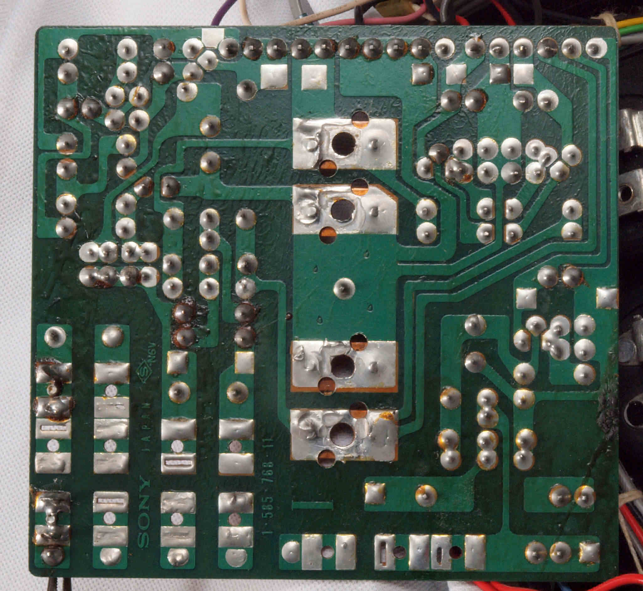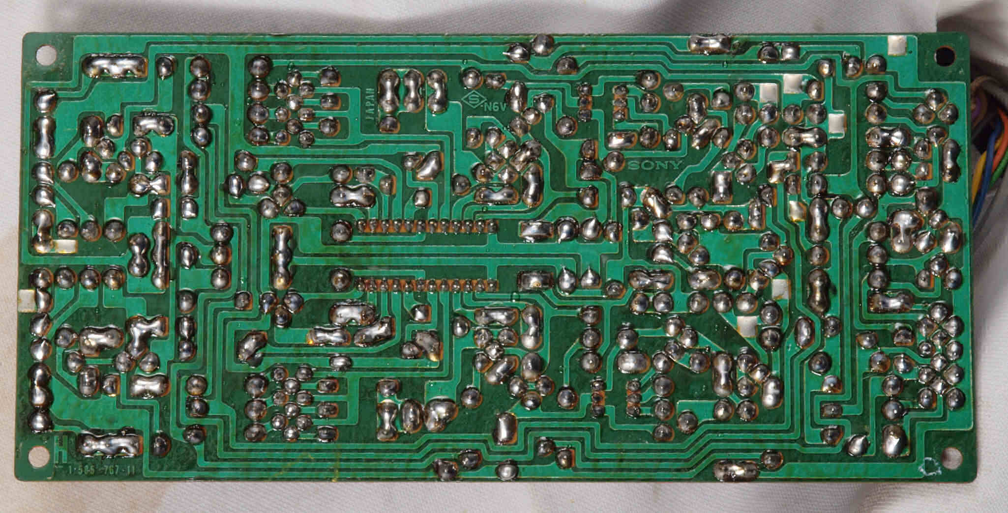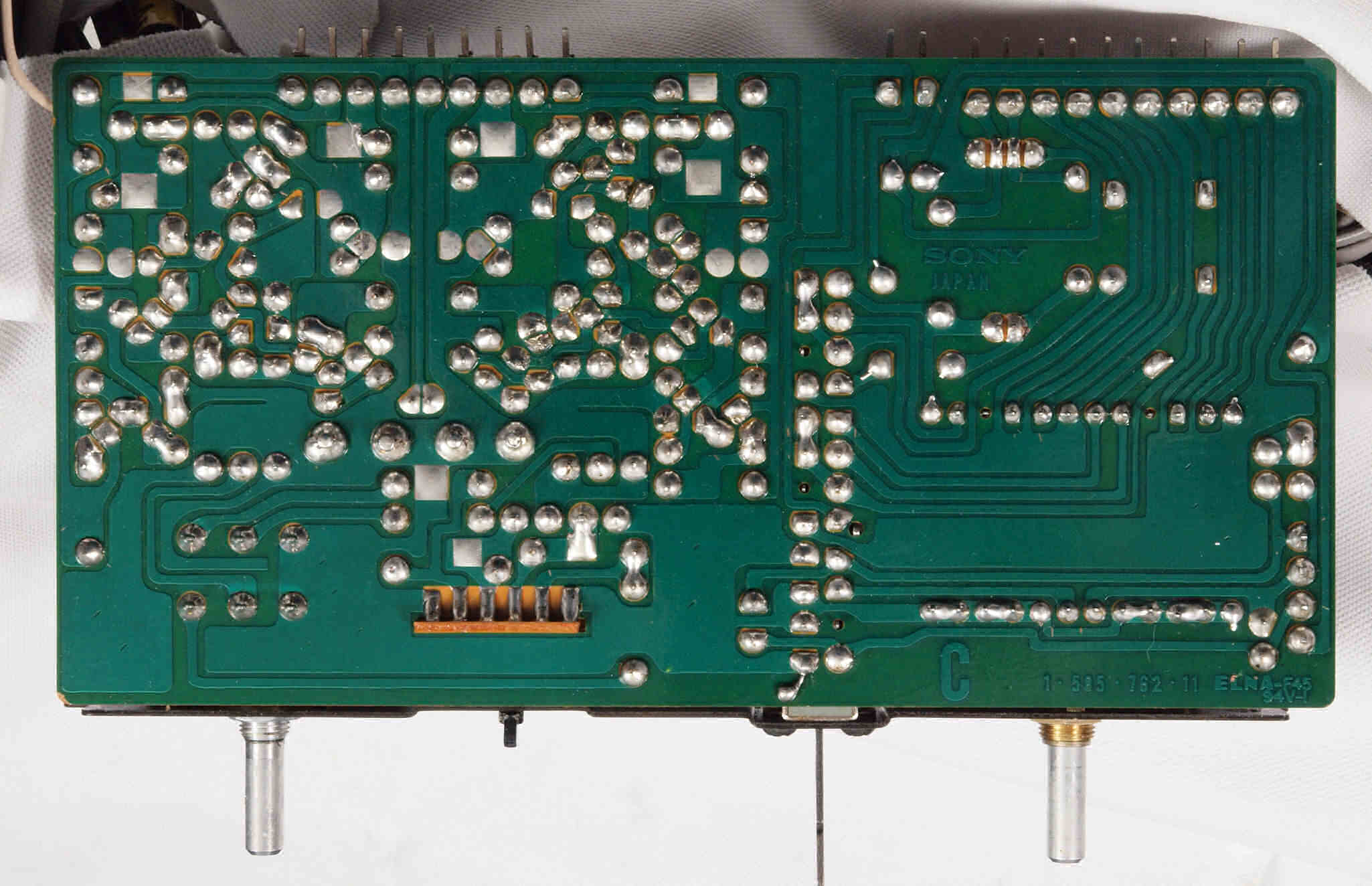 C54. 修理(半田補正)後 テープモニター基板裏。  全ての半田をやり修す