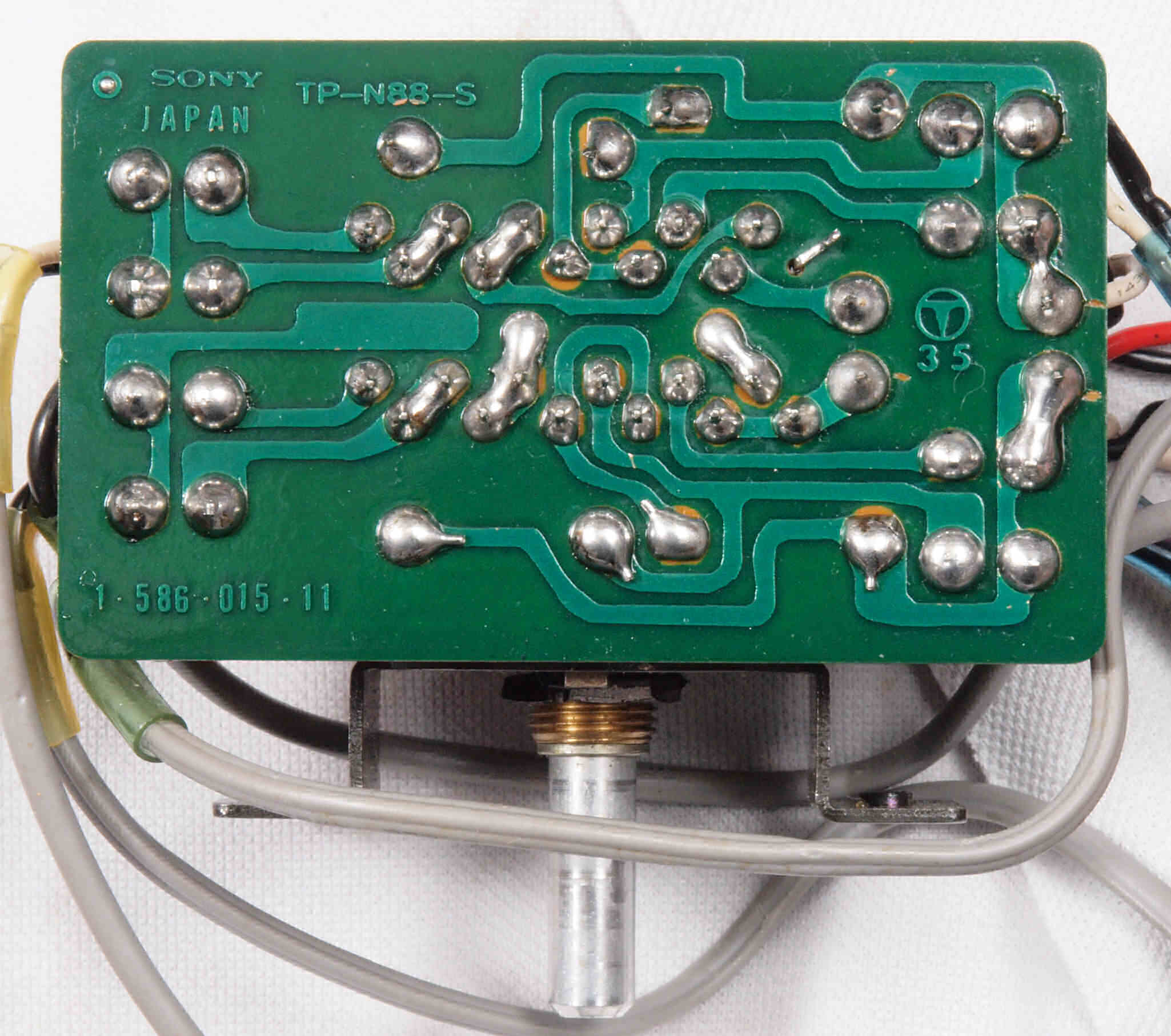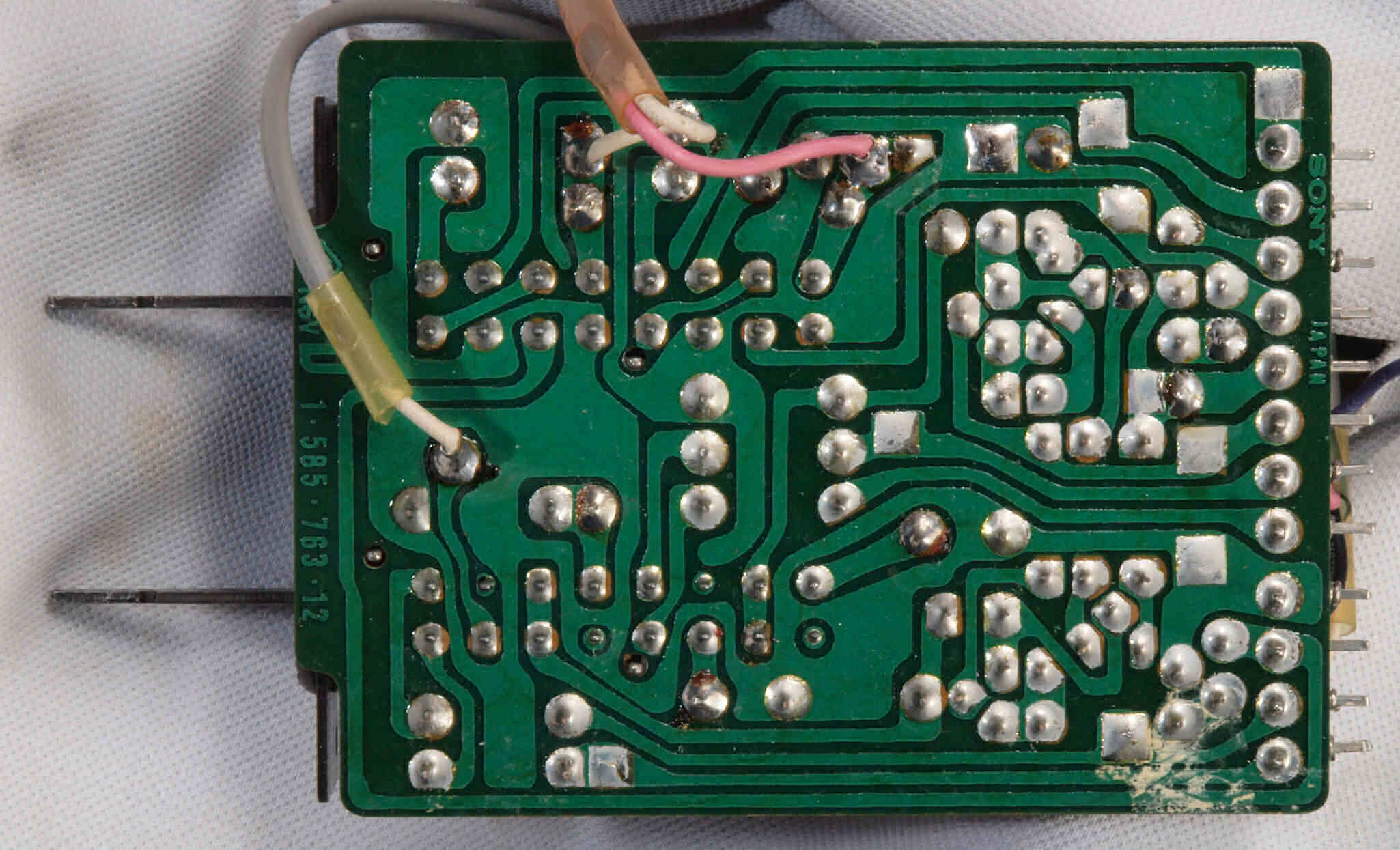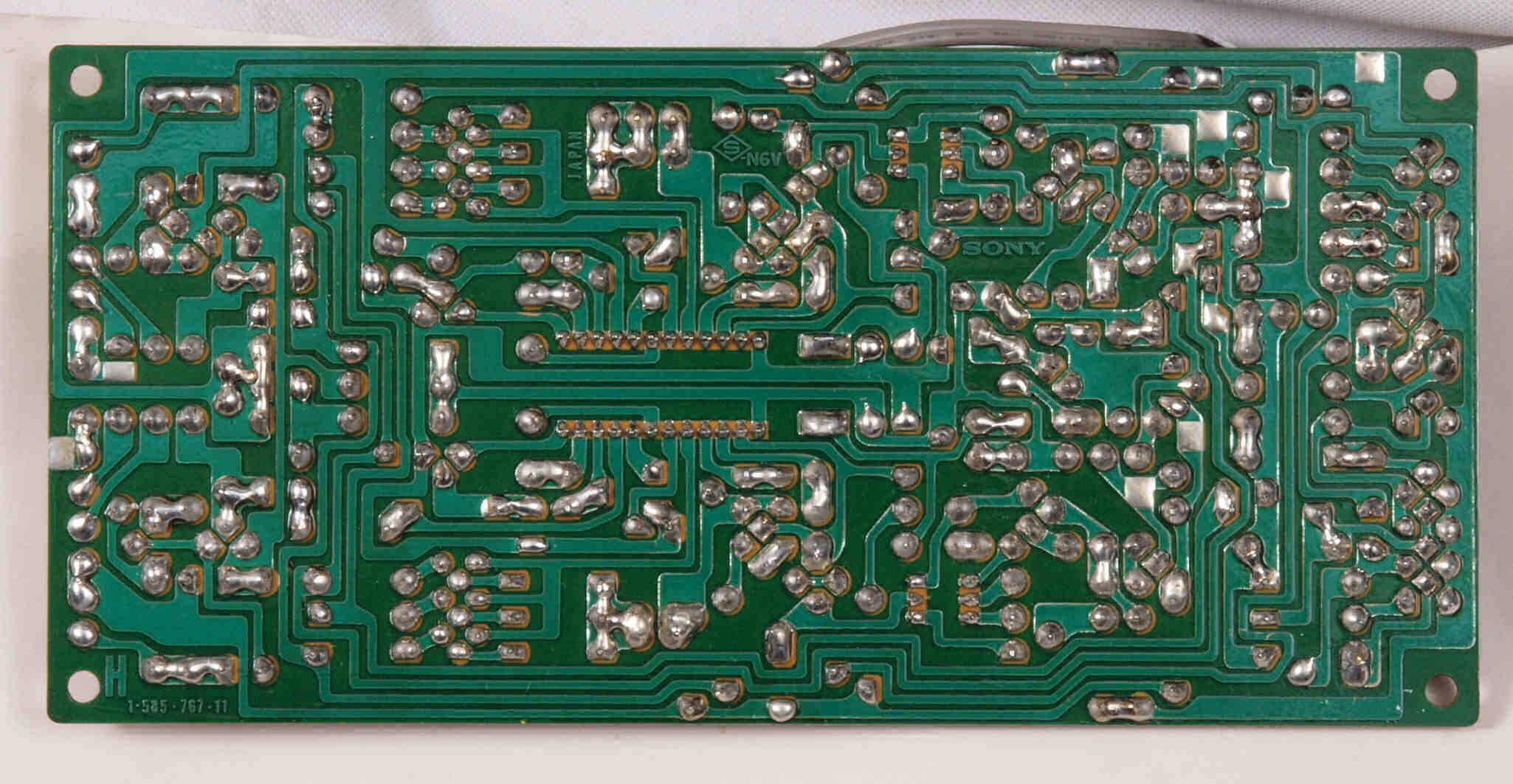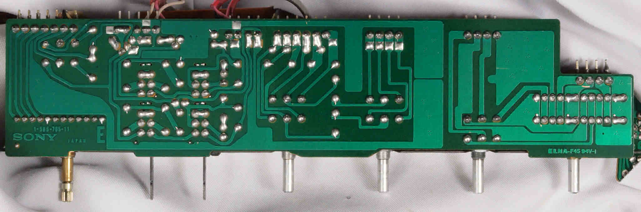 C54. 修理(半田補正)後 テープモニター基板裏。  全ての半田をやり修す
