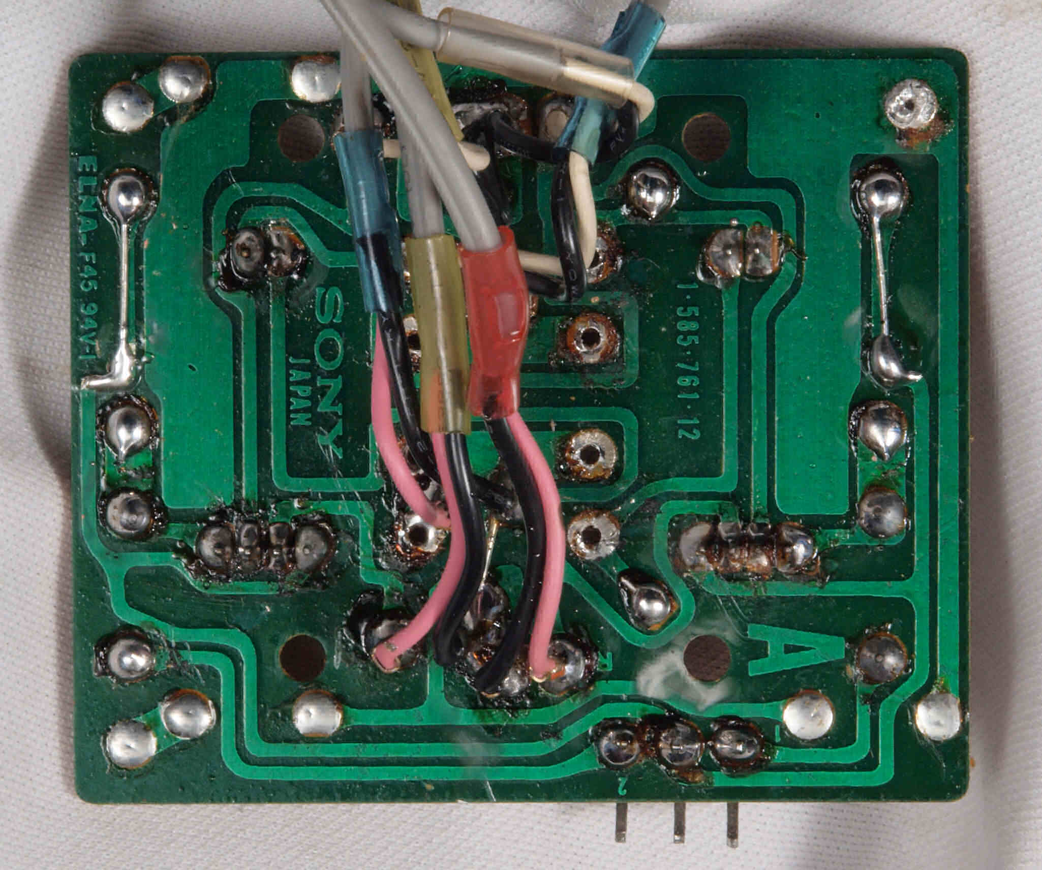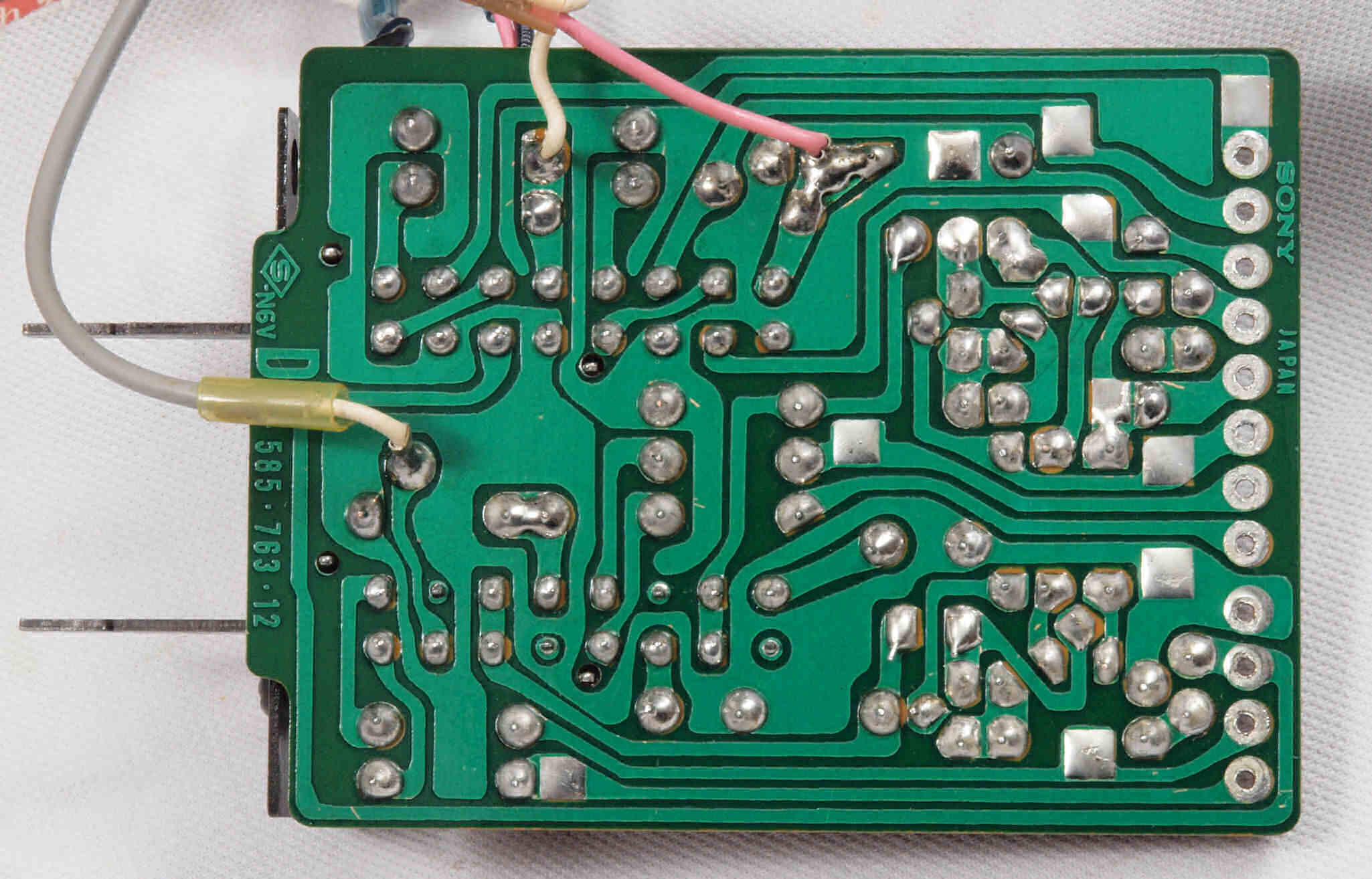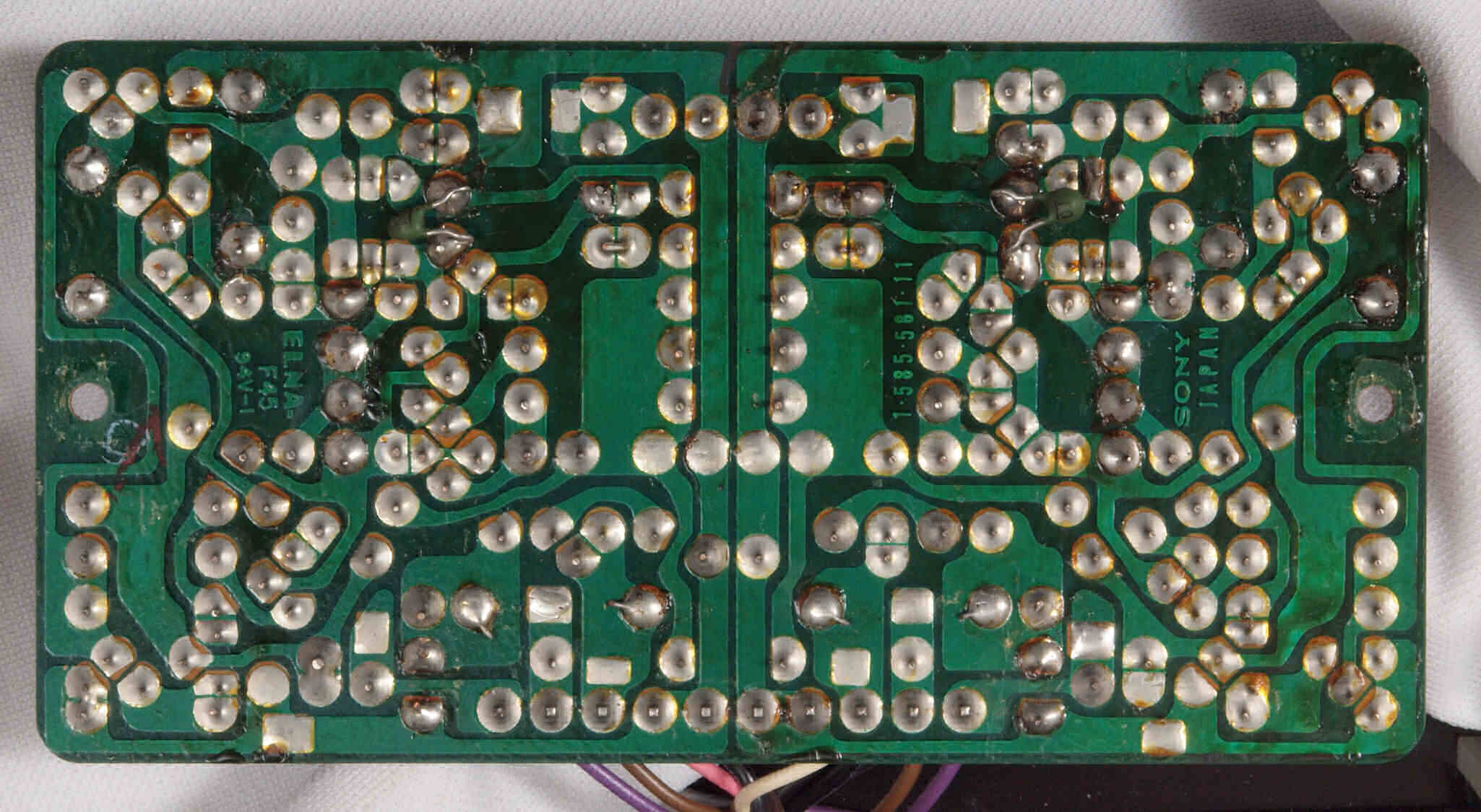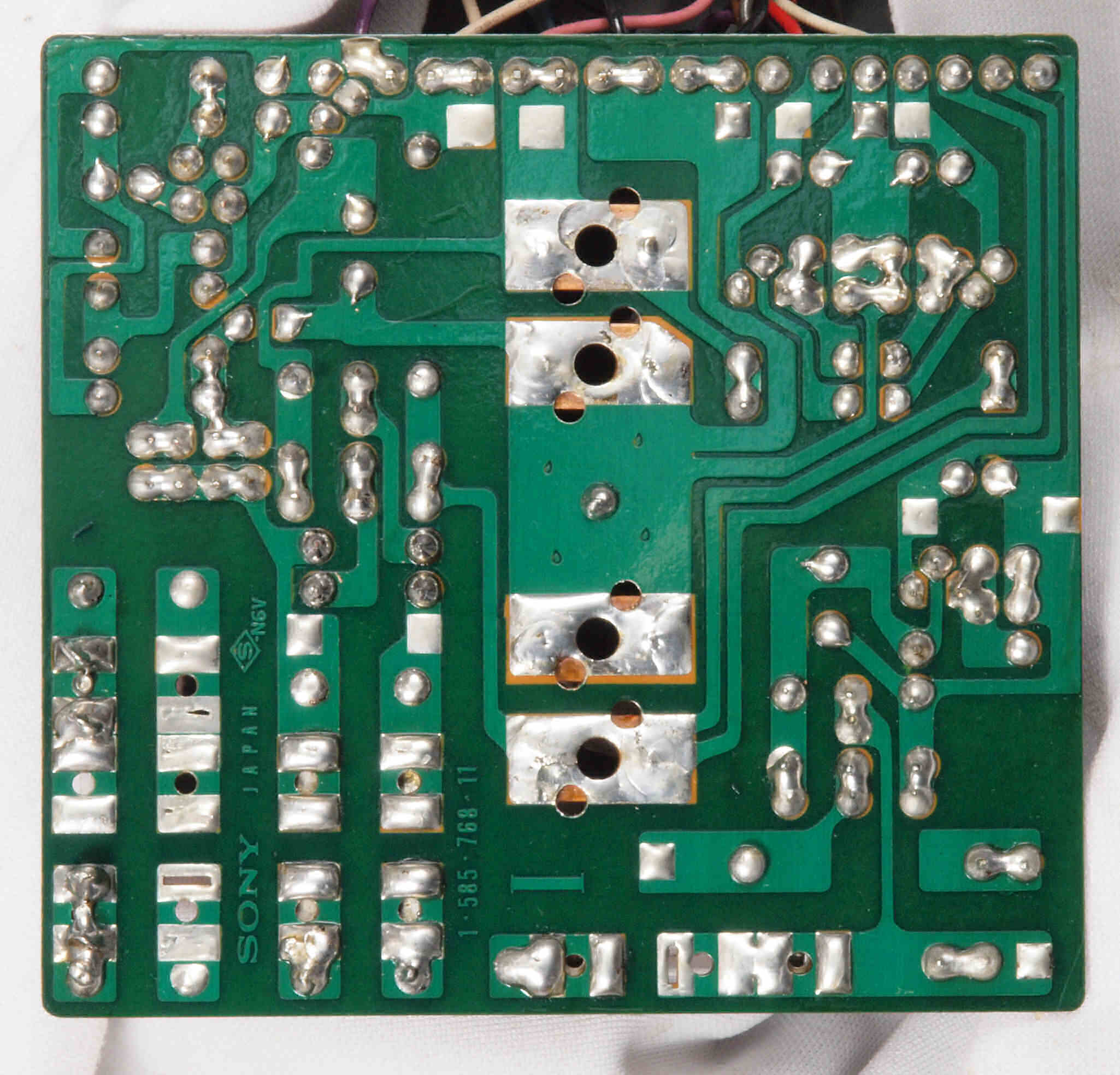 C54. 修理(半田補正)後 テープモニター基板裏。  全ての半田をやり修す
