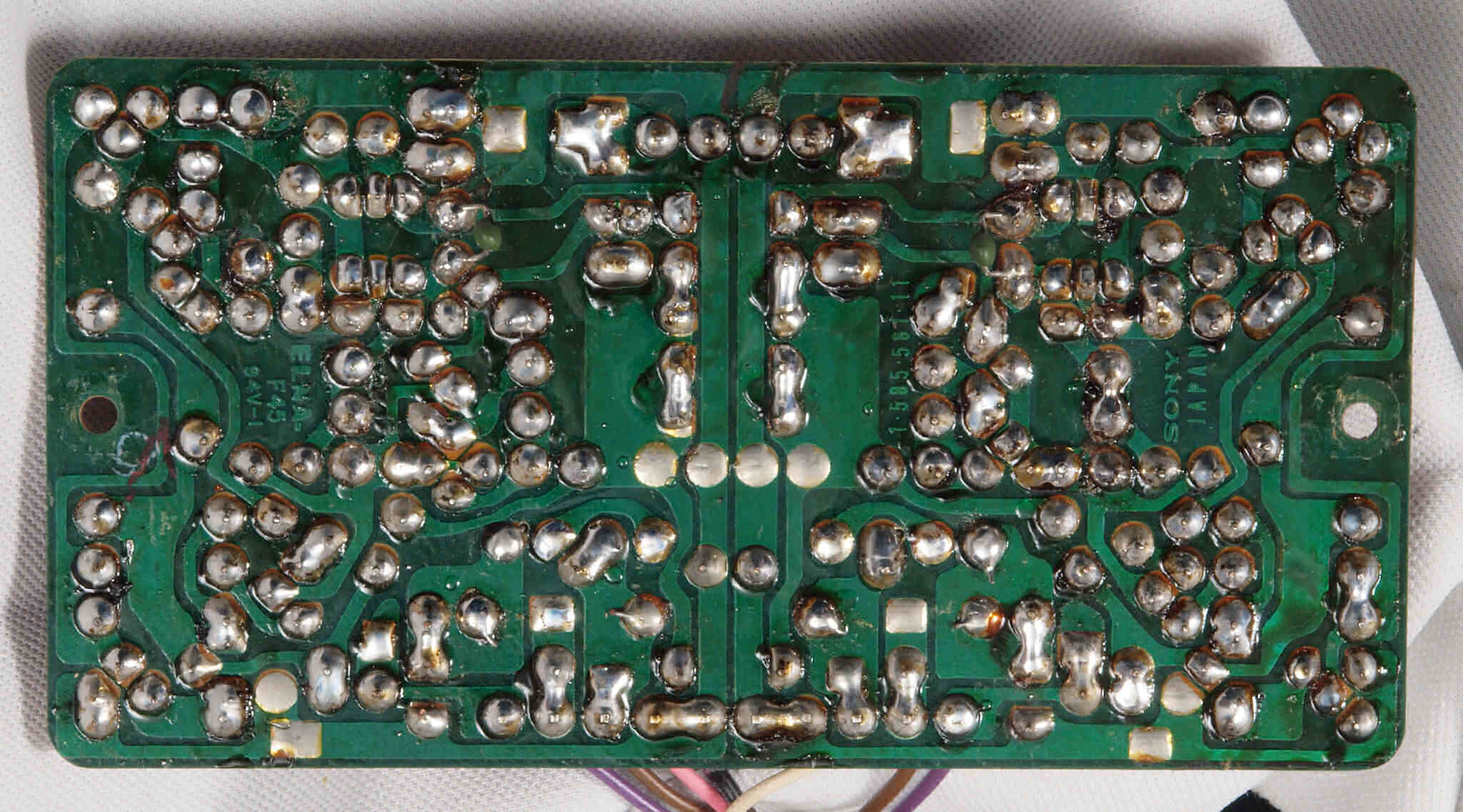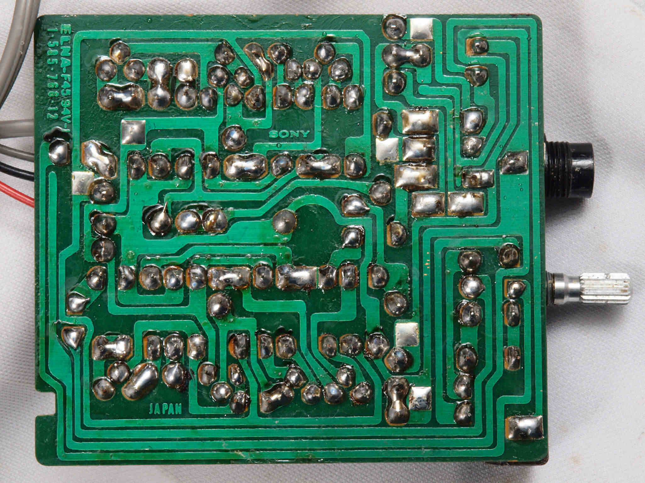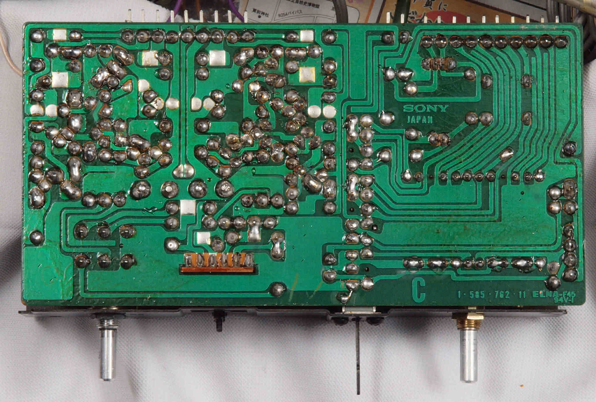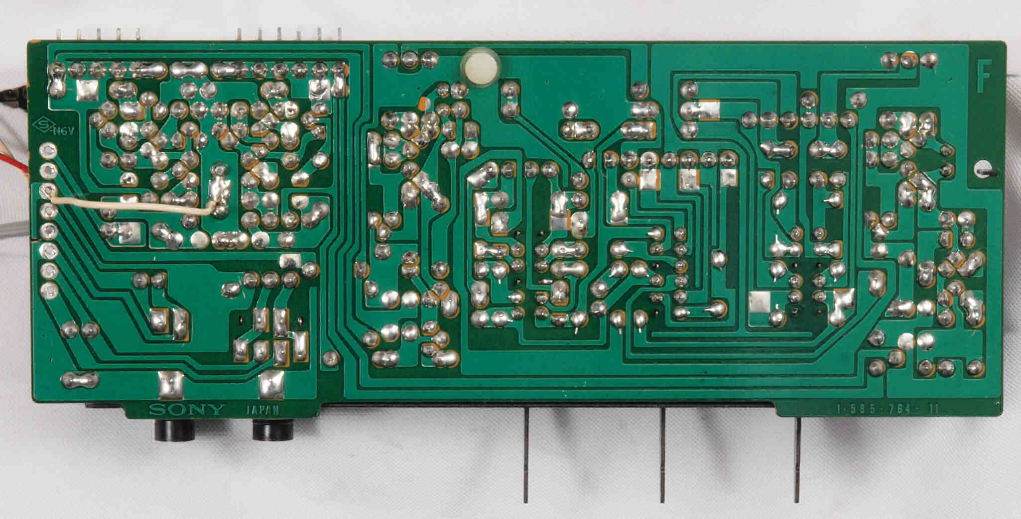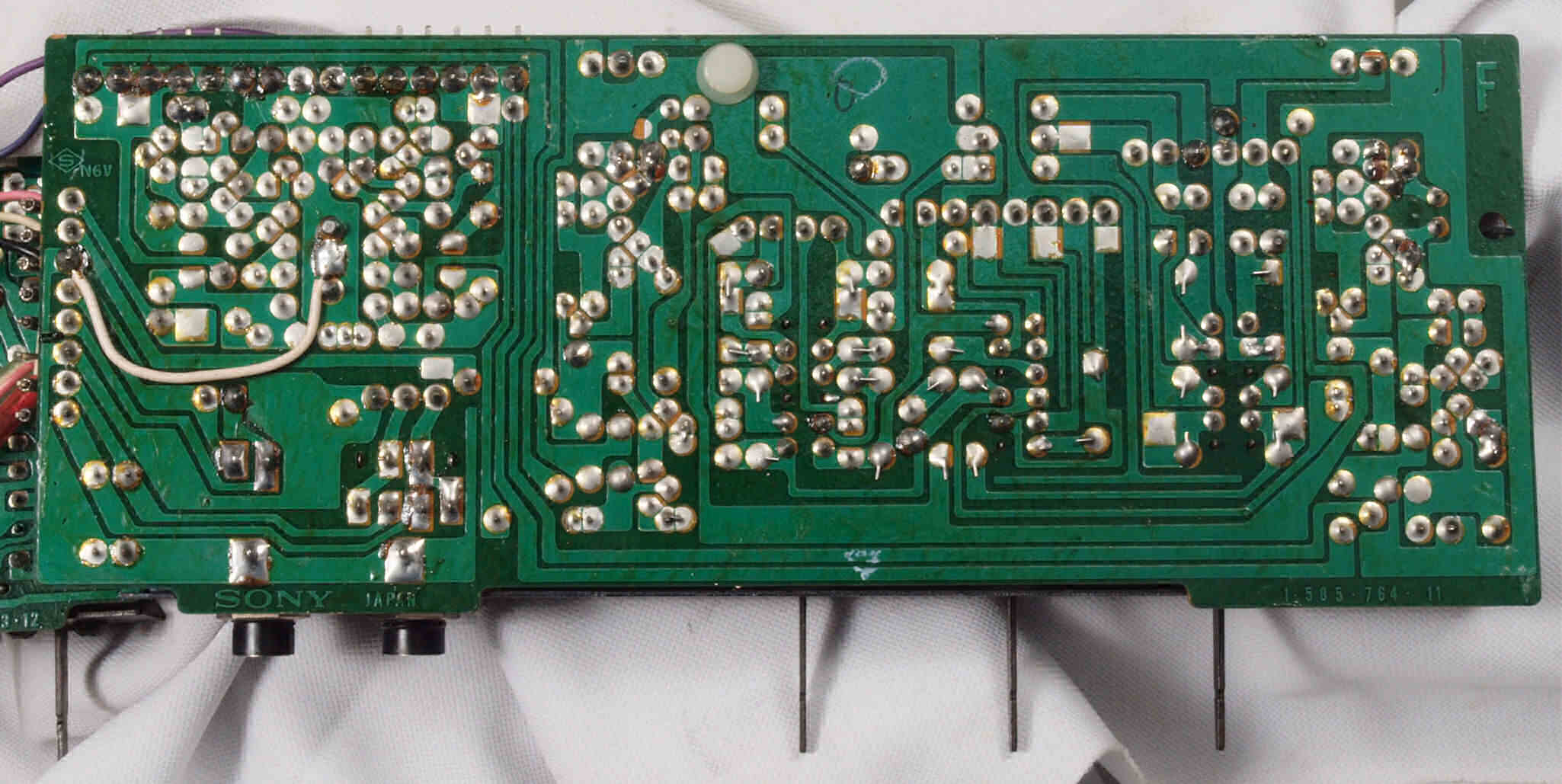 C94. 修理(半田補正)後 ヘッドホーンAMP基板裏。  全ての半田をやり修す