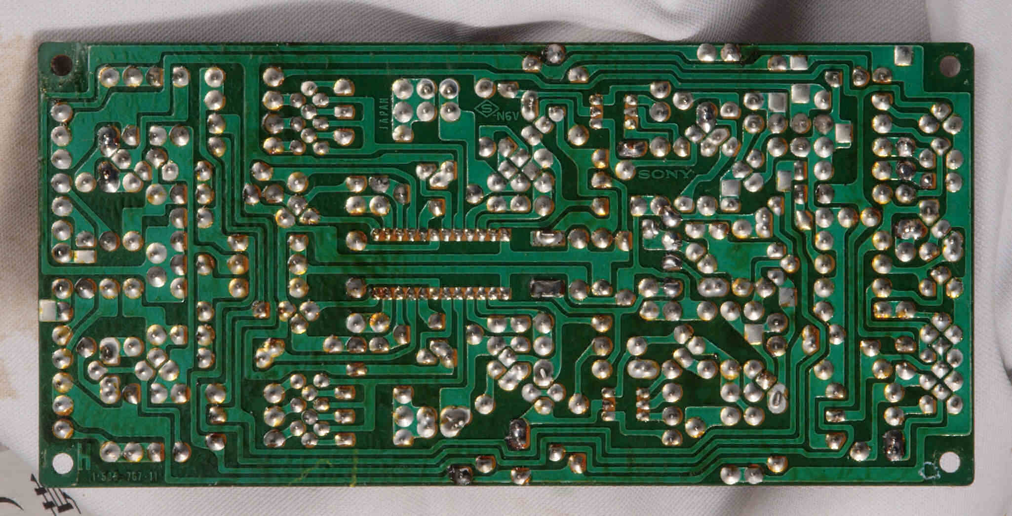 C74. 修理(半田補正)後 コントロール(Control)基板裏。  全ての半田をやり修す
